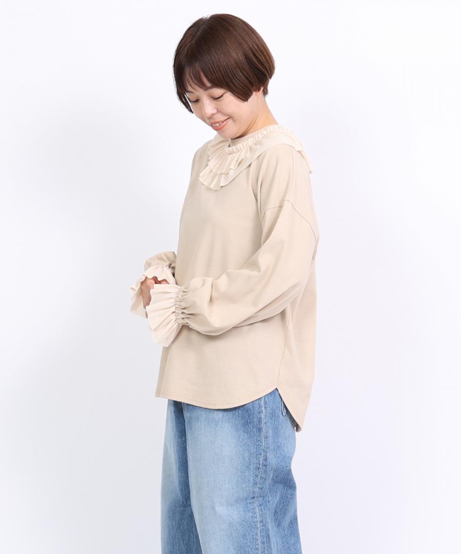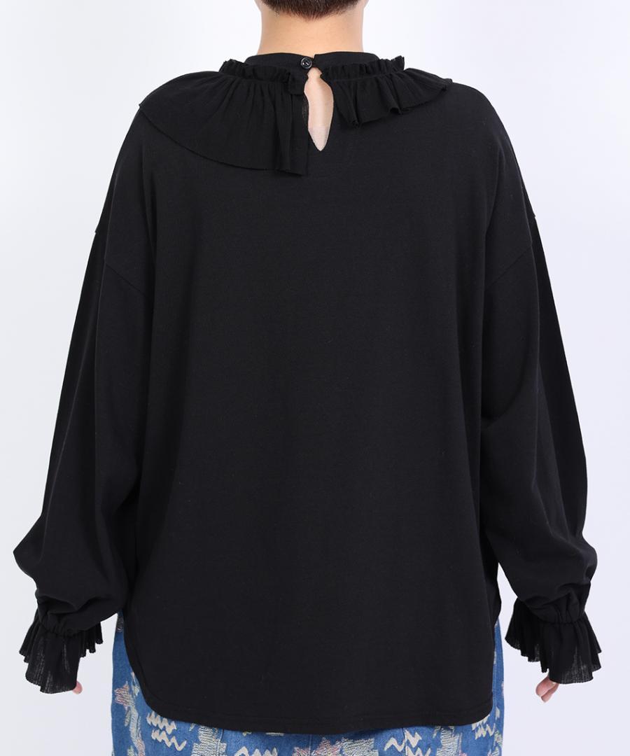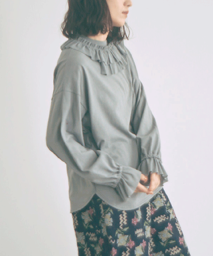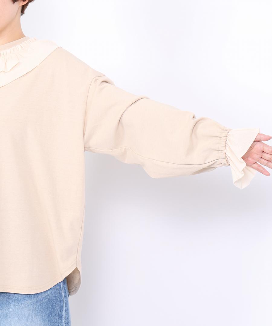 Percee天竺×シアーリブ フリル衿プルオーバー