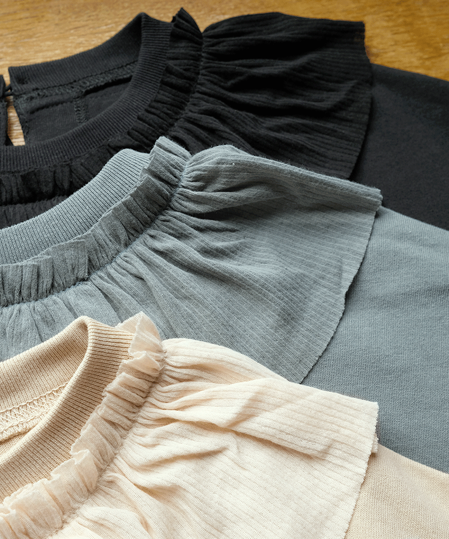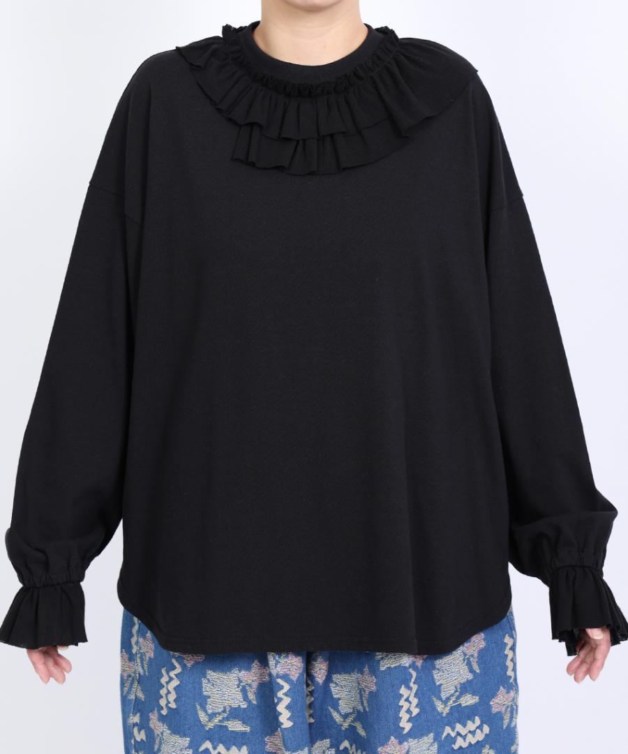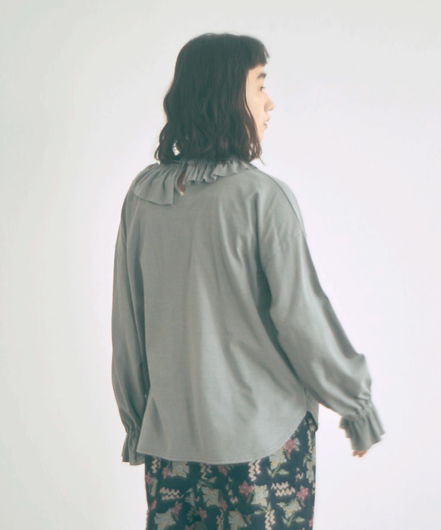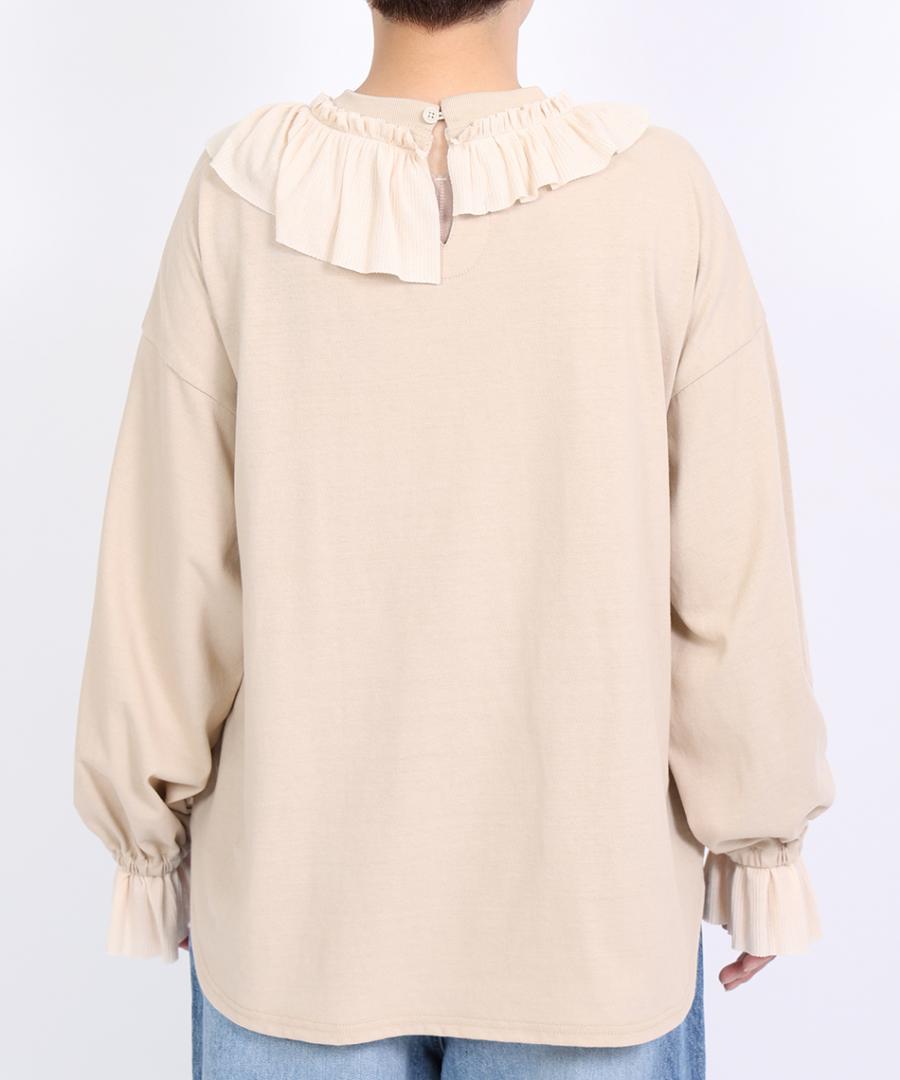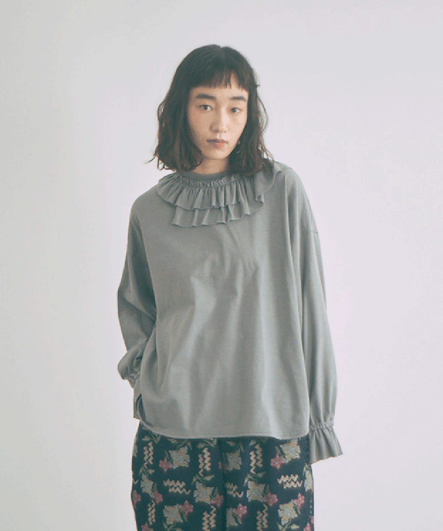 Percee天竺×シアーリブ フリル衿プルオーバー