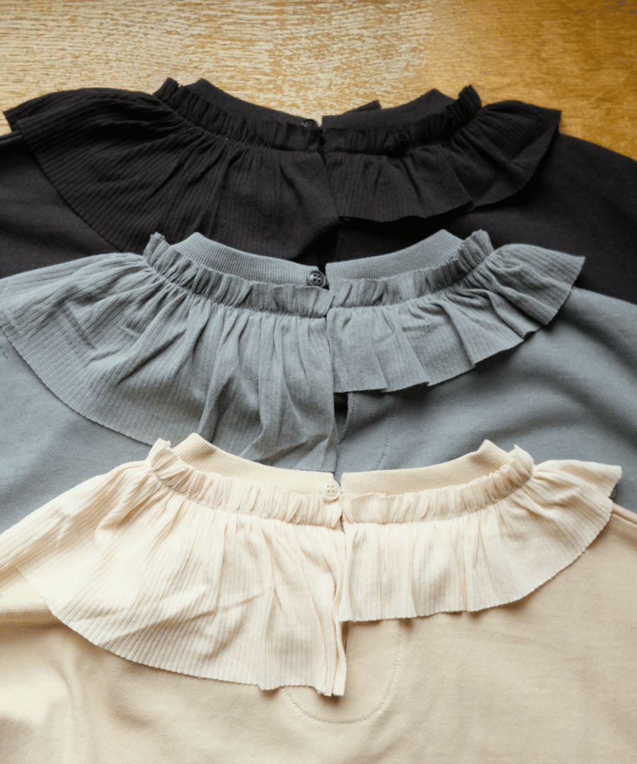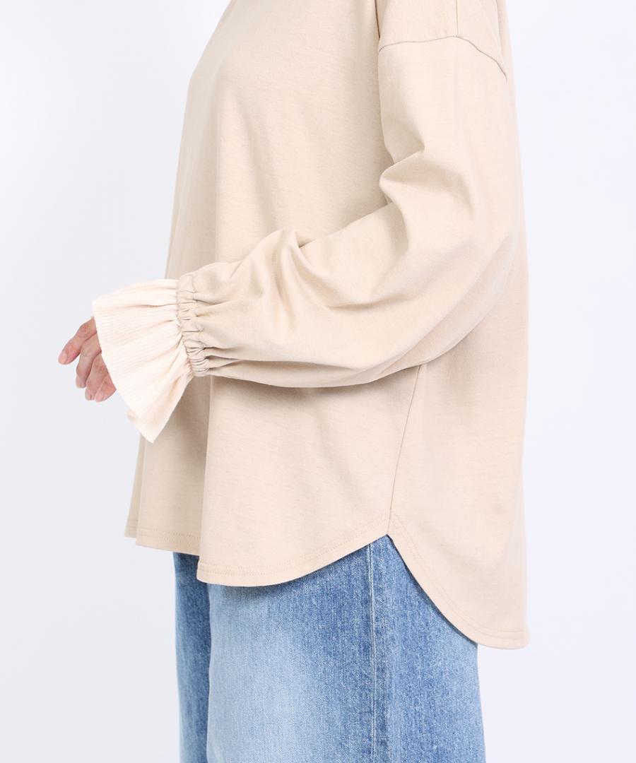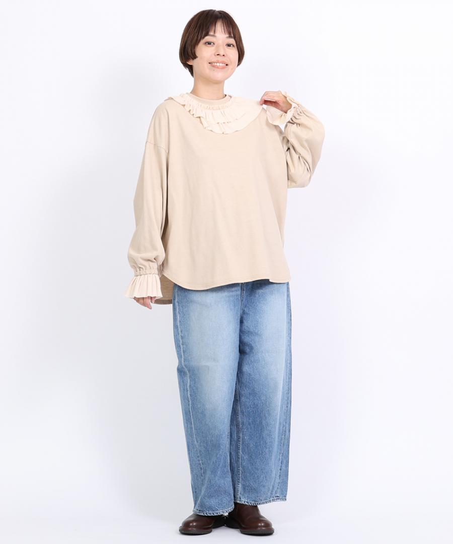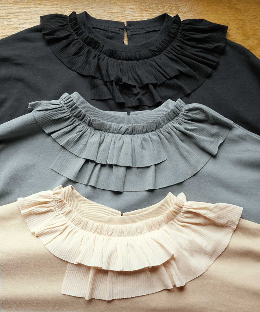 Percee天竺×シアーリブ フリル衿プルオーバー