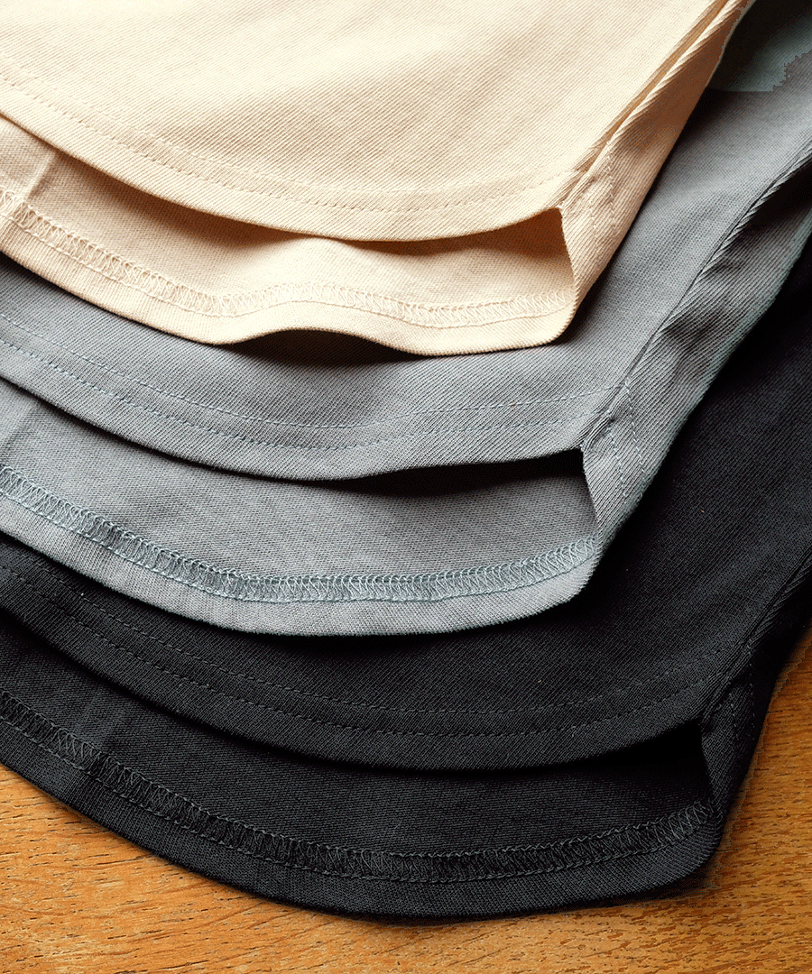 身頃には、独特のシャリ感とドライなタッチが特徴のPercee天竺(ペルセーテンジク)を使用。