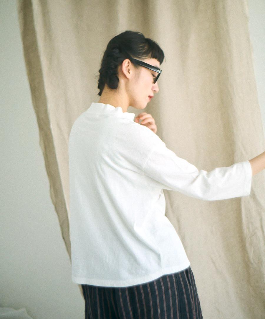 独自のネップ感が生まれるラフィ天竺素材を使用しており、さらりと柔らかな着心地になっています。