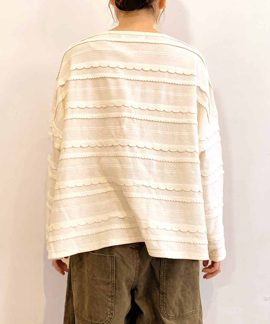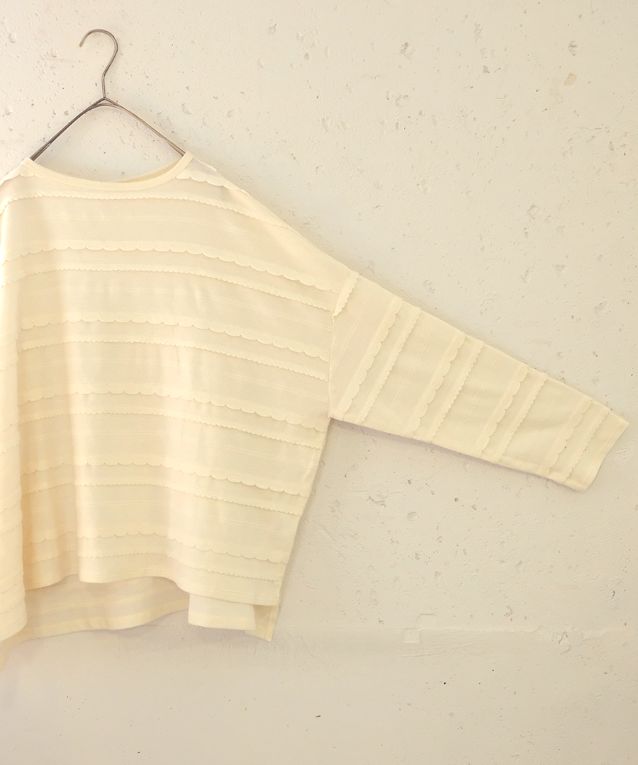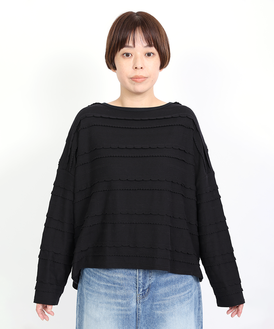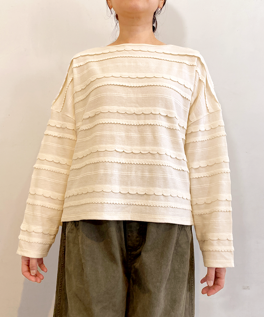 スカラップボーダージャガード ボートネックワイドプルオーバー