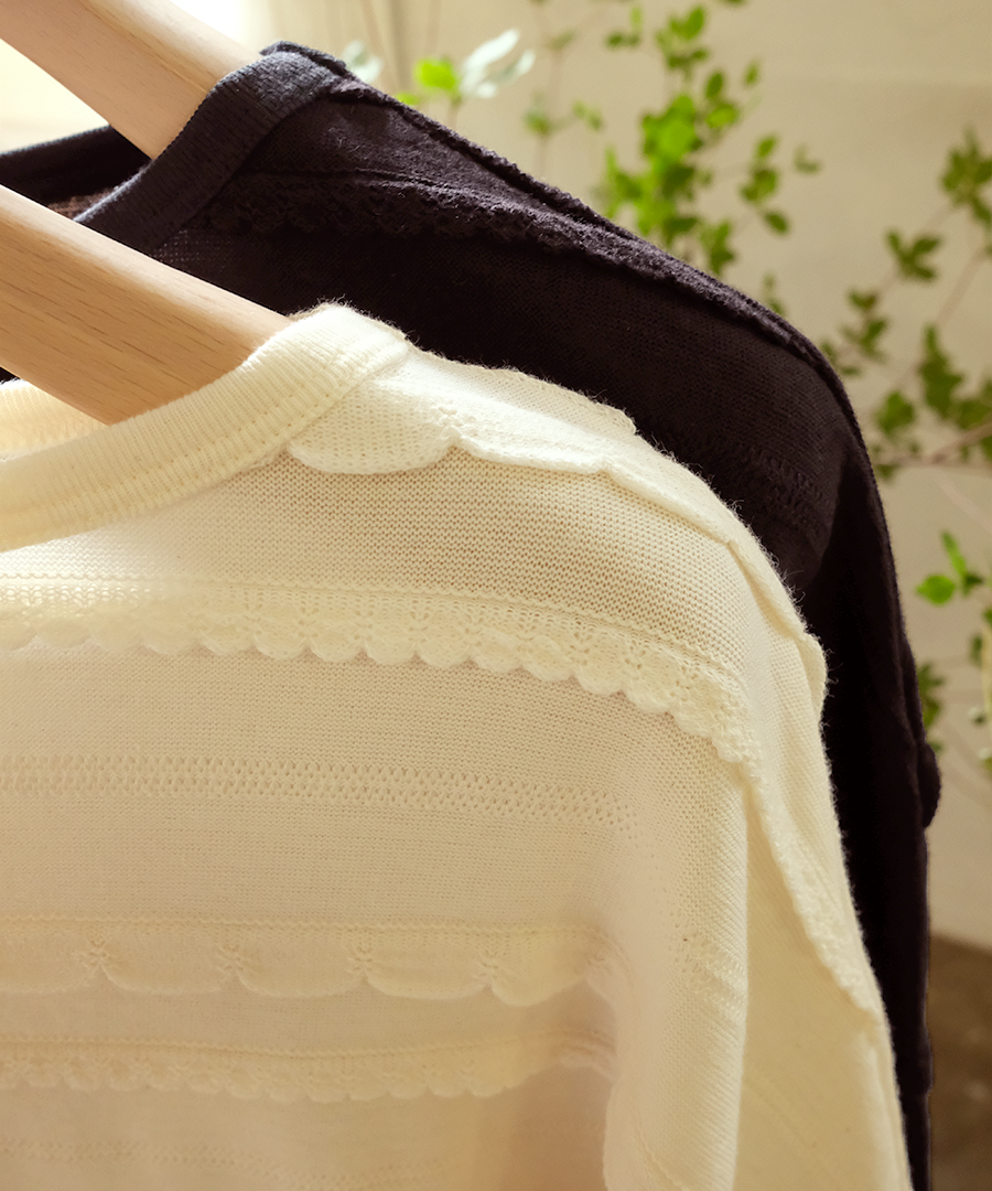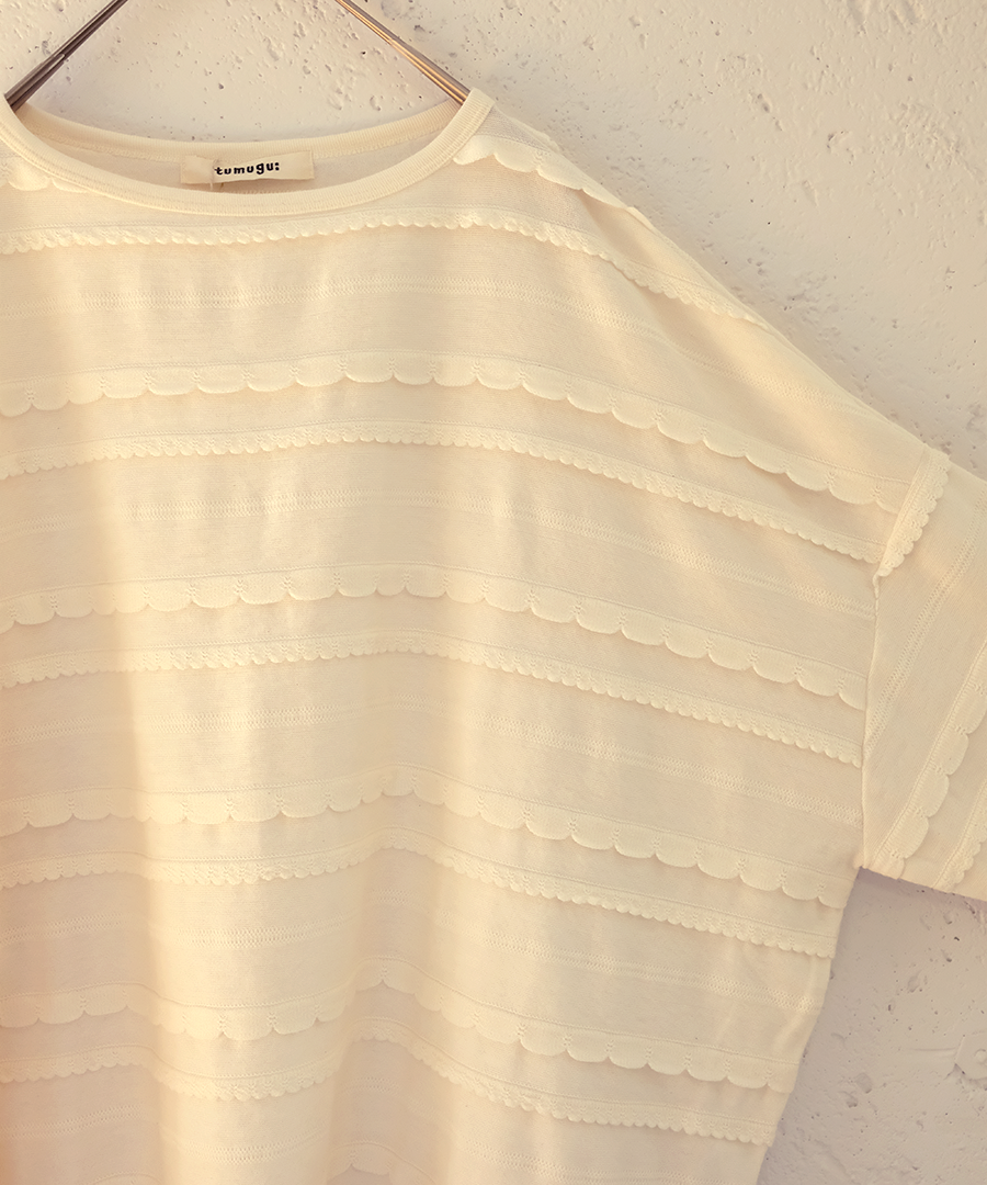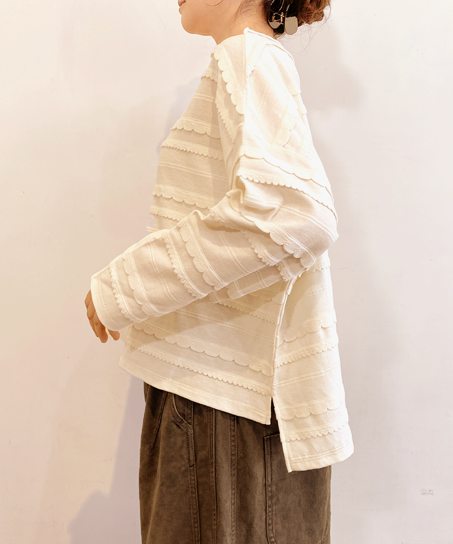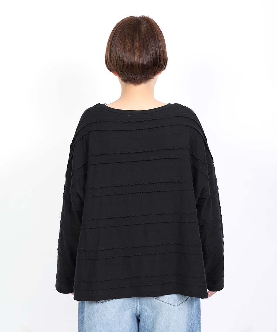 スカラップボーダージャガード ボートネックワイドプルオーバー