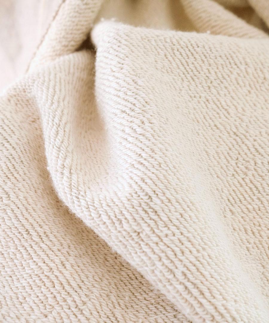 裏はパイル地になっていて、空気を多く含むことで暖かく、季節の変わり目にも役立ちます。