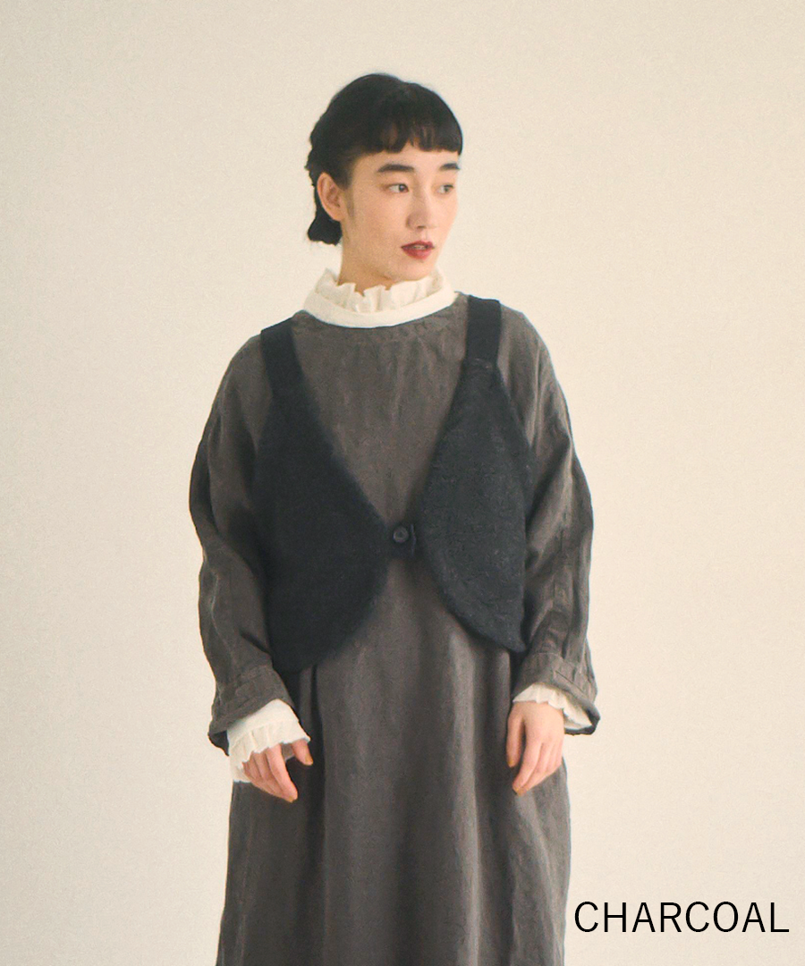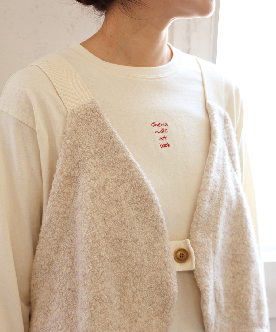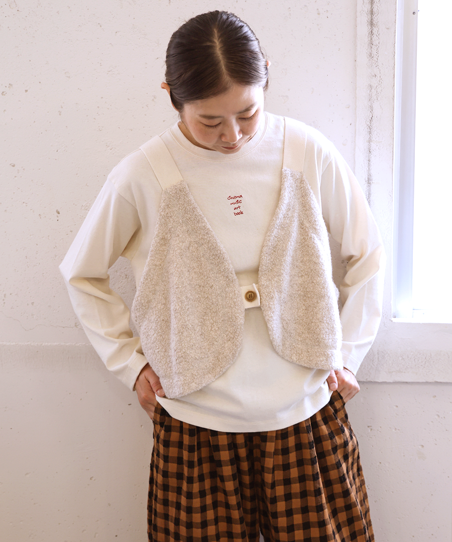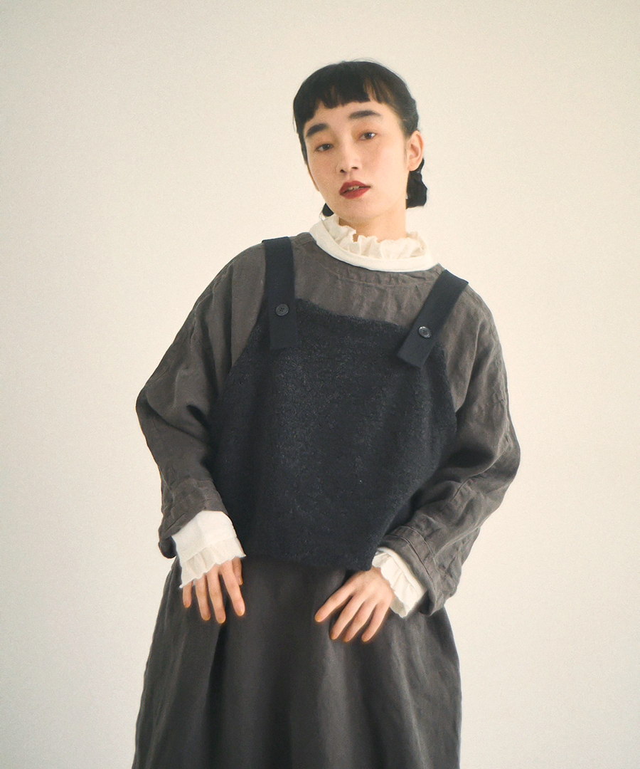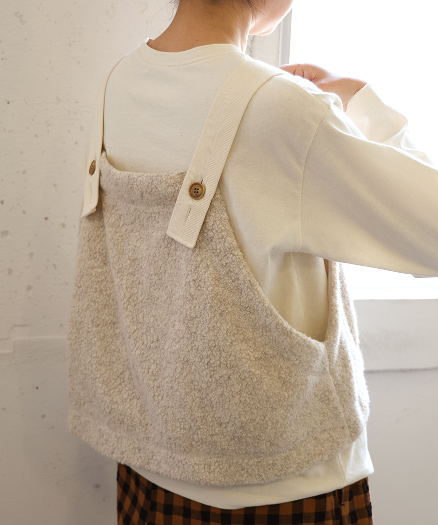 ポコポコと凹凸のある表情が暖かみのある、パイルビスチェ。
