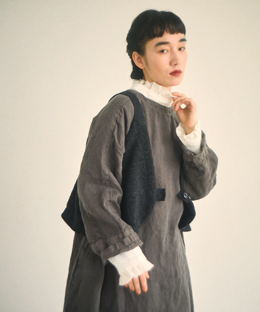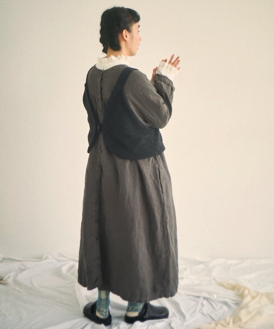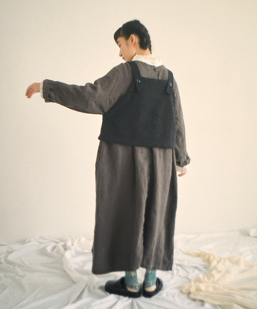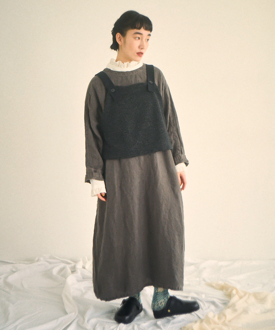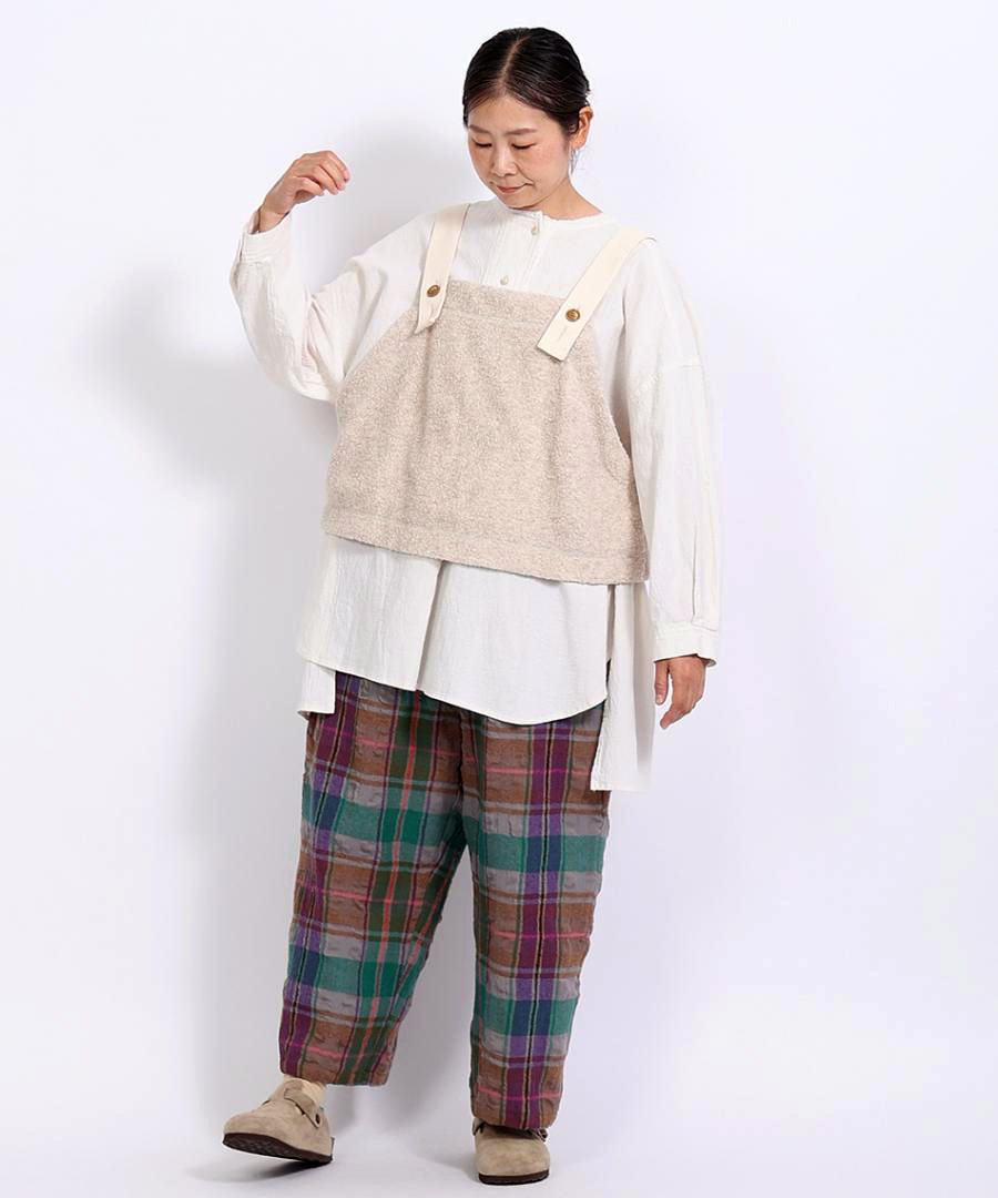 ポコポコと凹凸のある表情が暖かみのある、パイルビスチェ。