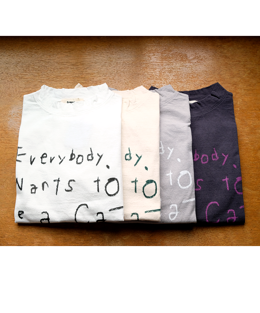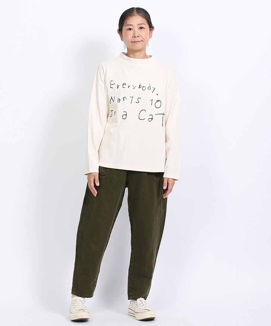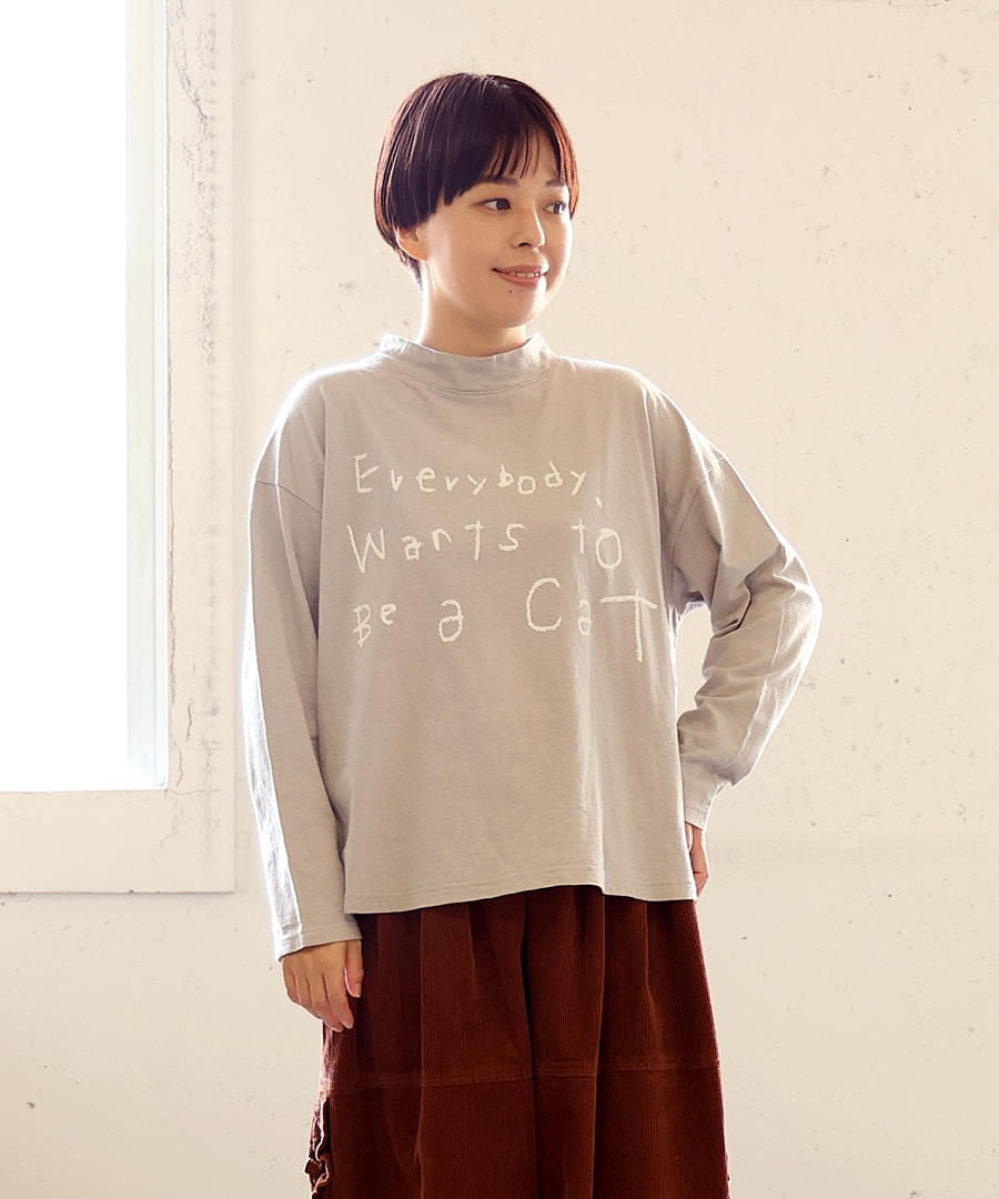 手書き風の「Everybody Wants to Be a Cat」プリントが遊び心のあるアクセントに。