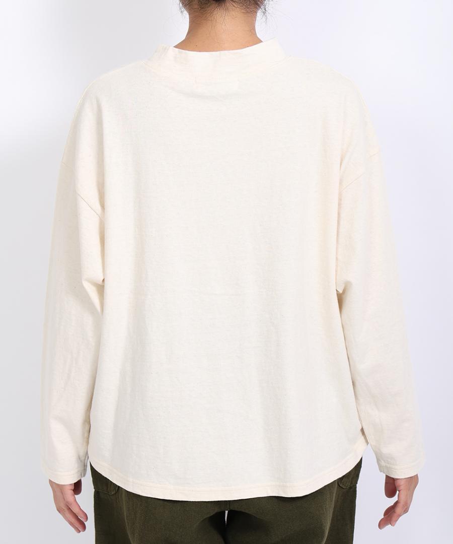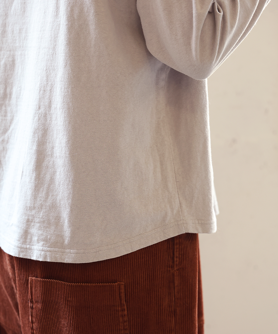 ラフィ天竺特有のドライな肌触りと、ふんわりナチュラルな風合いが特徴です。