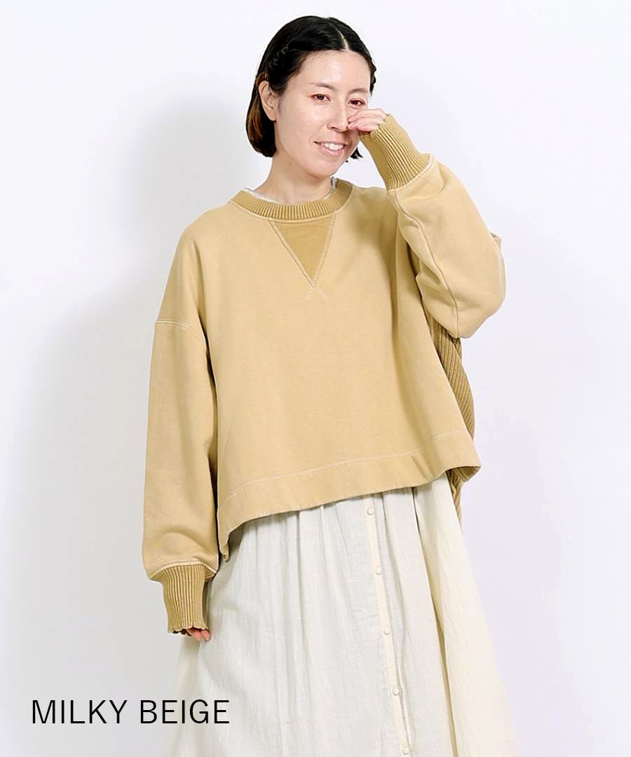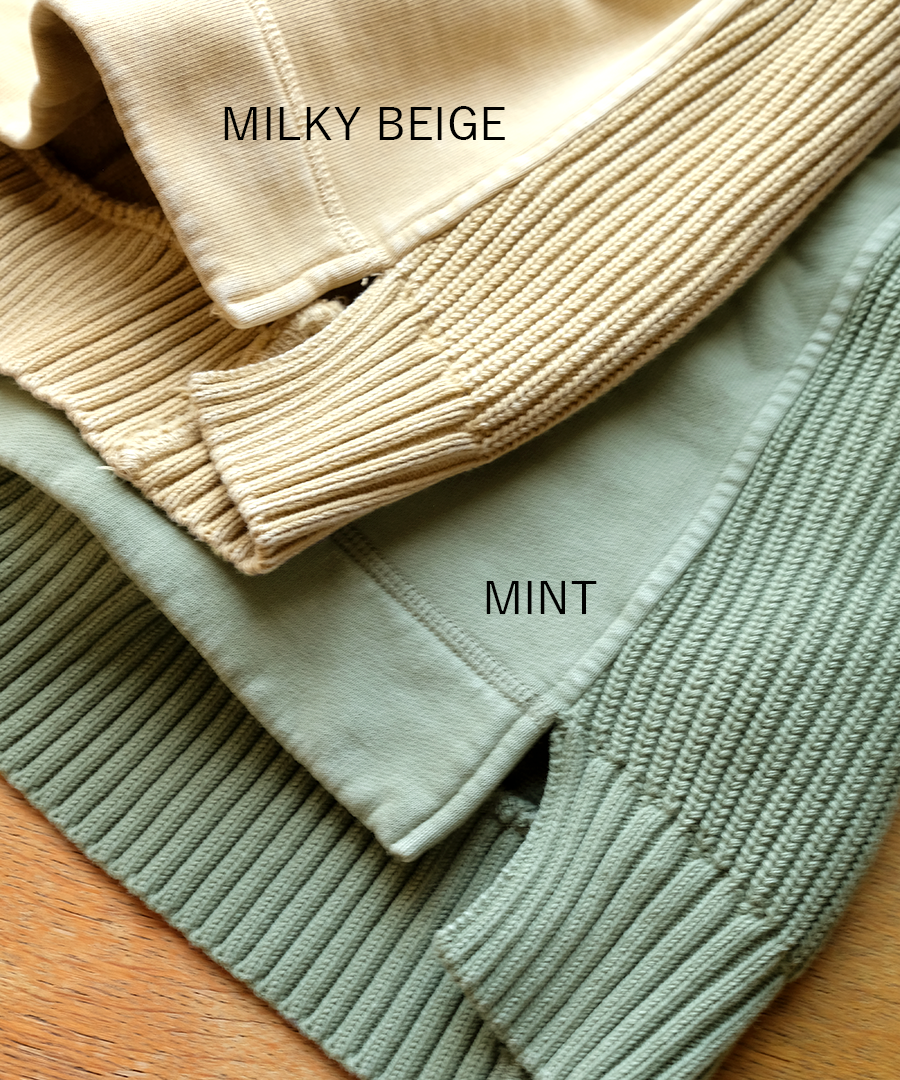 首元や袖口はニット素材のリブで変化をつけて、程よい厚みで秋から春先までロングシーズン着まわせるアイテムです。