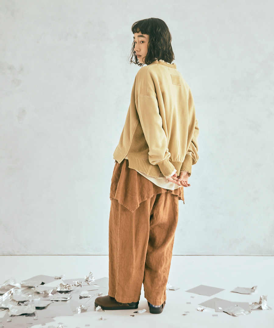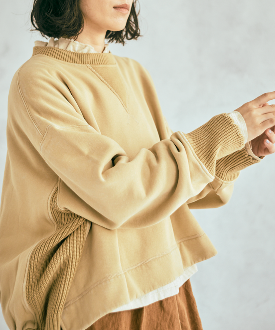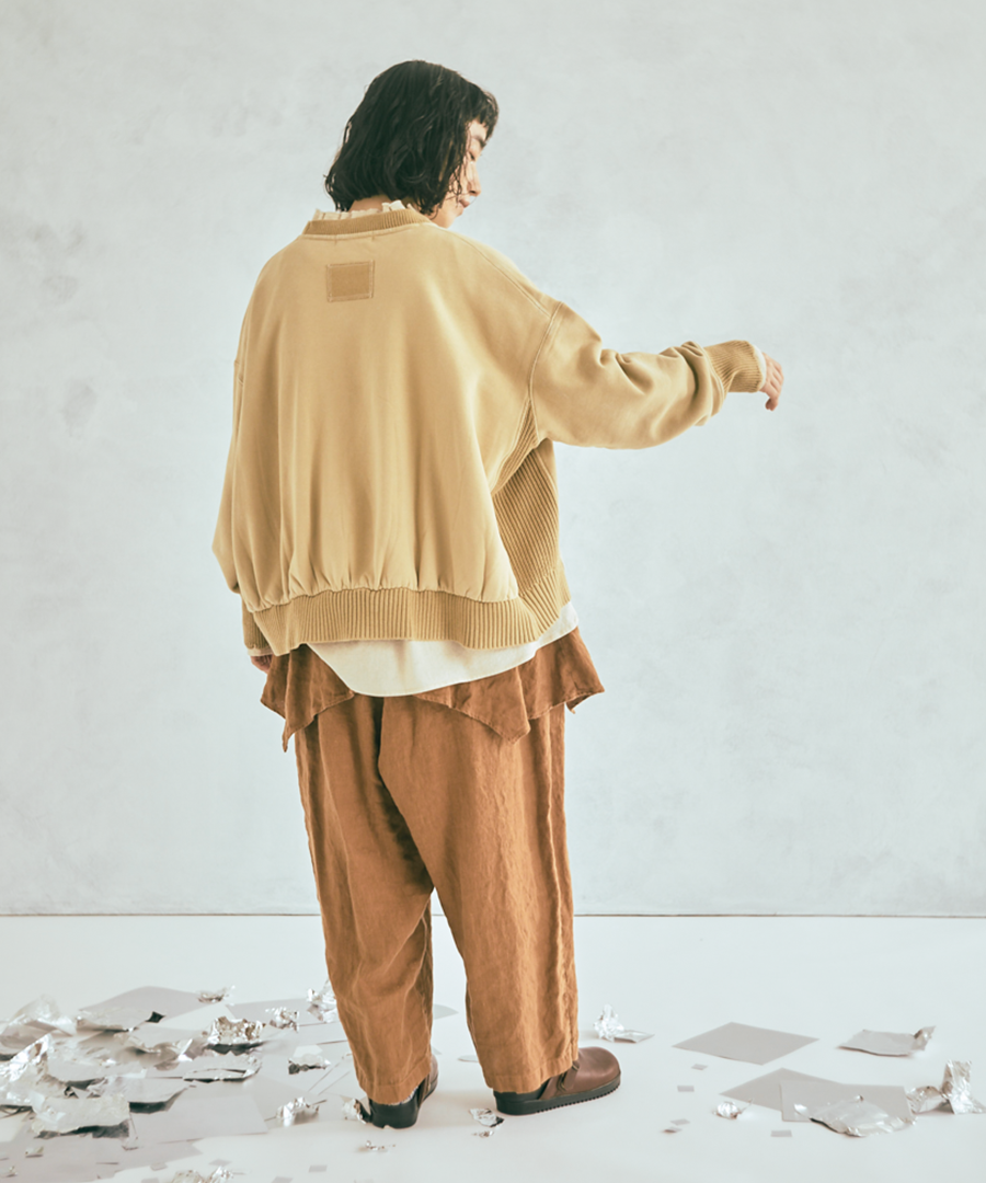 部分的にニット素材を組み合わせ、着心地の良さと季節感のあるディティールに仕上げました。