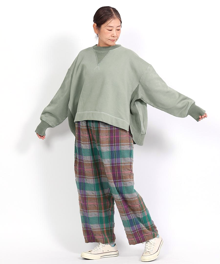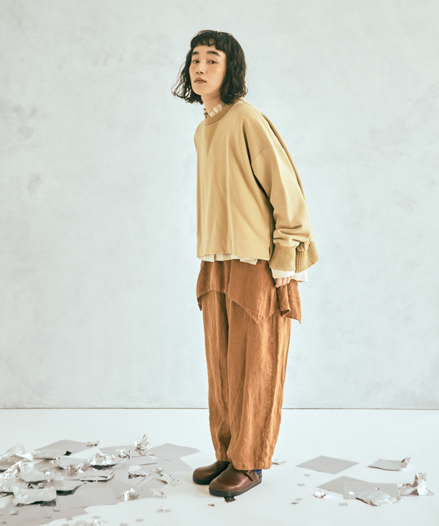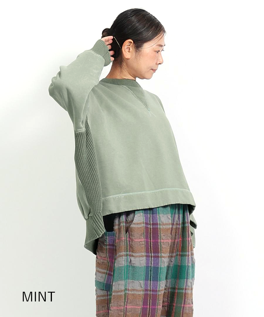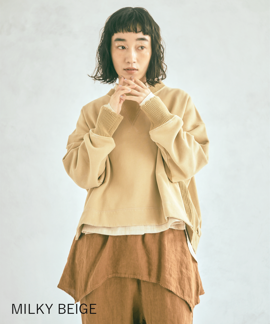 部分的にニット素材を組み合わせ、着心地の良さと季節感のあるディティールに仕上げました。