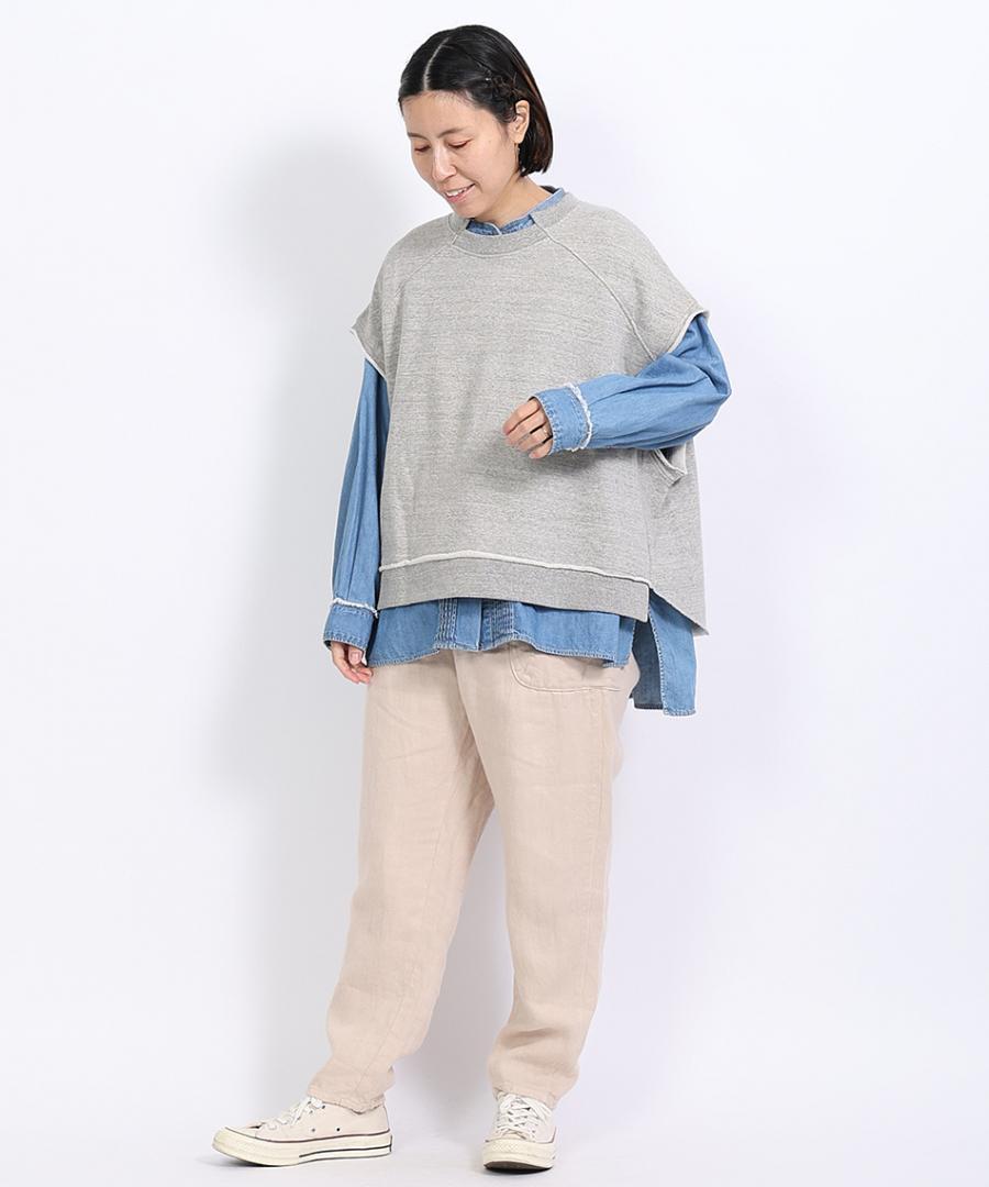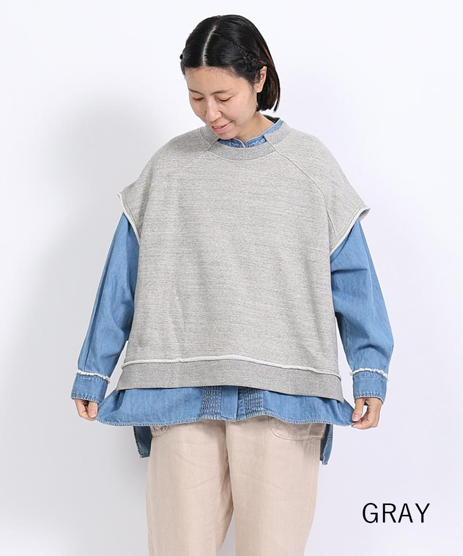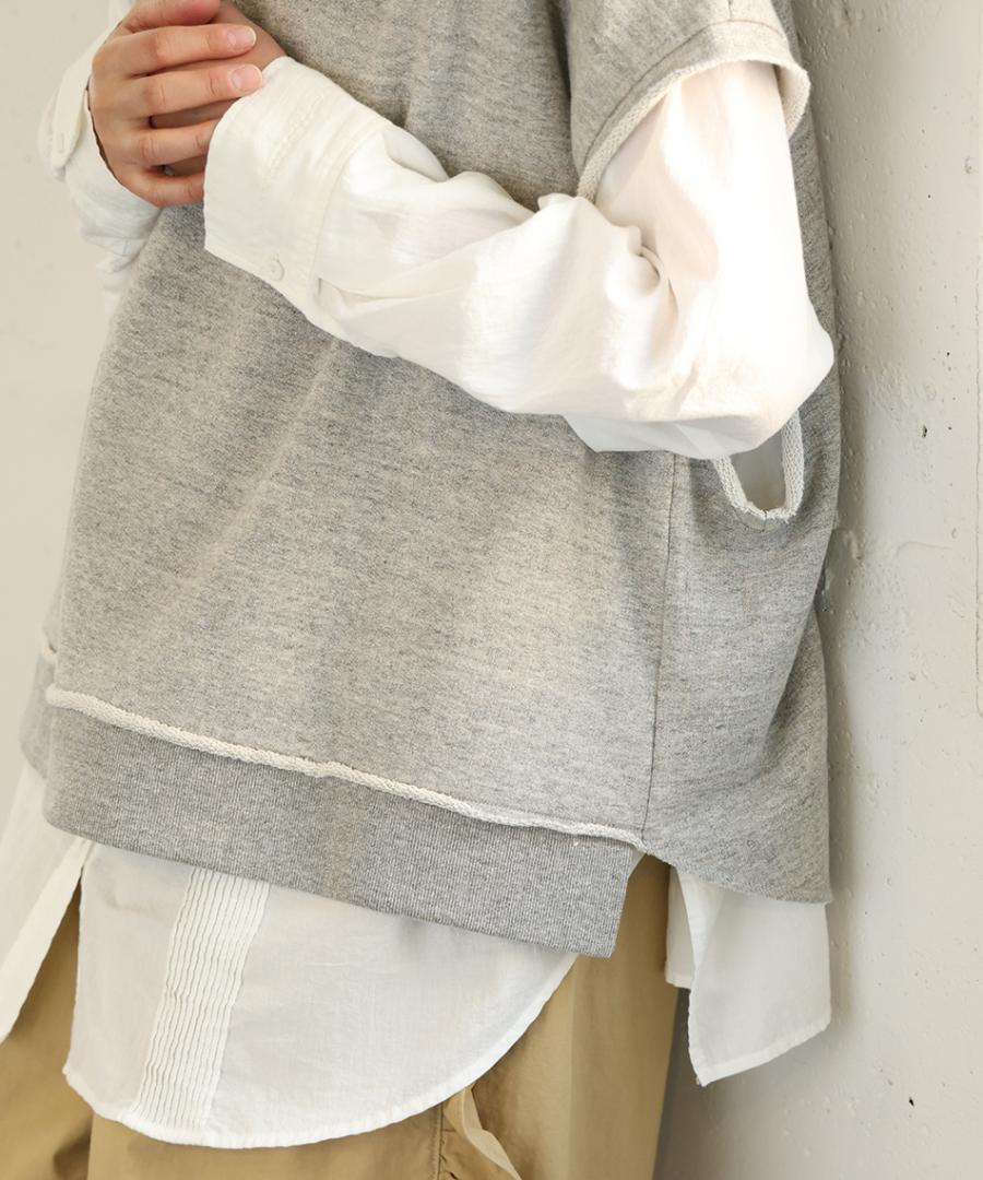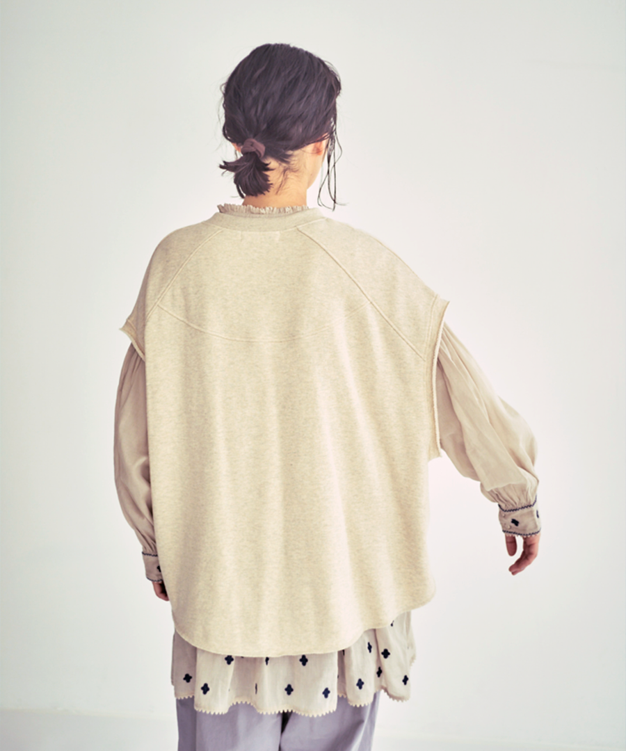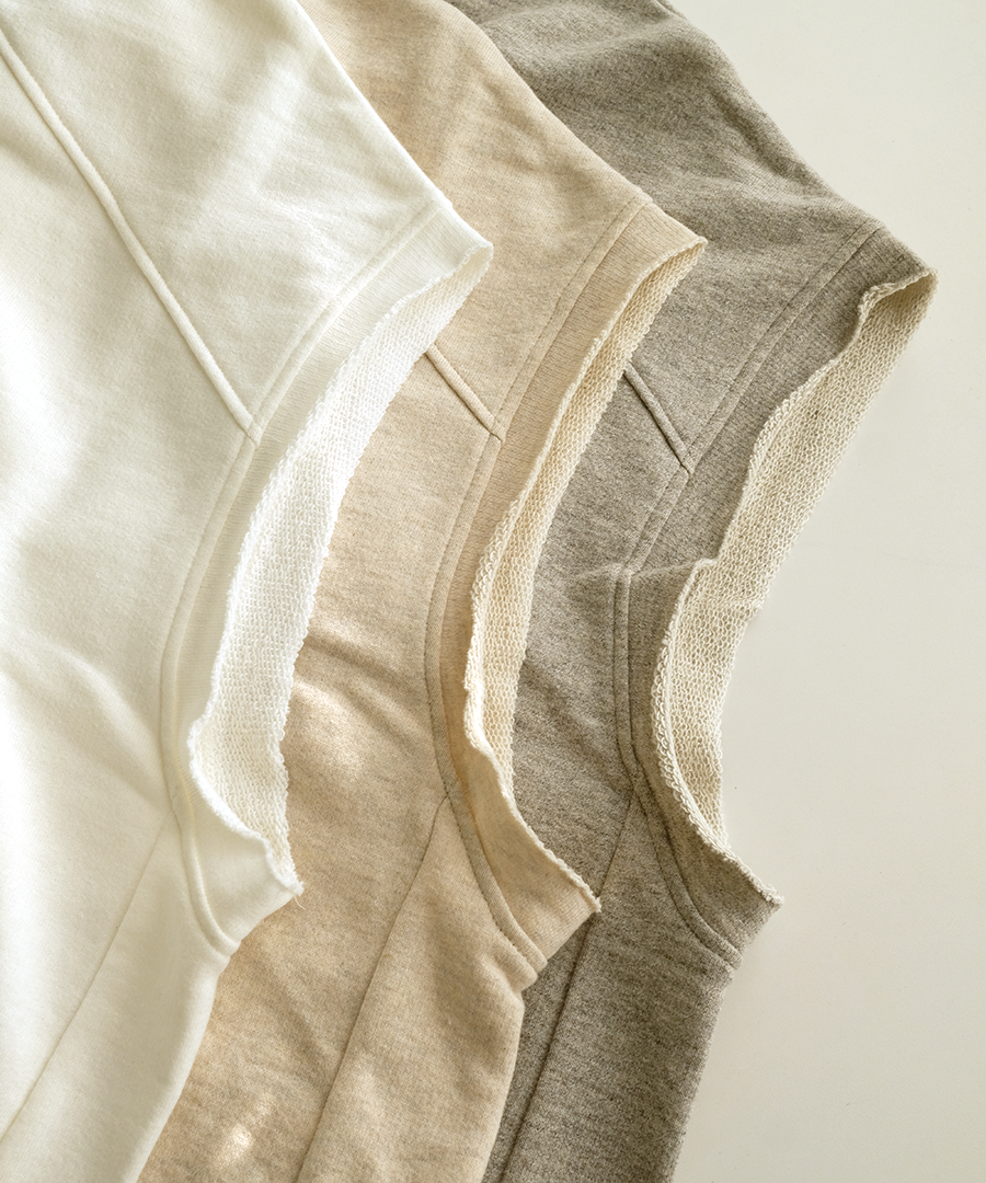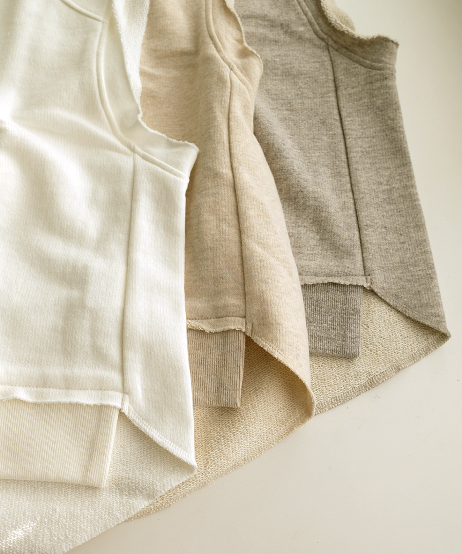 リサイクル糸を使用した環境にやさしい裏毛素材のベスト。