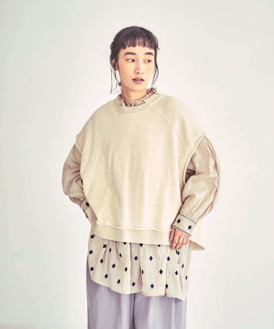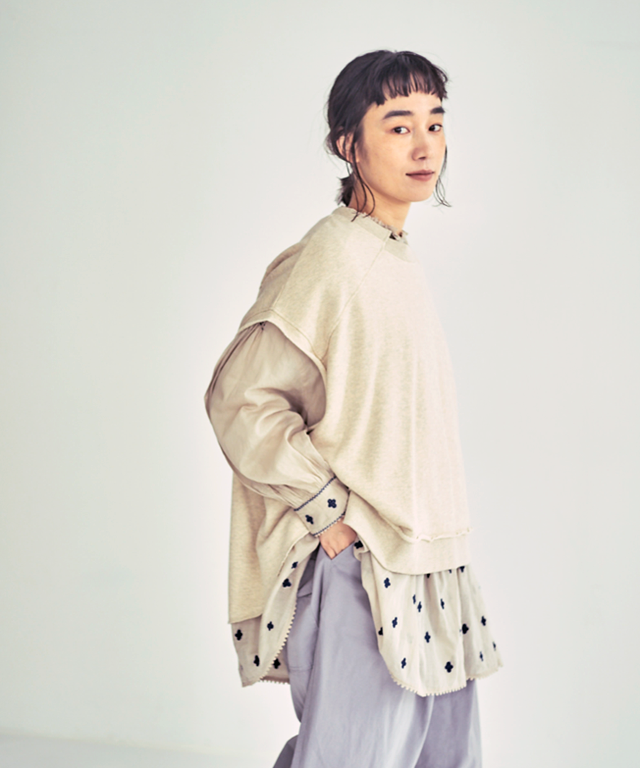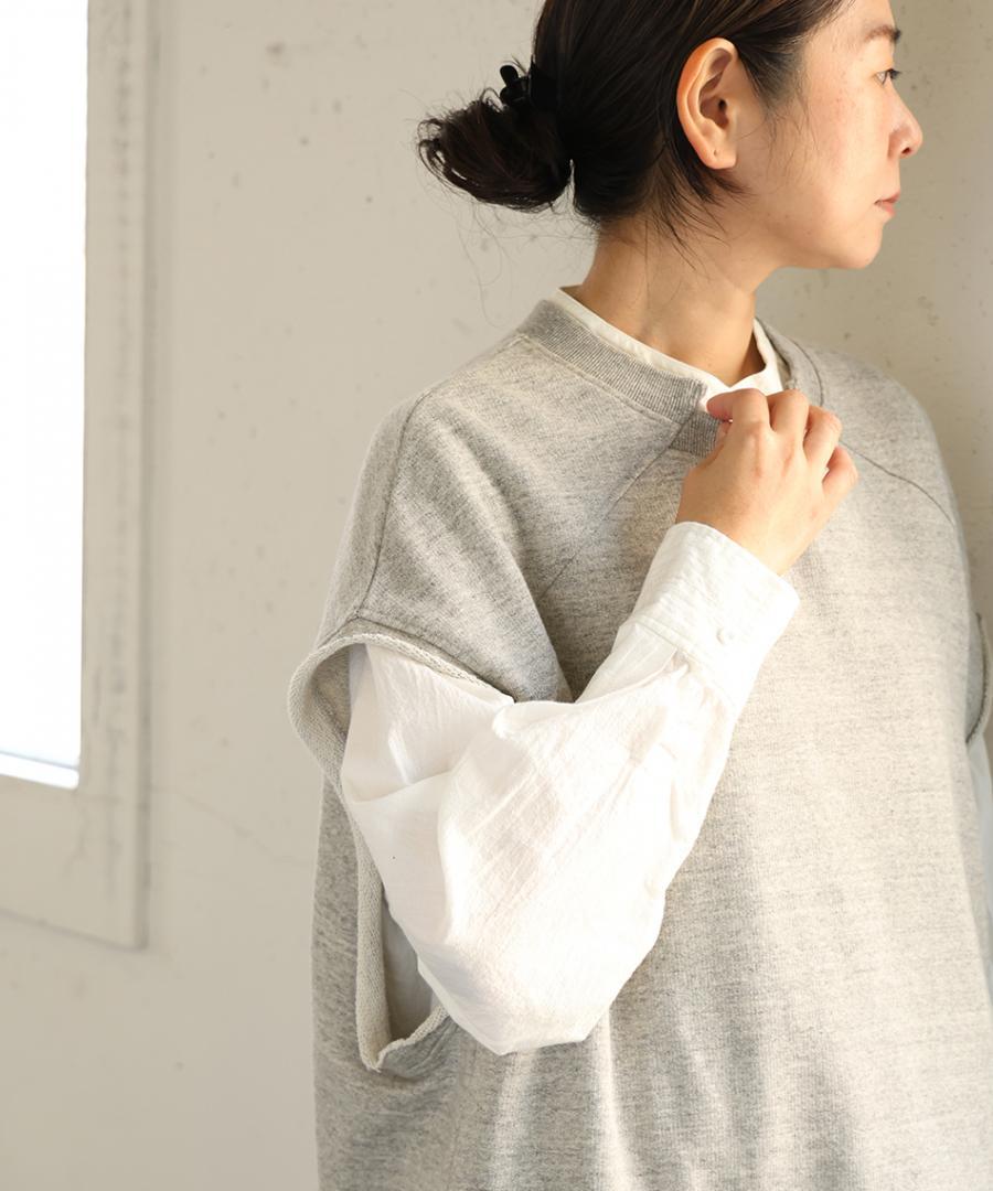 ゆったりとしたボクシーシルエットと広めの袖口は、シャツやブラウスとのレイヤードもすっきり。