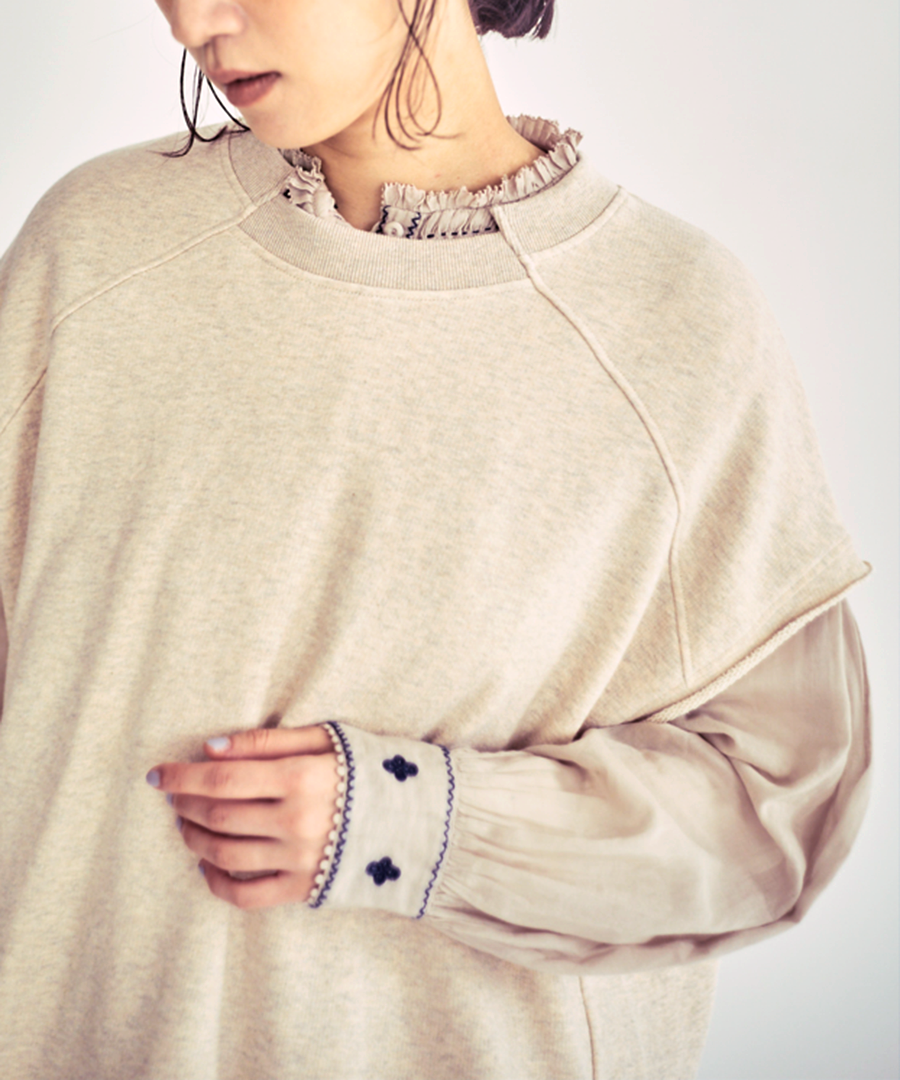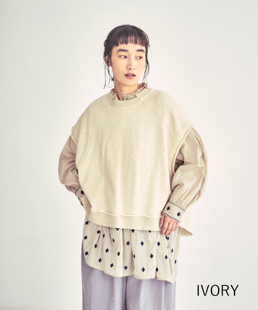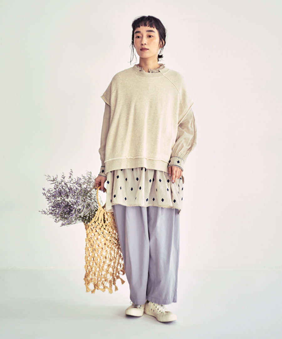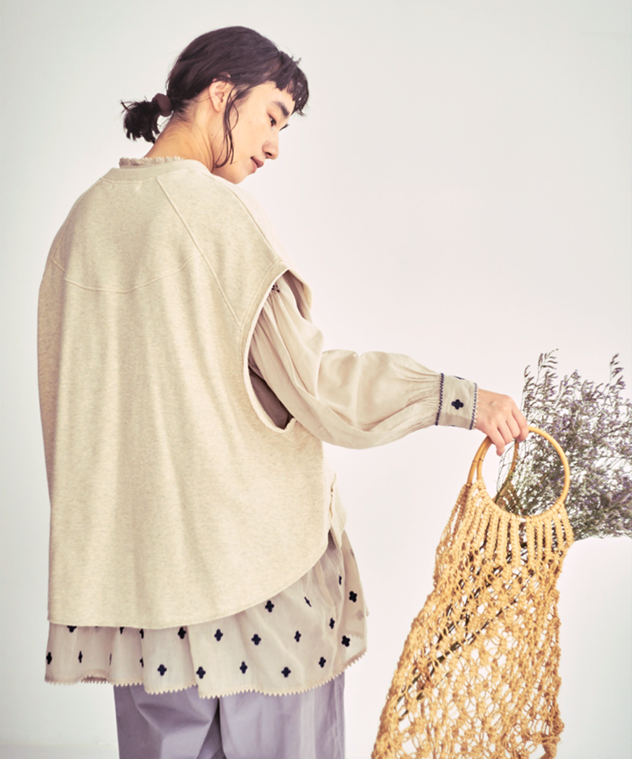 ゆったりとしたボクシーシルエットと広めの袖口は、シャツやブラウスとのレイヤードもすっきり。