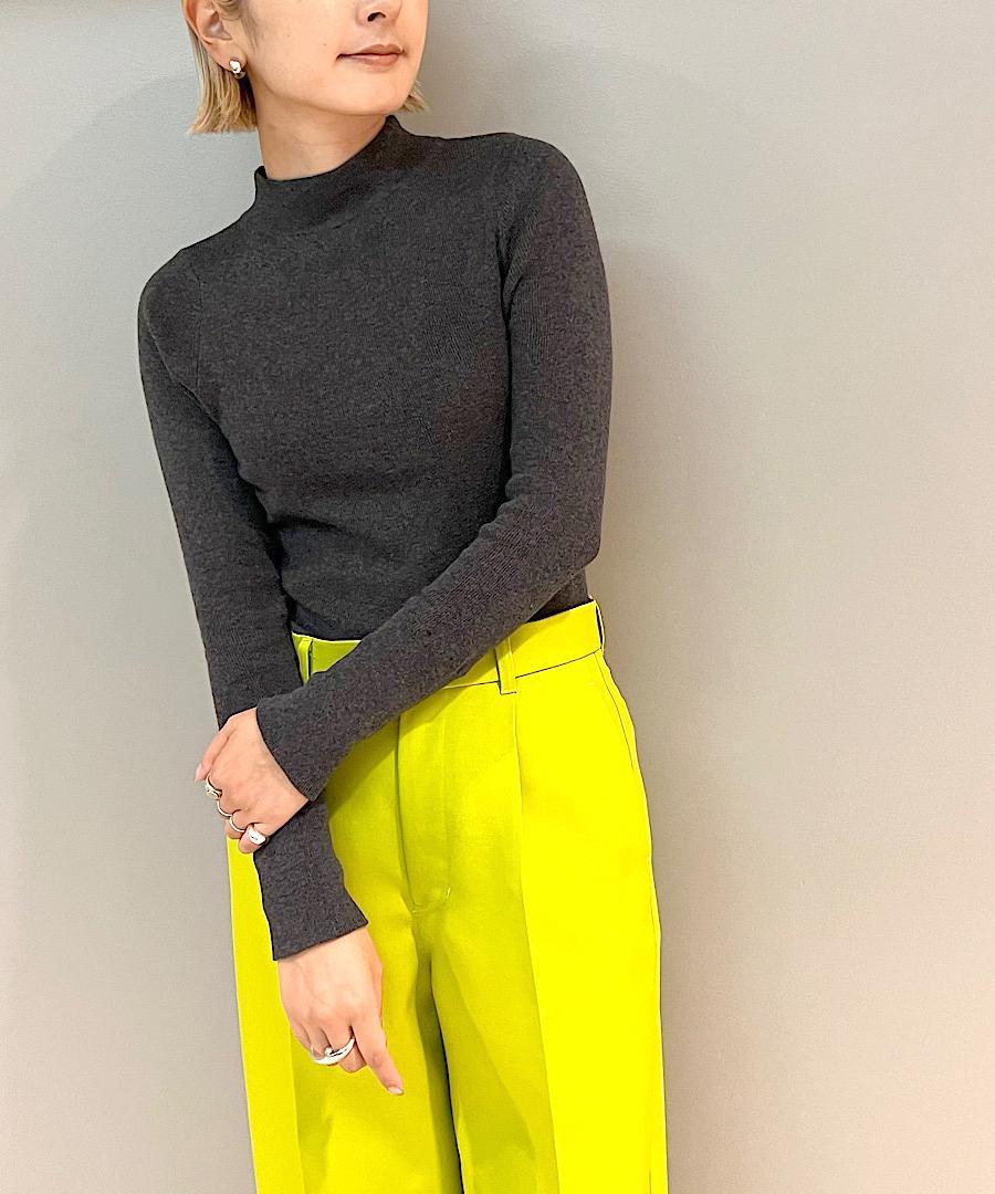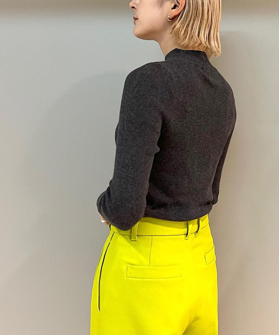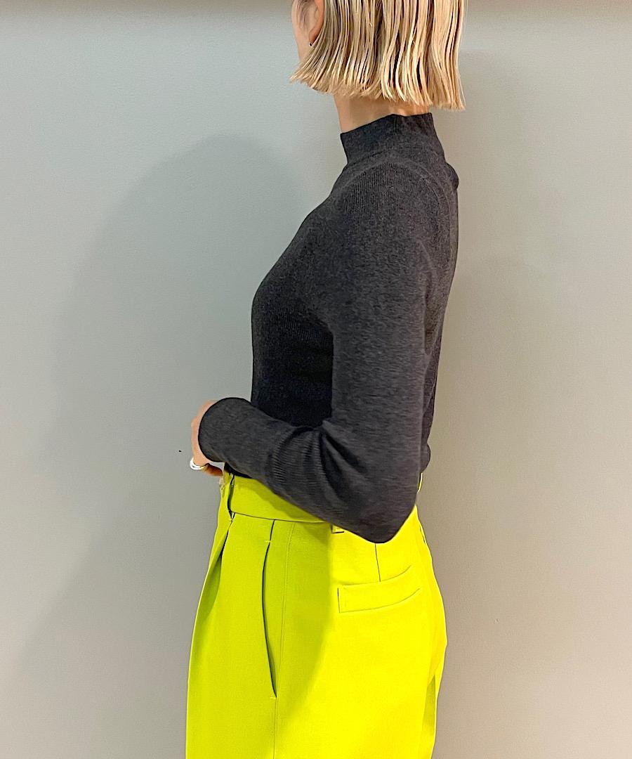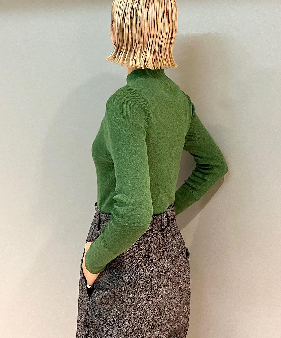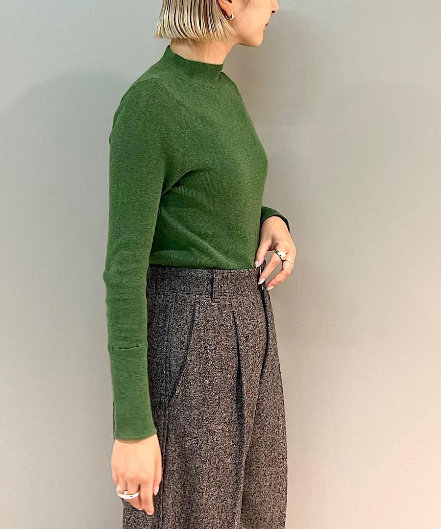ハイネックでもタートルのような高さは無いので、レイヤード時に首周りがもたつかずスッキリ見えするのが良いところ。