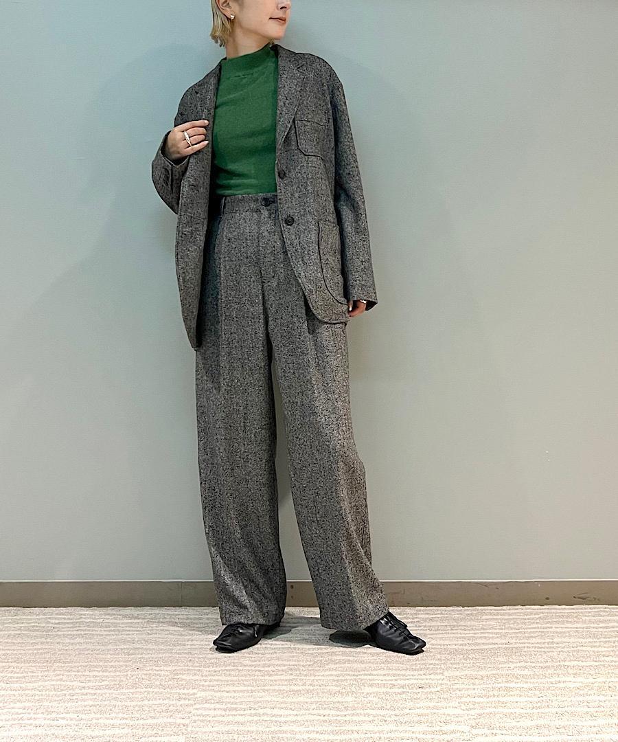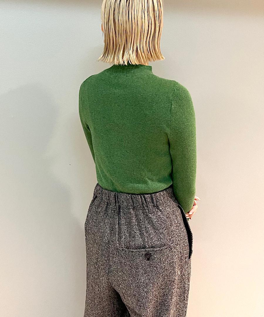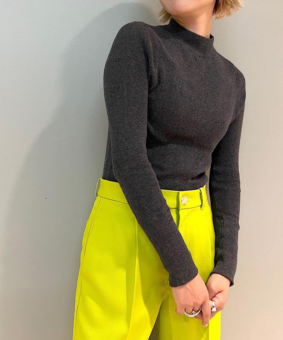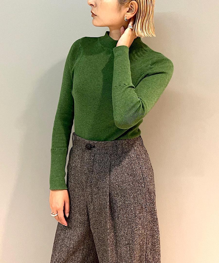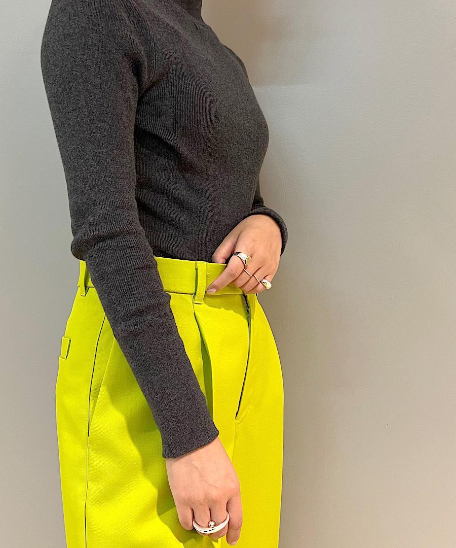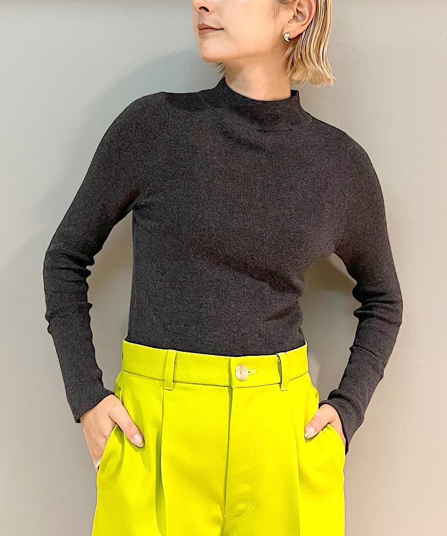 ハイネックでもタートルのような高さは無いので、レイヤード時に首周りがもたつかずスッキリ見えするのが良いところ。