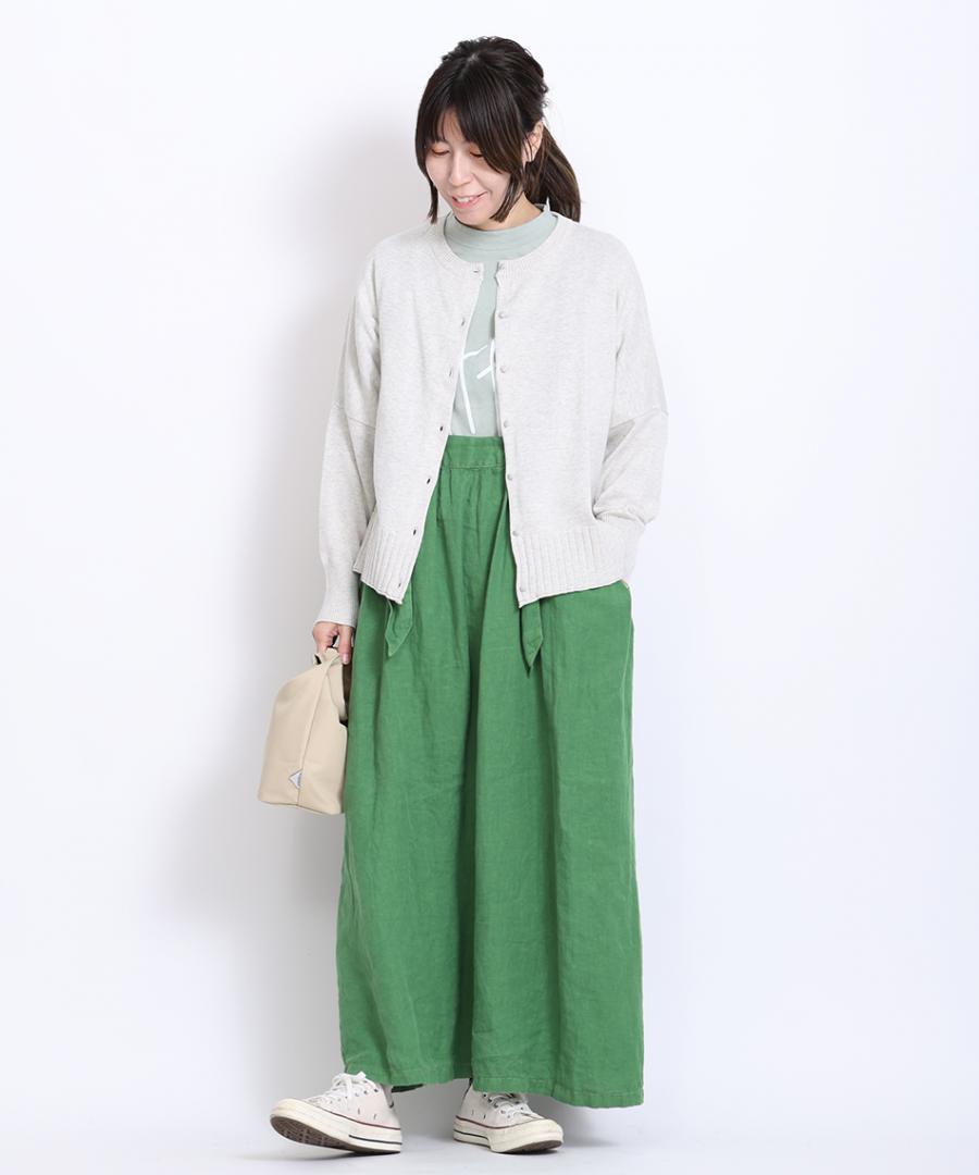 ボトムスを選ばず、どんなコーデにも馴染んで着回しできるカーディガンです。