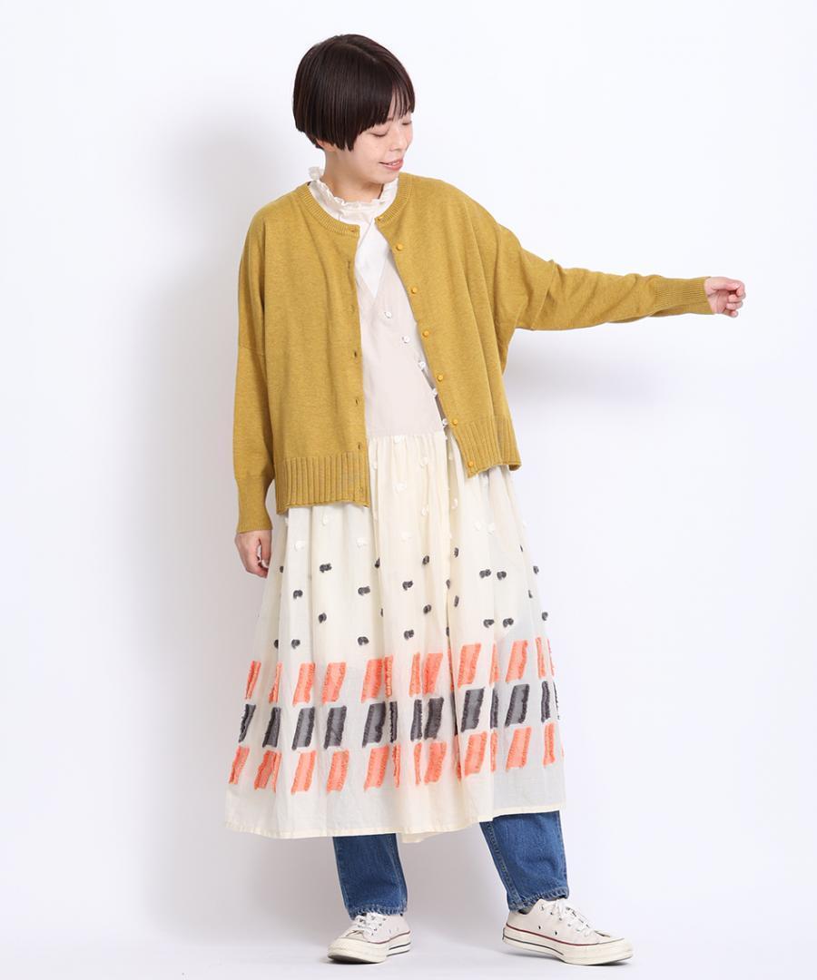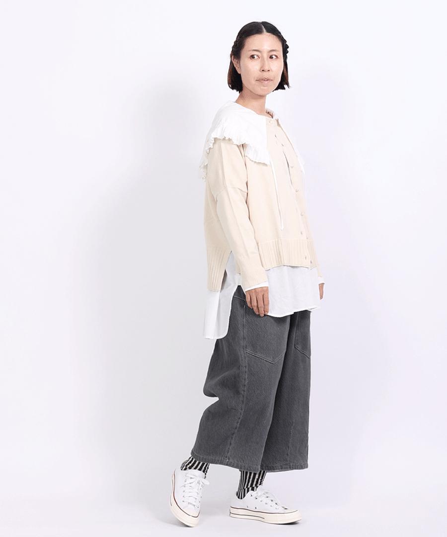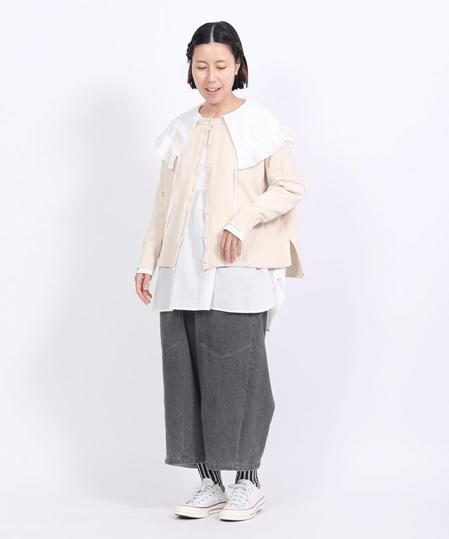 ボトムスを選ばず、どんなコーデにも馴染んで着回しできるカーディガンです。