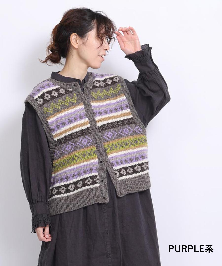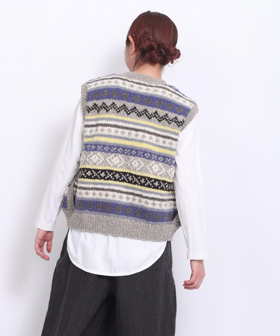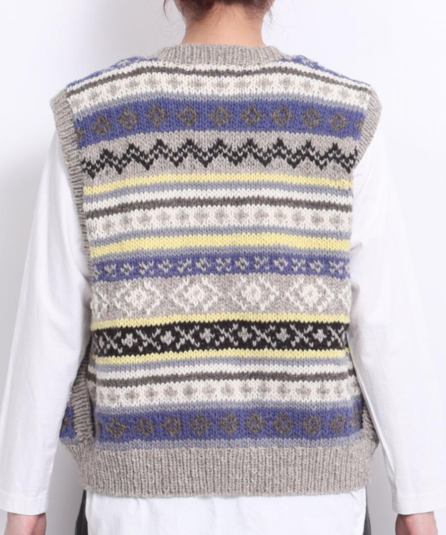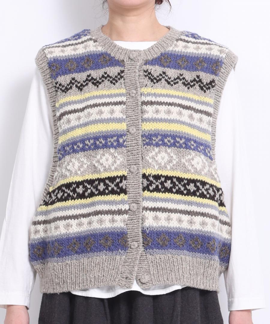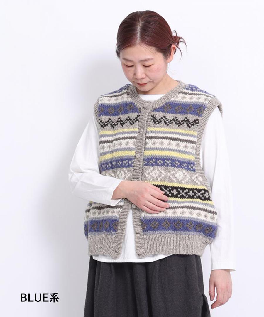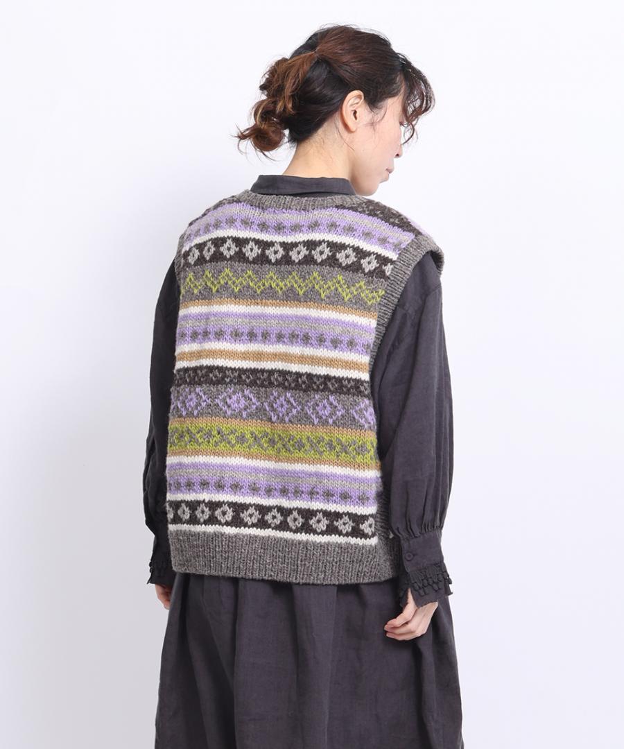 7色の糸を使用したトラディッショナルなジャガード柄可愛いベスト。