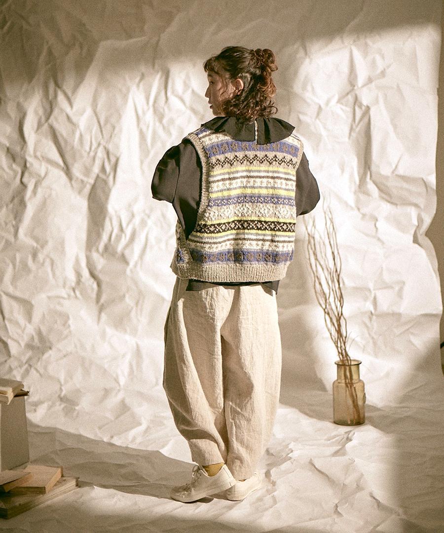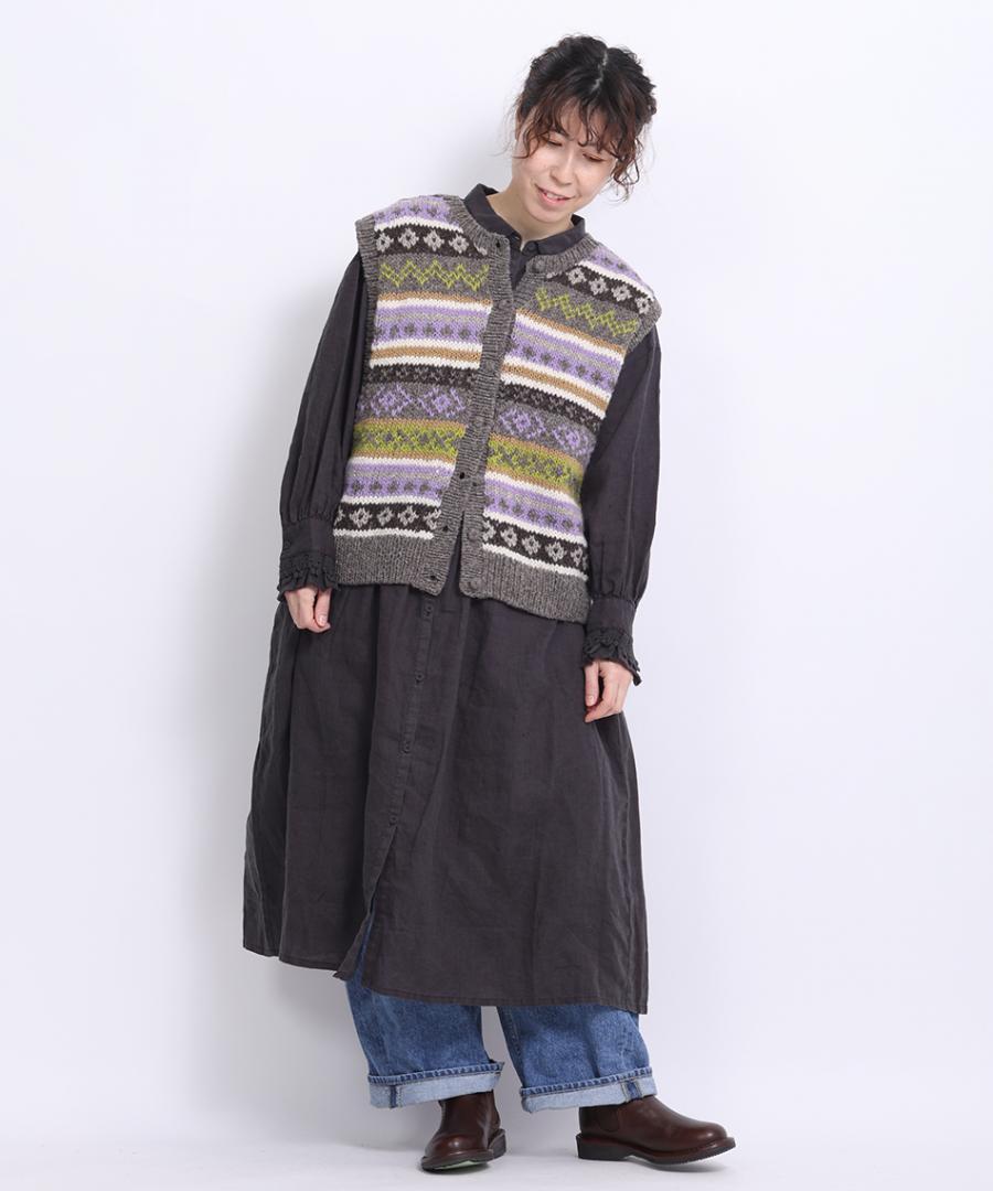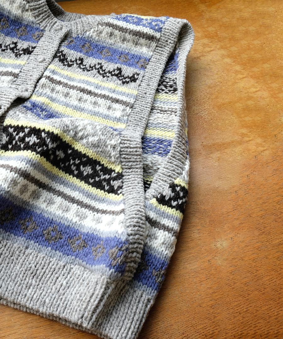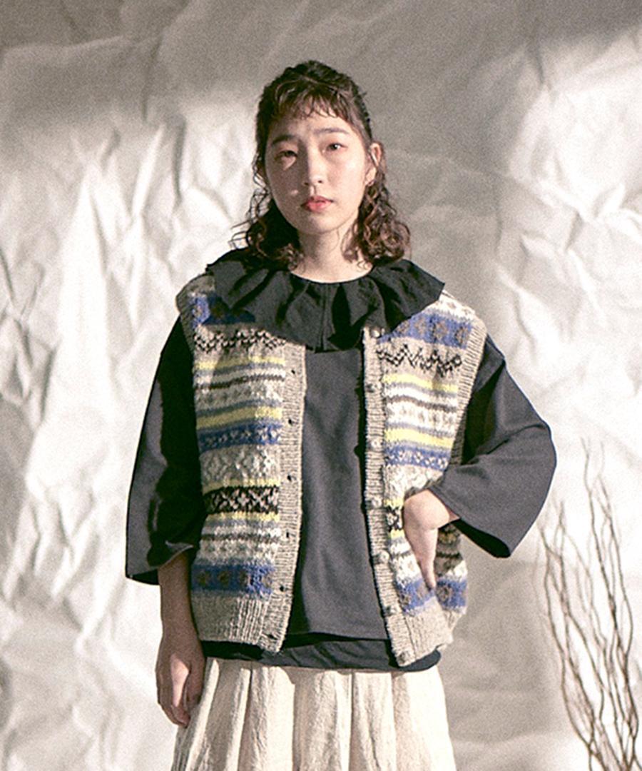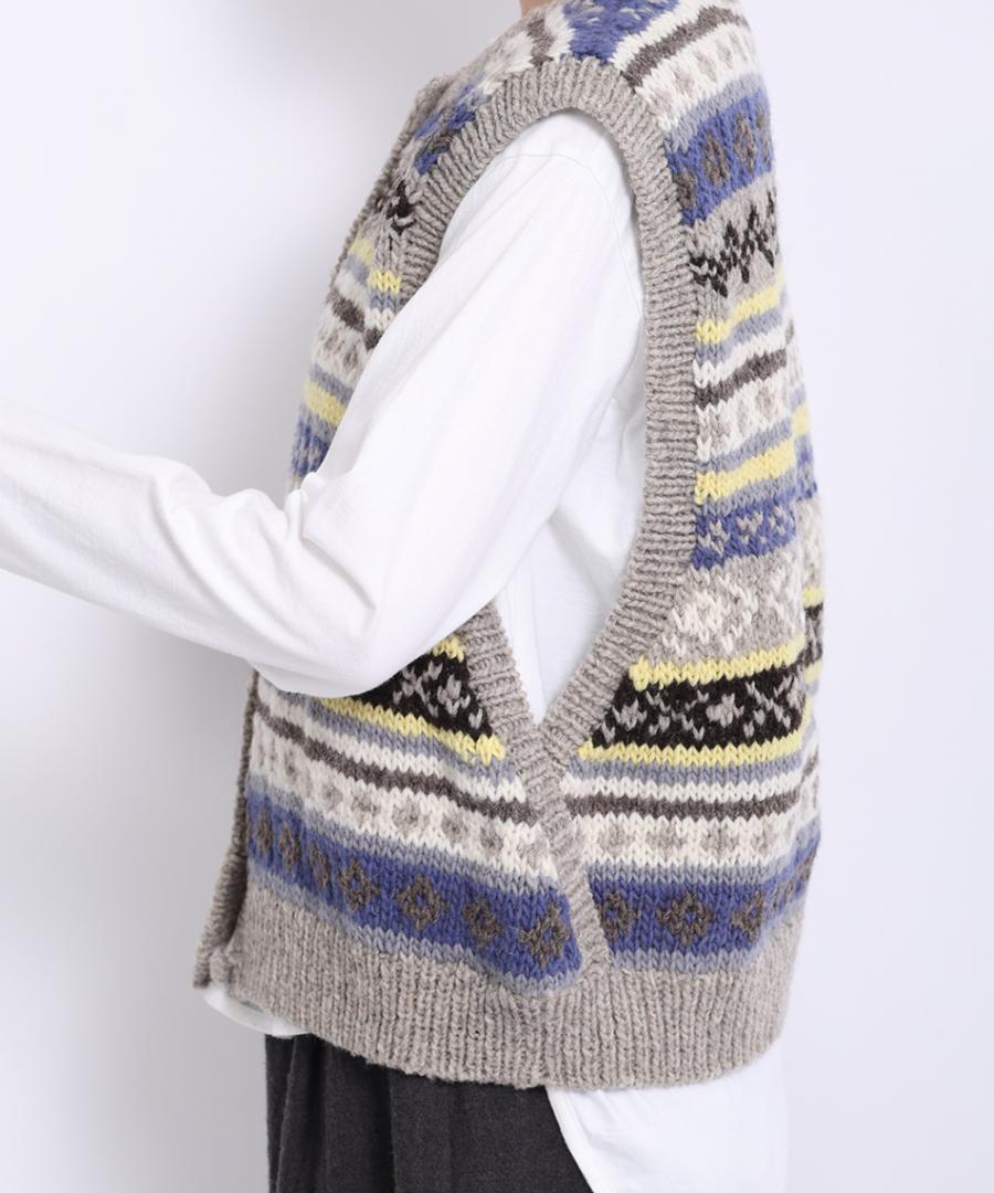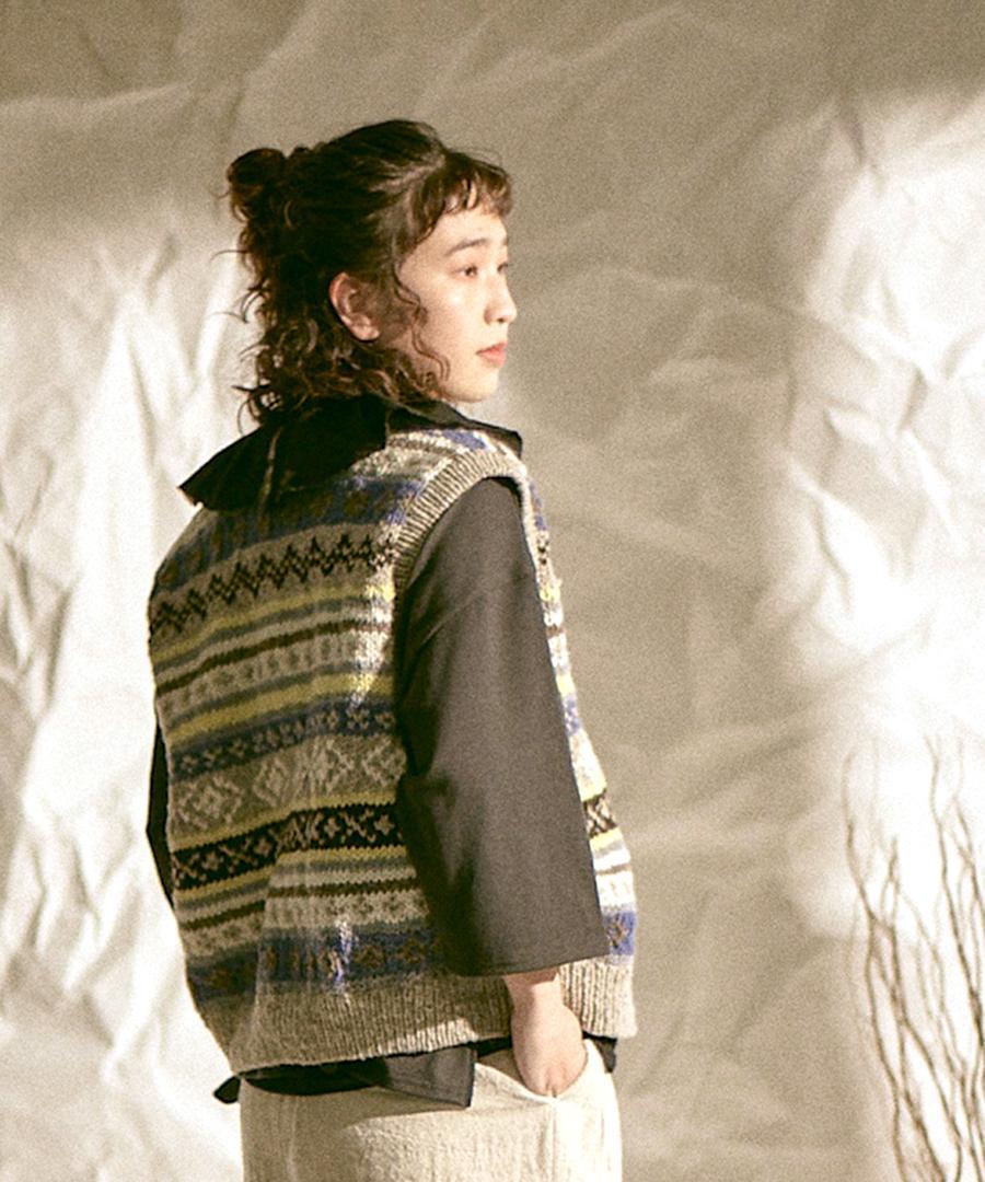 7色の糸を使用したトラディッショナルなジャガード柄可愛いベスト。