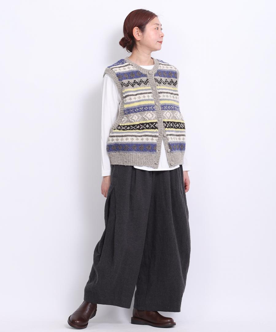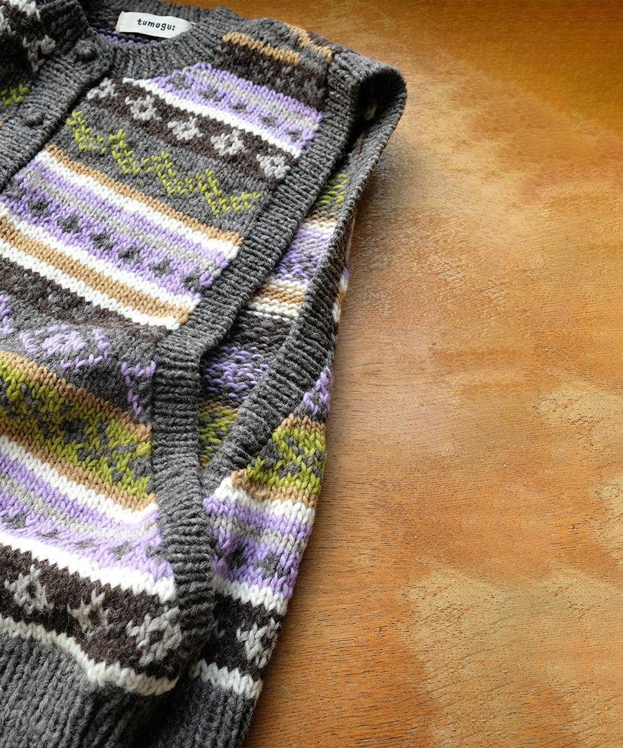 ペルーの羊毛を使用した手紡ぎ糸を、職人さんが一つ一つ手作業で編んだ温かみのあるベスト。