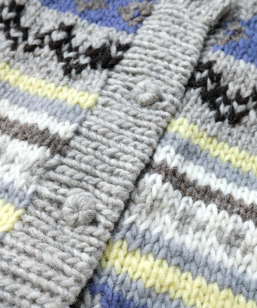 1枚1枚ロービングと呼ばれる手作業で編み上げた、表情豊かなハンドニットです。