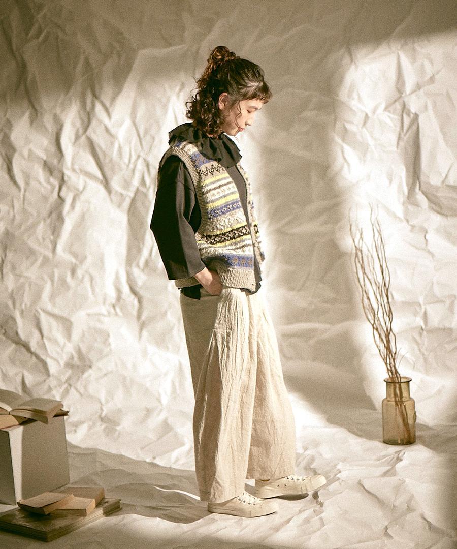 アームホールを広めにしたデザインでボリューム袖のアイテムなど、重ね着がしやすくなっています。