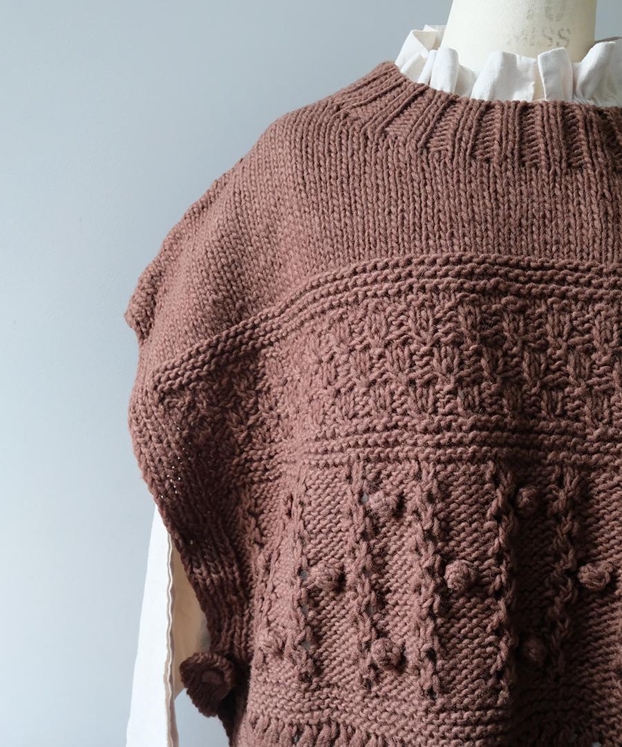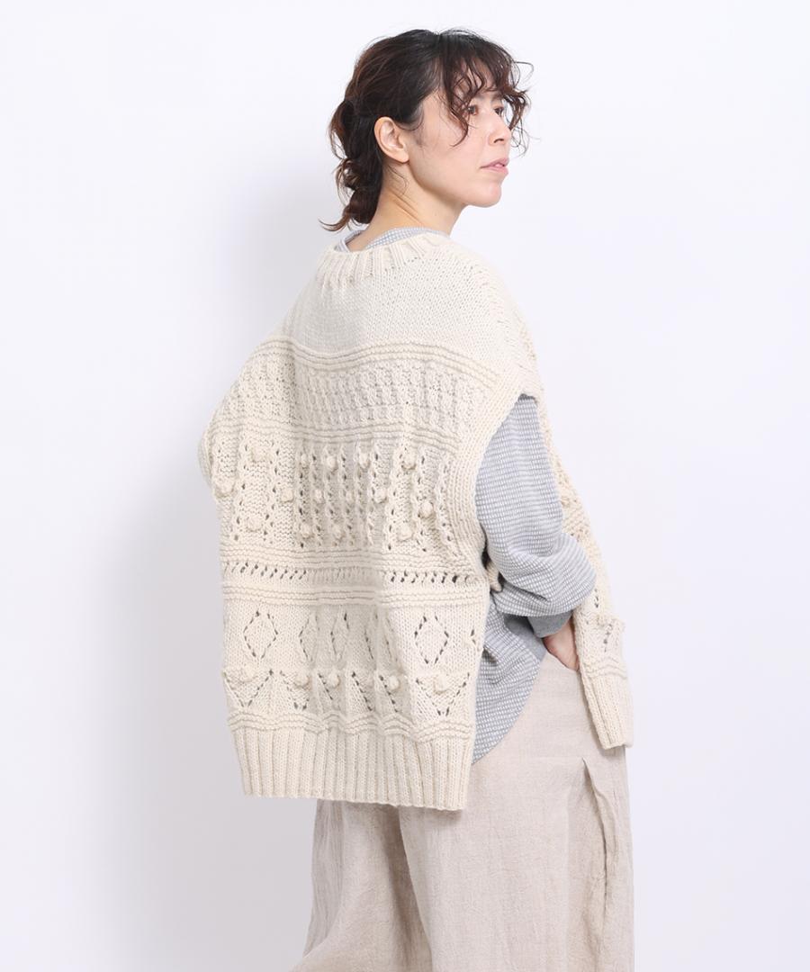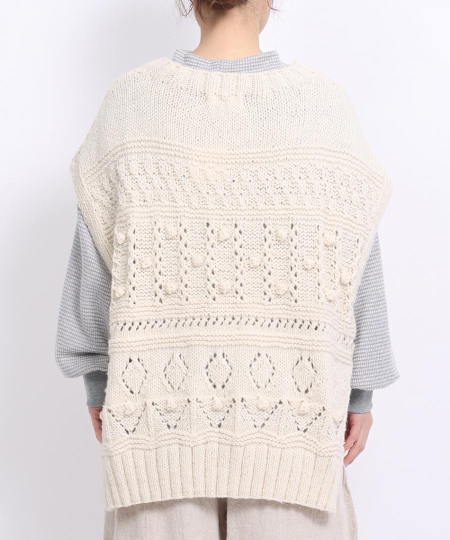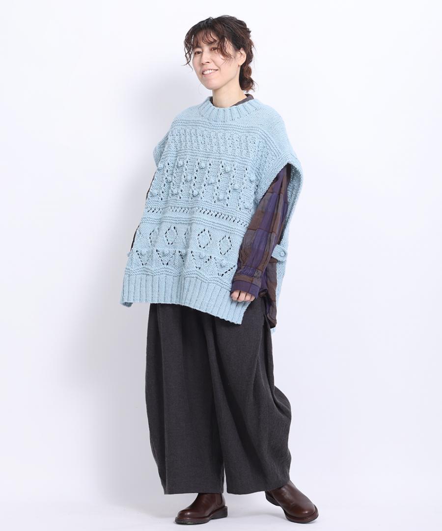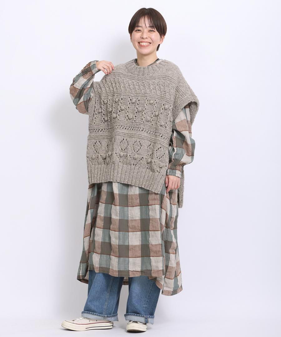 ロービングウール編み地ミックス ビッグベスト