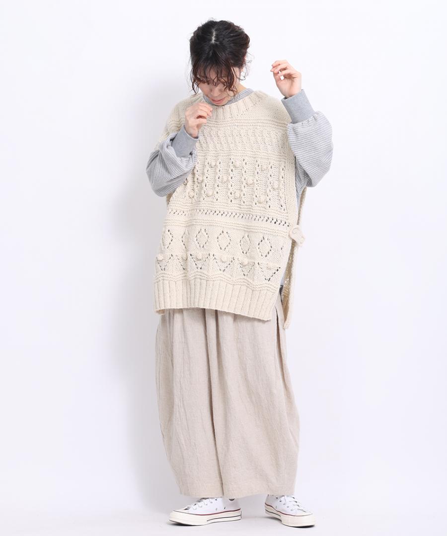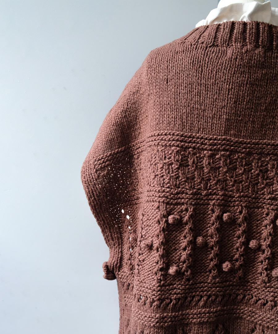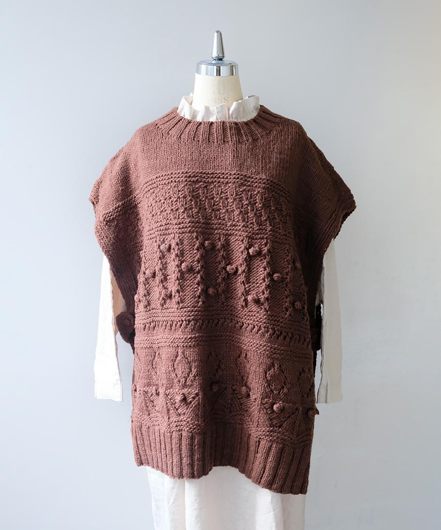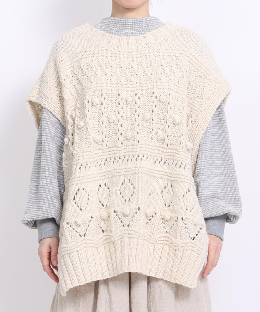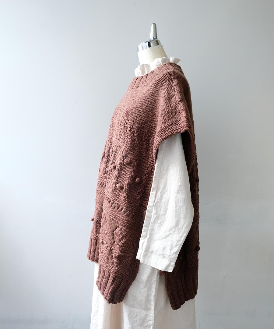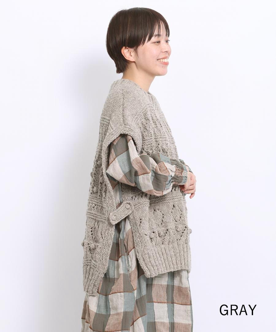 ロービングウール編み地ミックス ビッグベスト