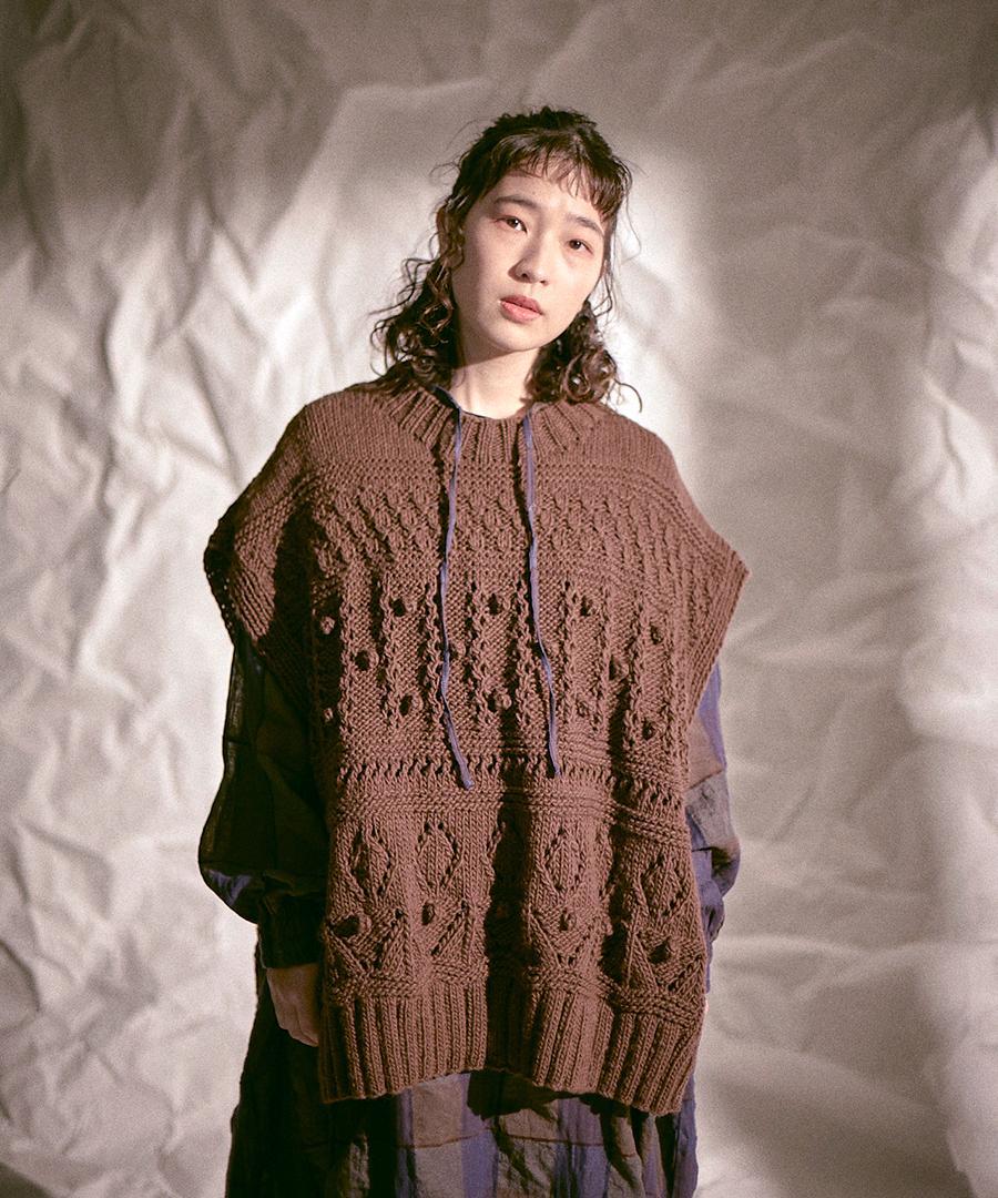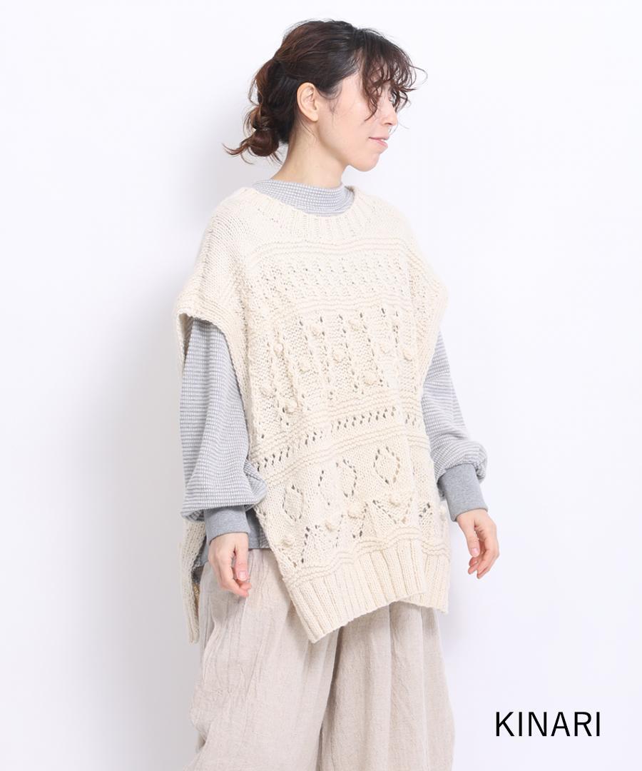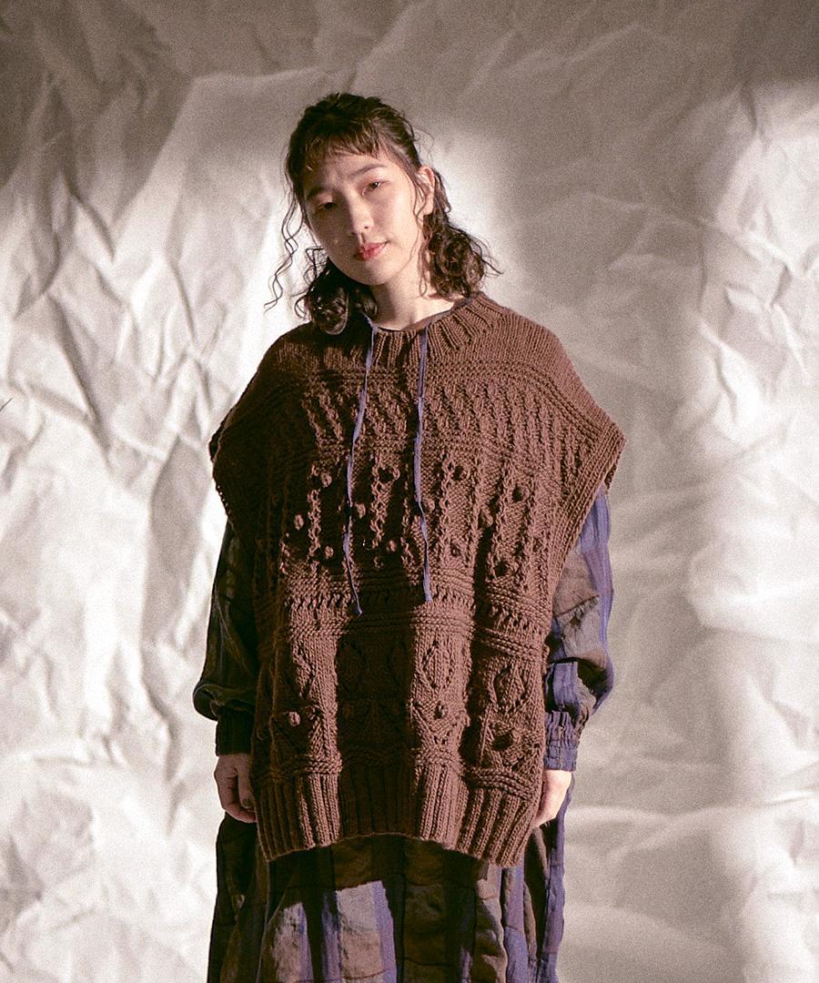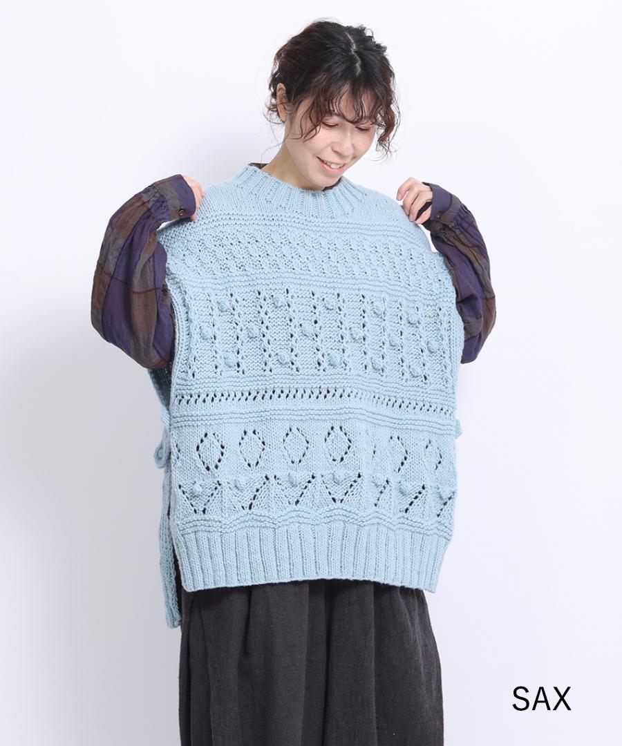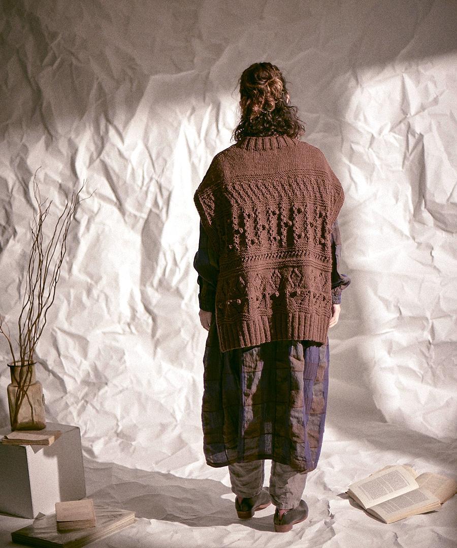 ロービングウール編み地ミックス ビッグベスト