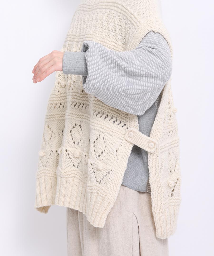 ペルーの羊毛を使用した手紡ぎ糸を、職人さんが一つ一つ手作業で編んだ温かみのあるビッグベスト。