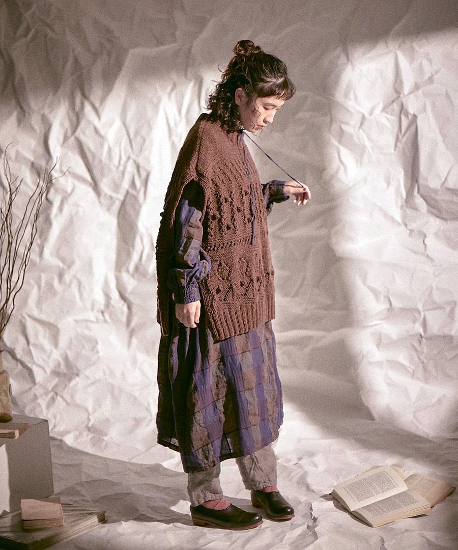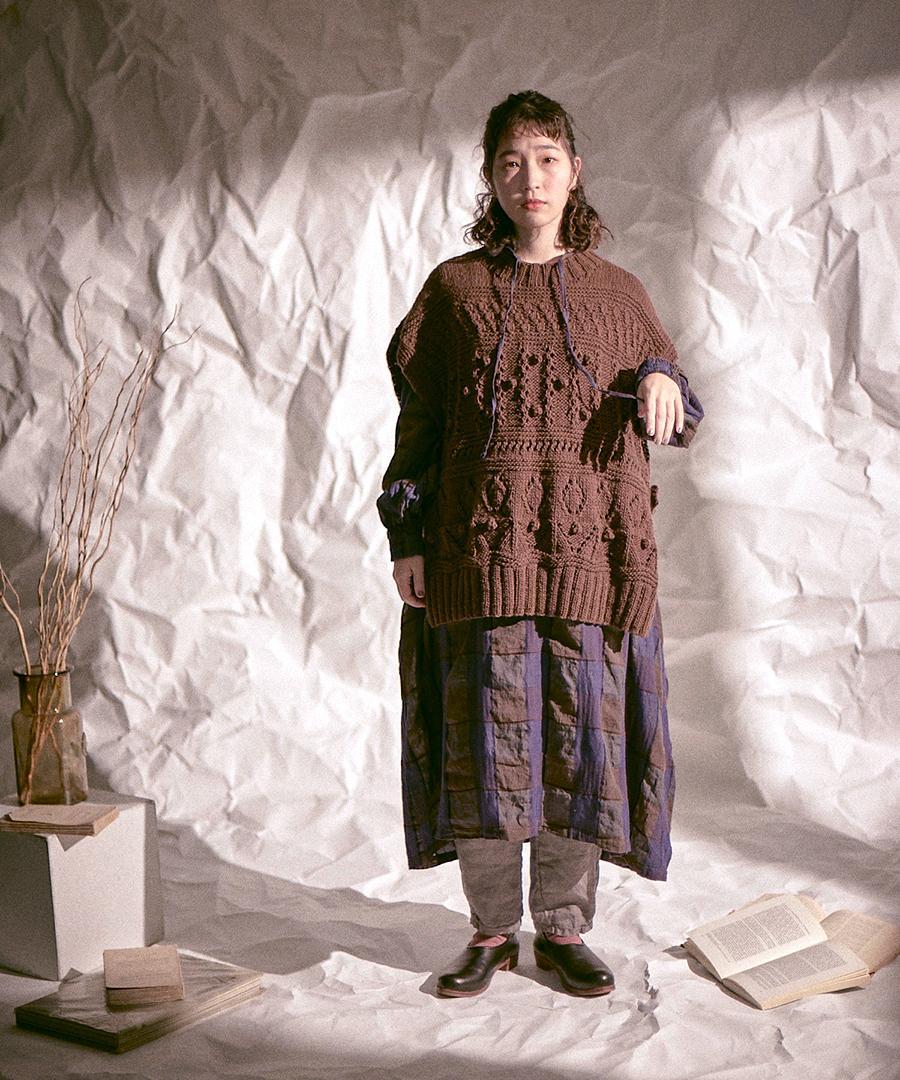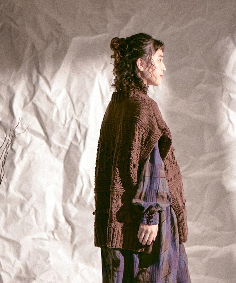 1枚1枚ロービングと呼ばれる手作業で編み上げた、表情豊かなハンドニットです。