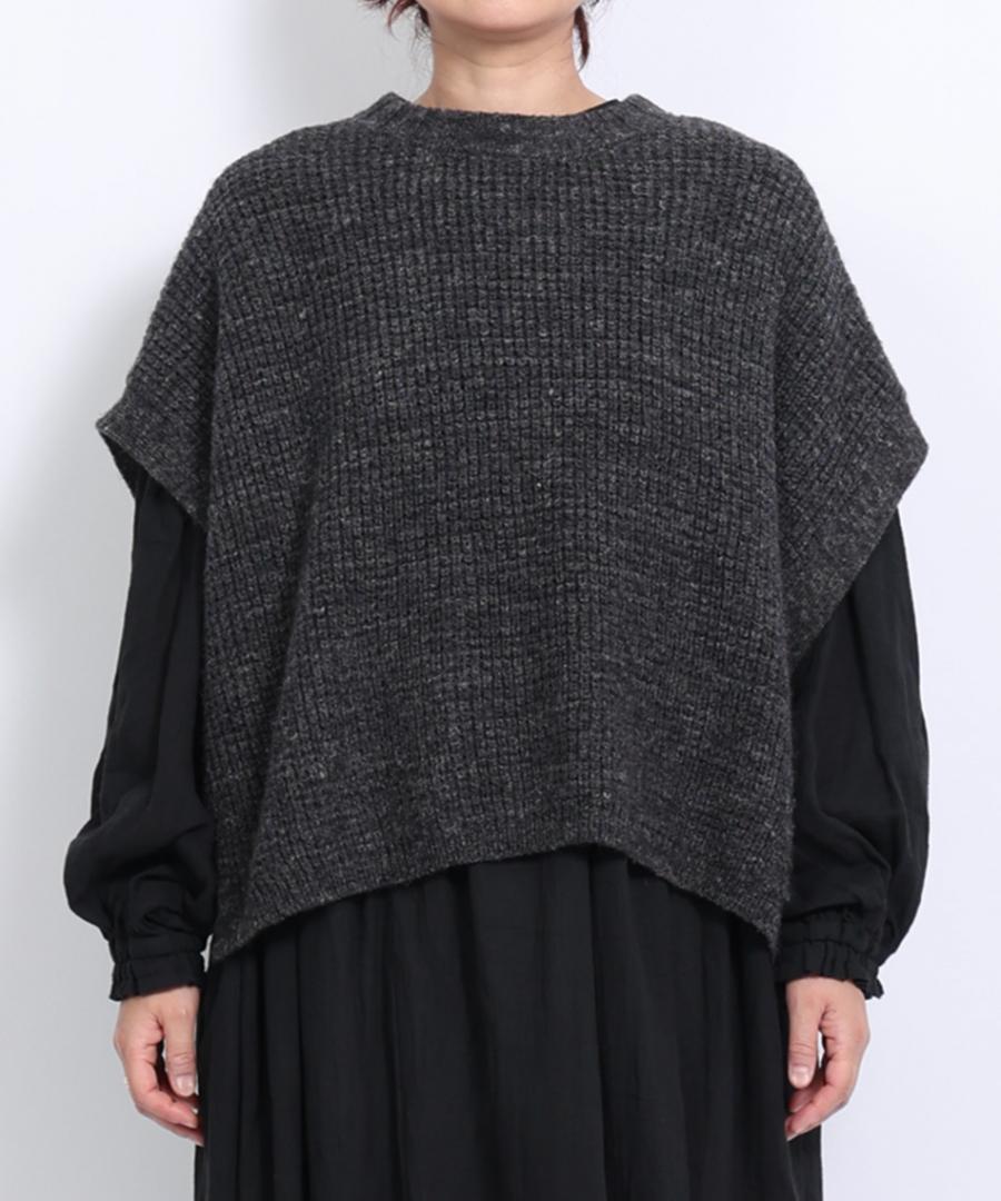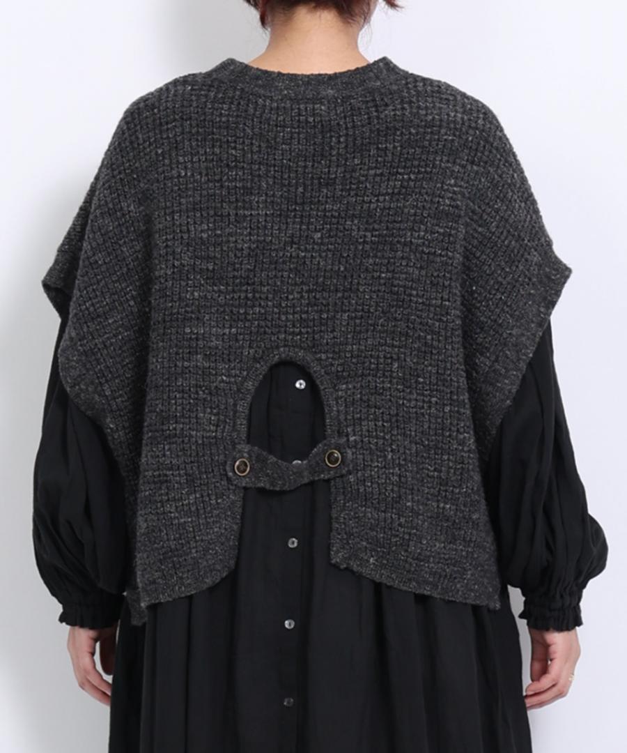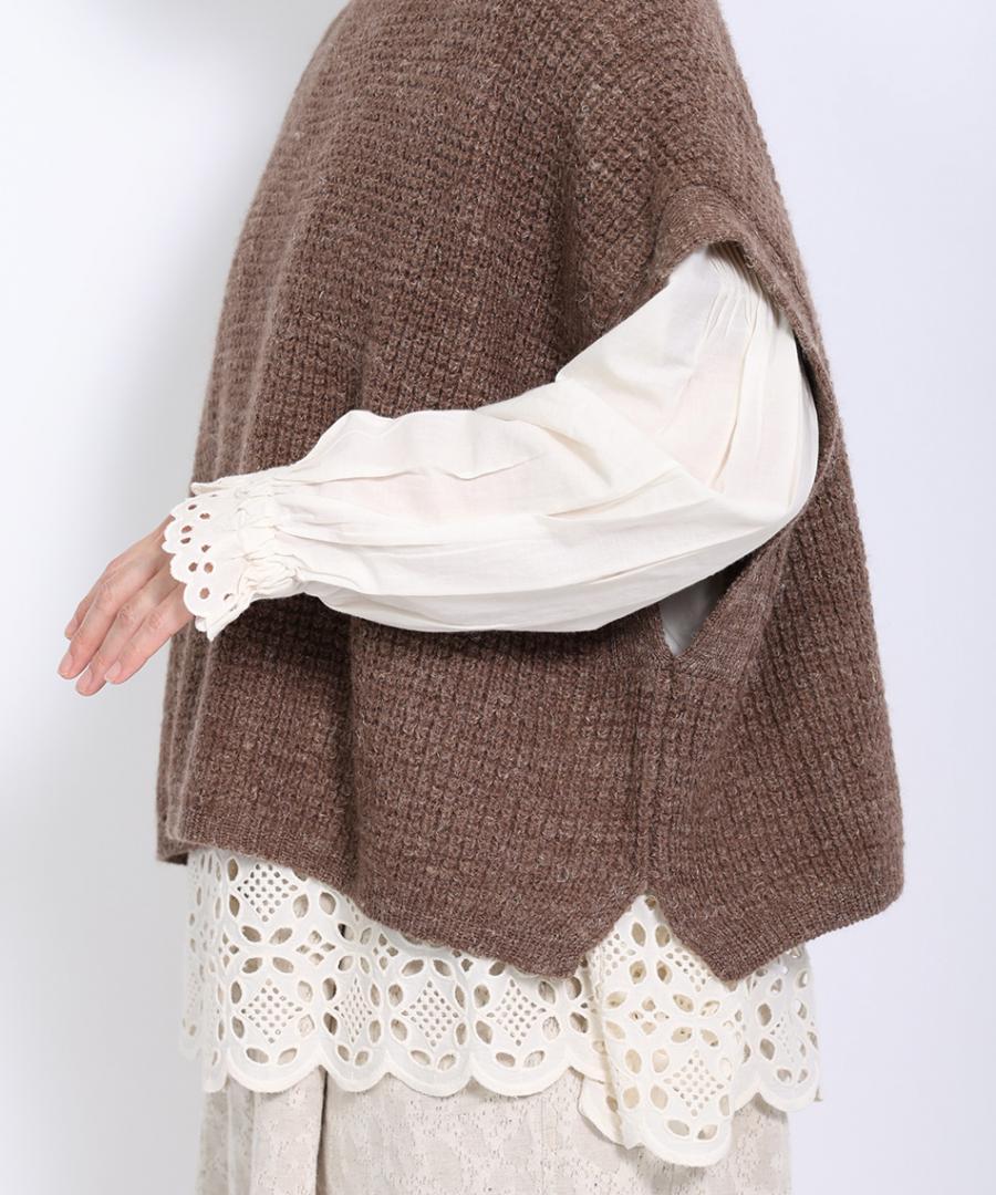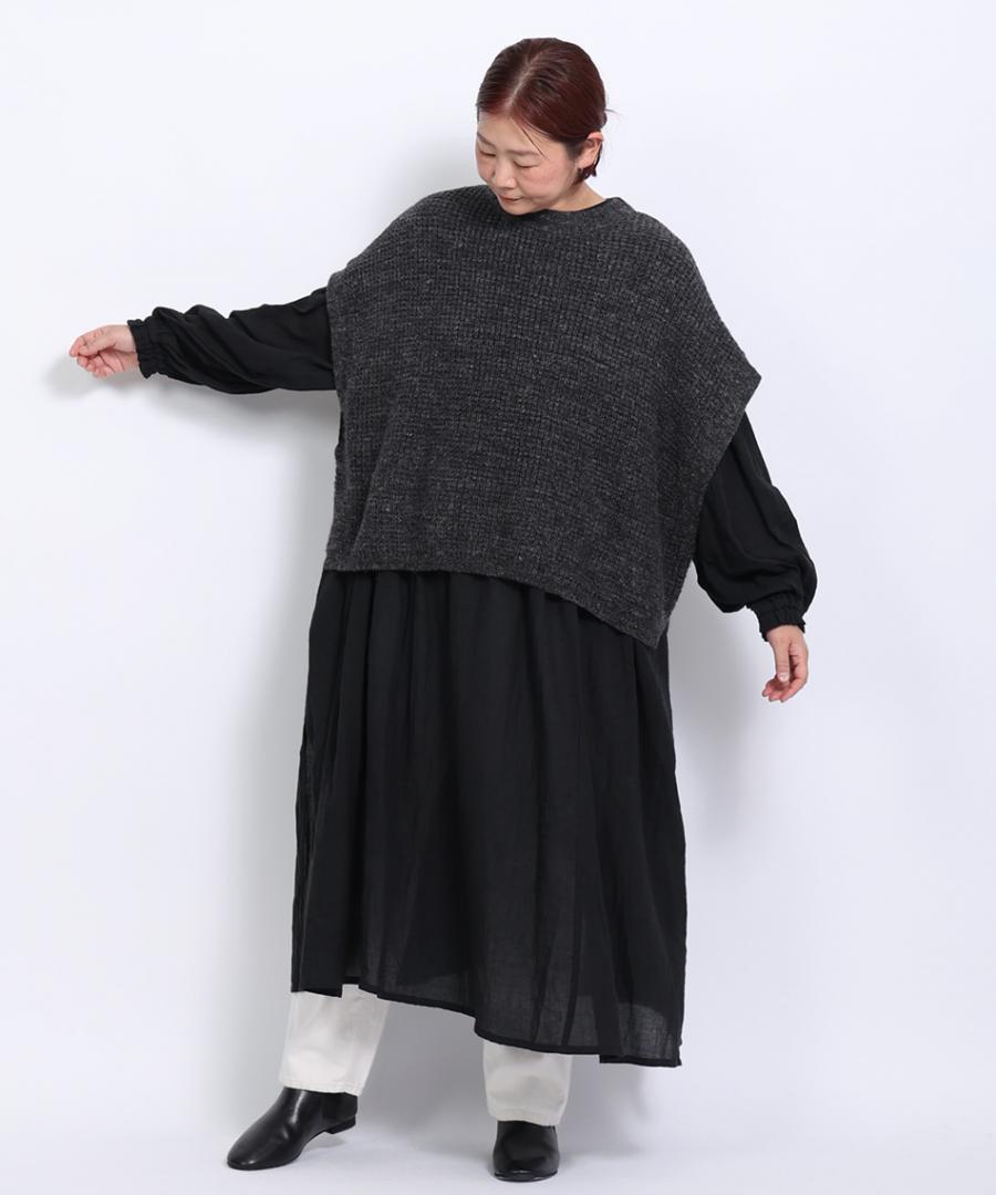 脇は大きく開いたデザインなので、ボリューム袖のトップスやワンピースの上にも重ねやすいです。