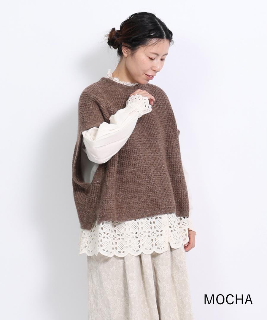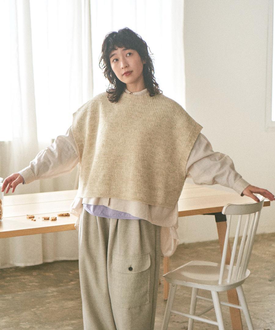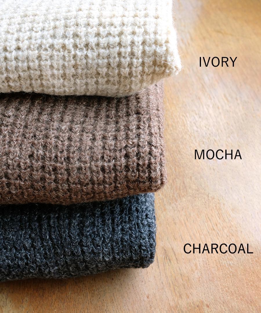 5ゲージのワッフル編みにより、立体的な質感でさりげなくコーディネートにアクセント加えてくれます。