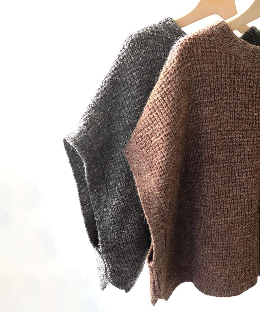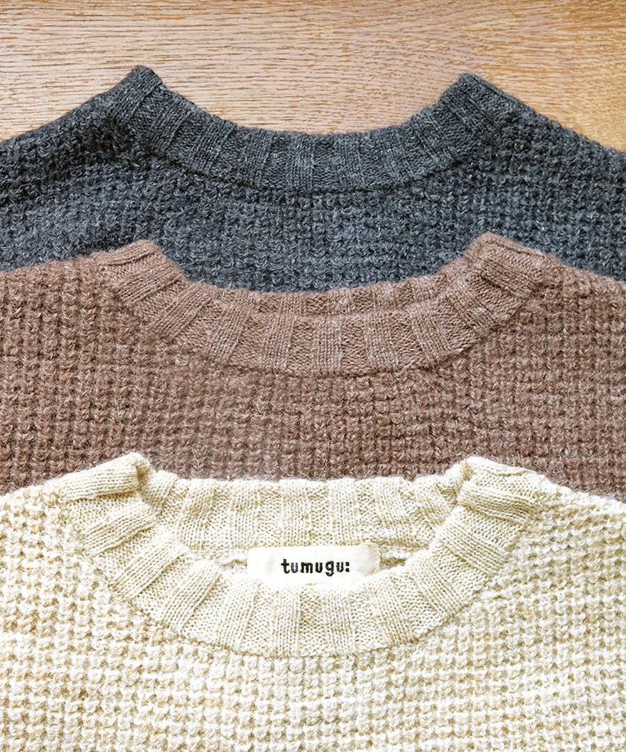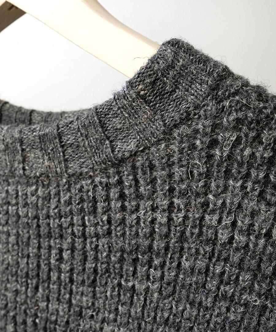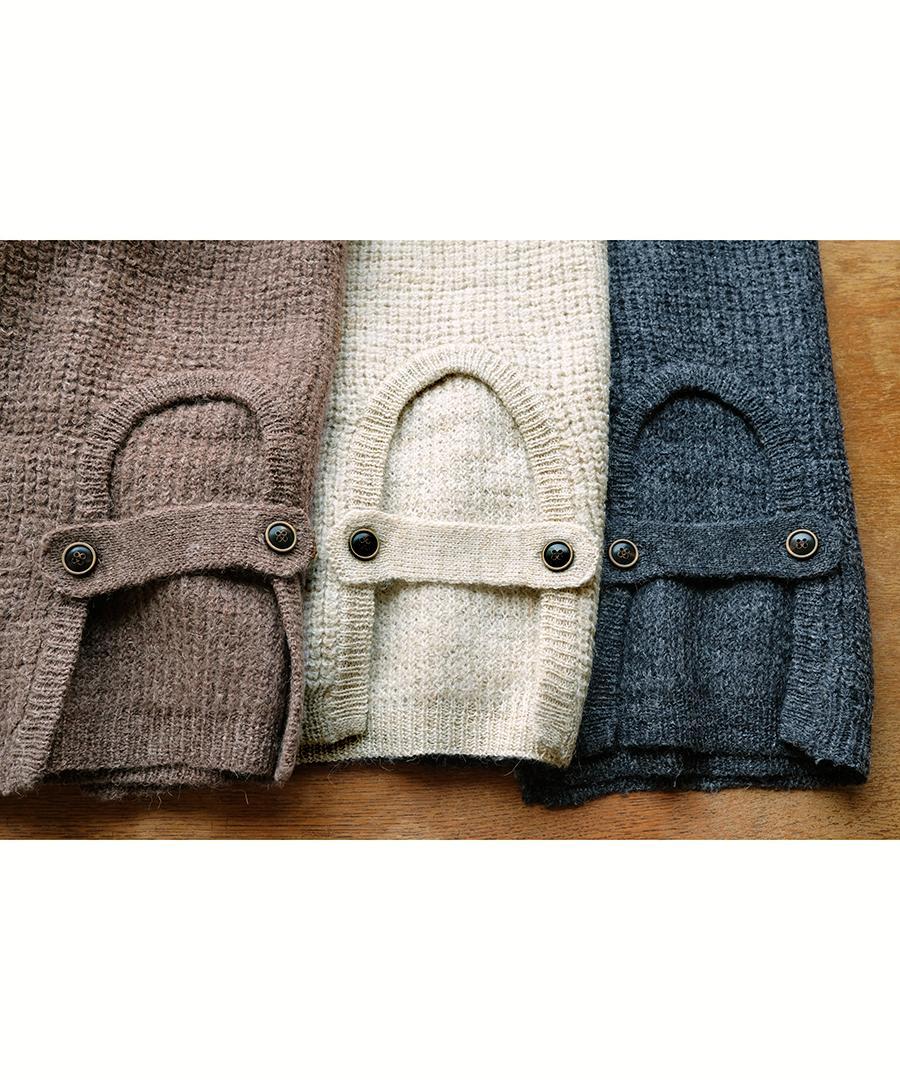 ウールに保温性が高いアルパカウールをミックスし、リネン特有の自然な粗野感を組み合わせたニットです。