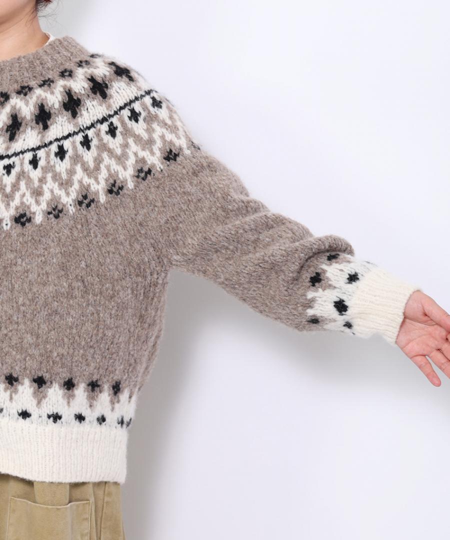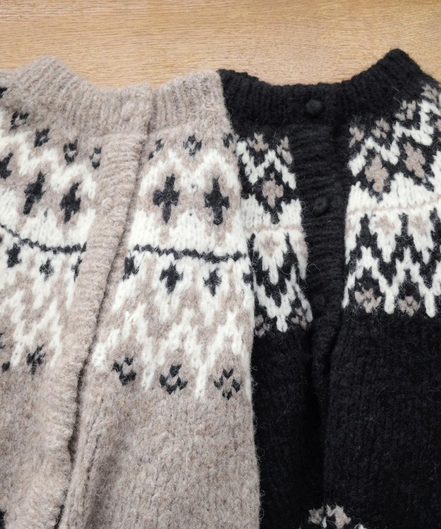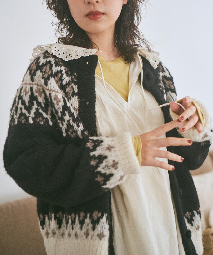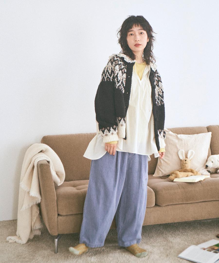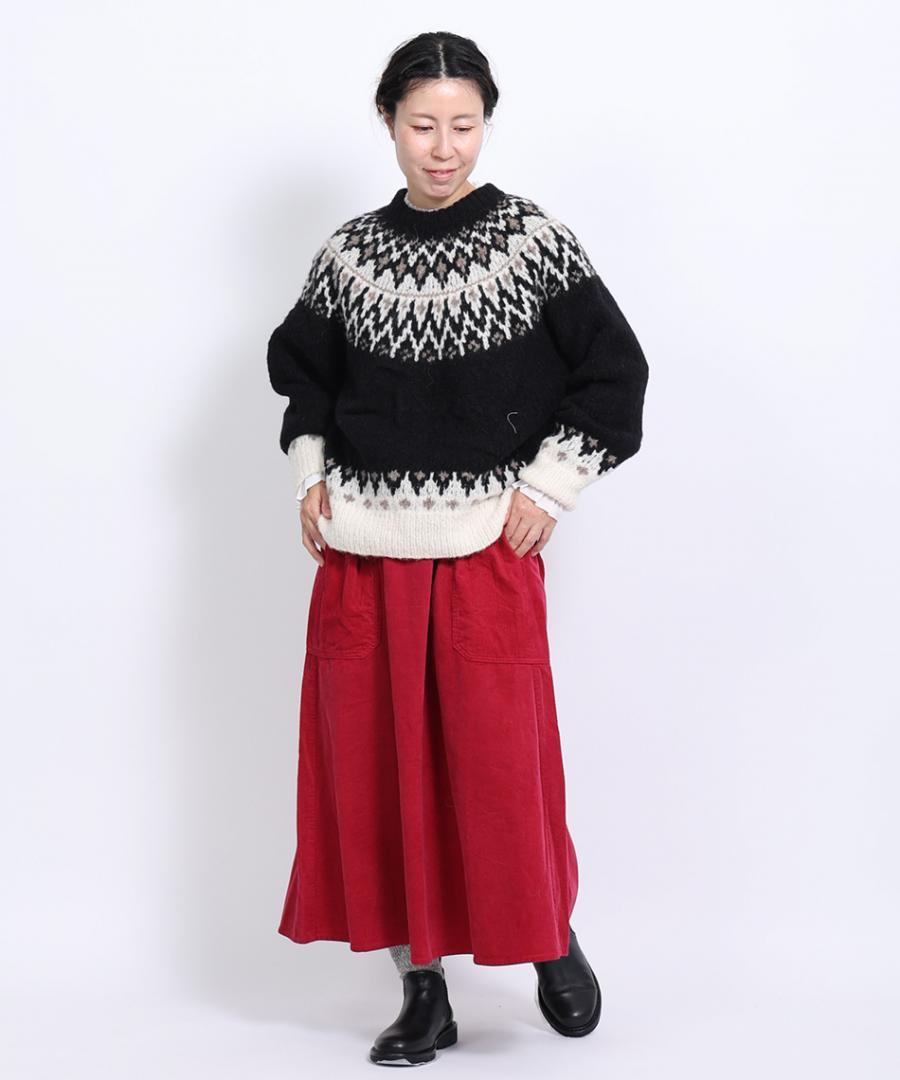 温かみのあるノルディックジャガード柄がシンプルになりがちなコーデに華やかさを与えてくれます。