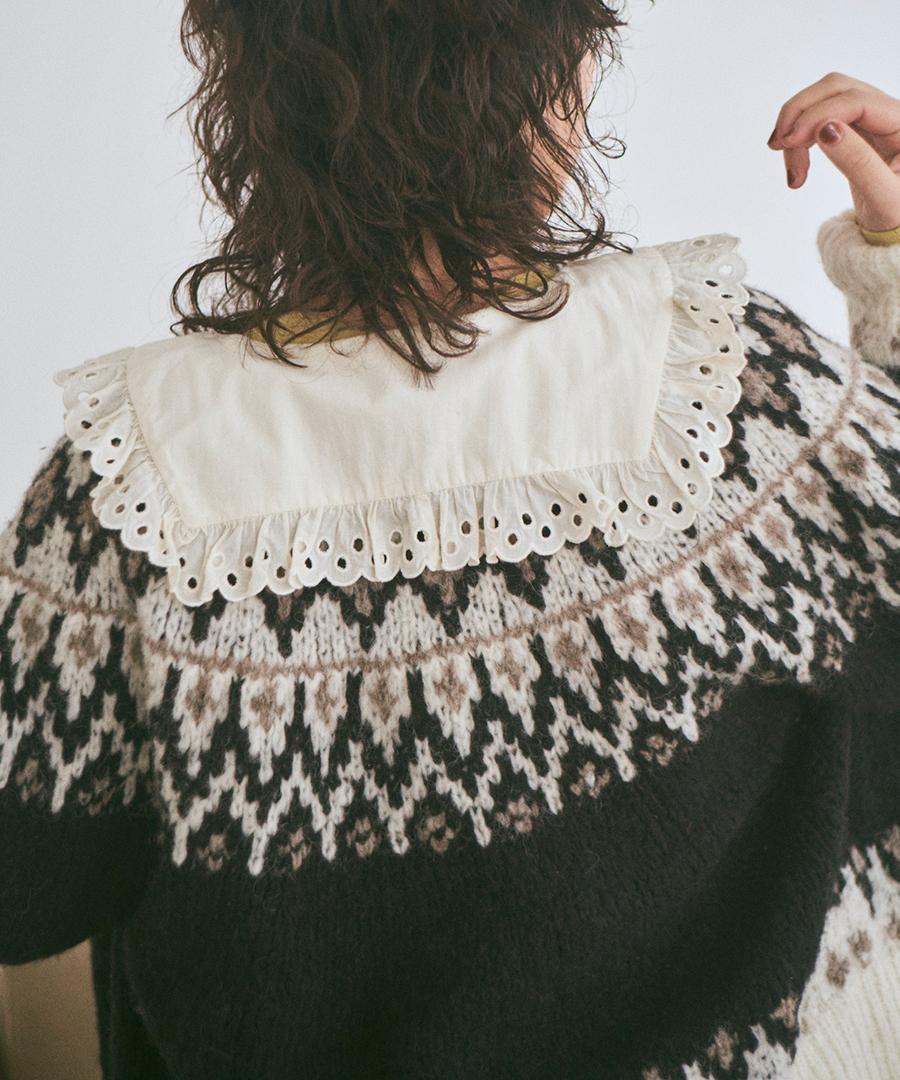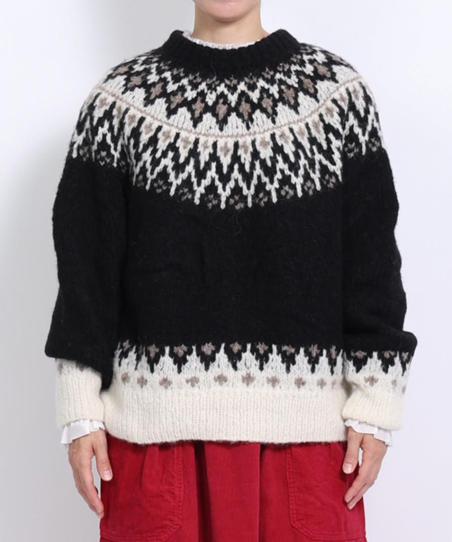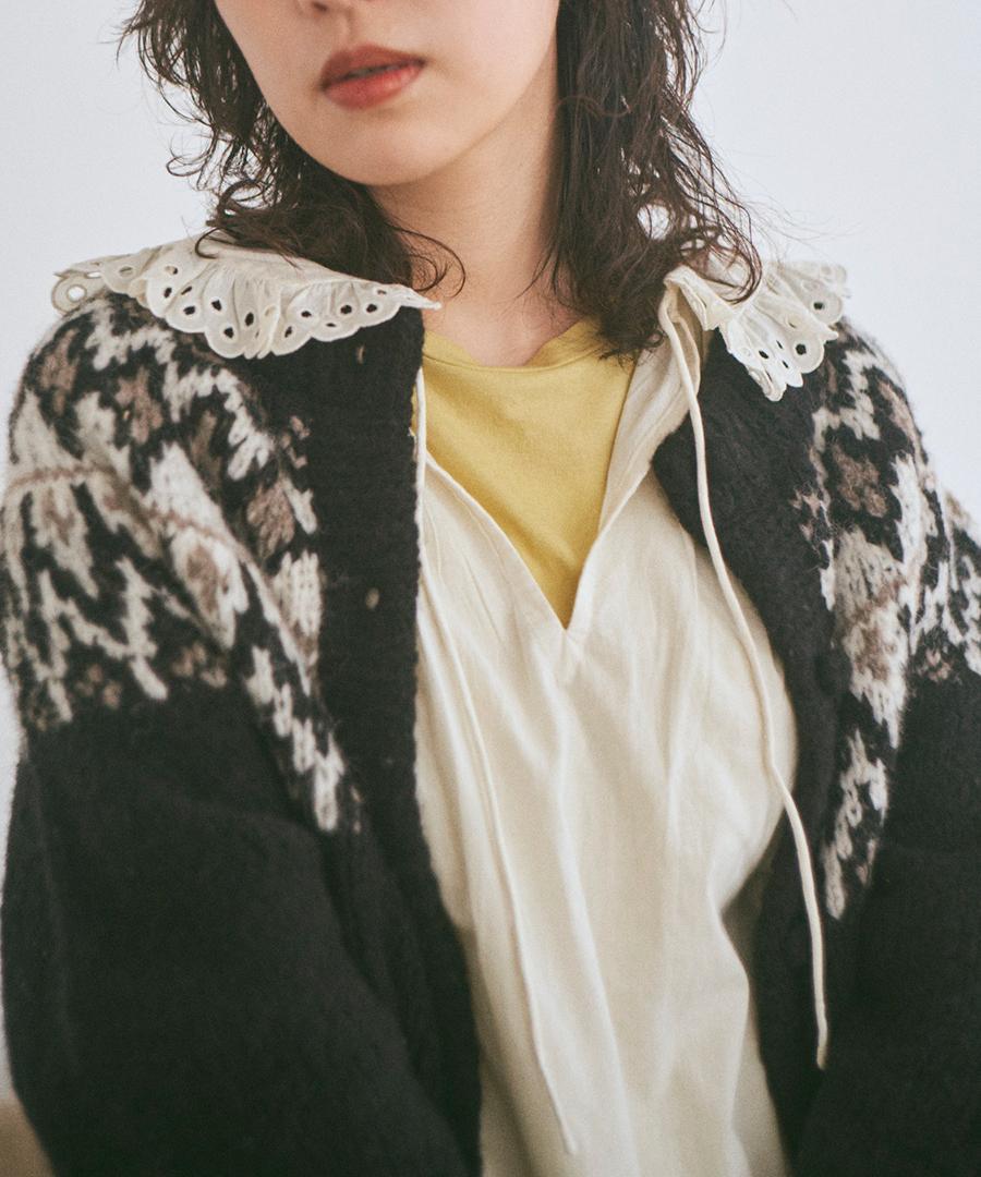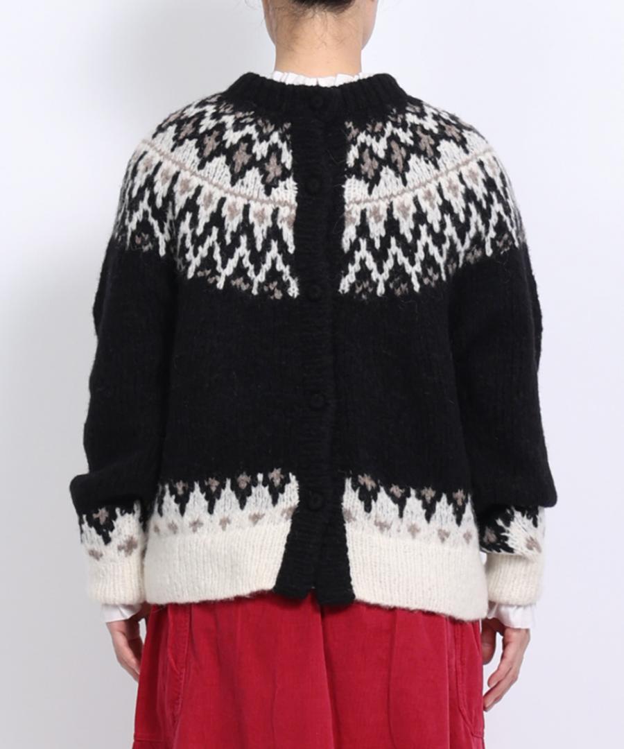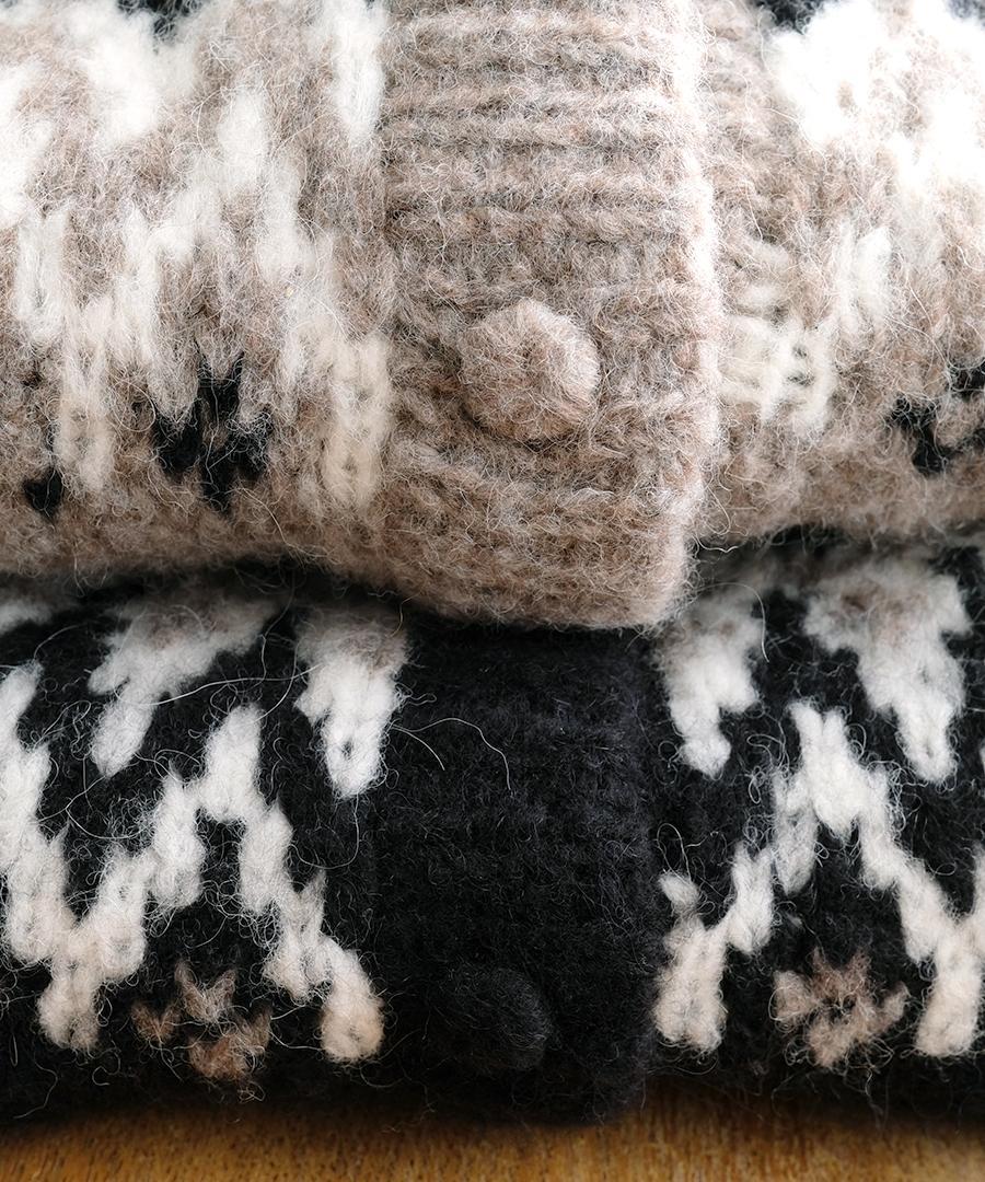 温かみのあるノルディックジャガード柄がシンプルになりがちなコーデに華やかさを与えてくれます。