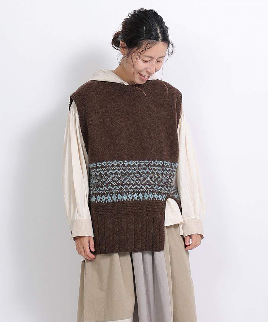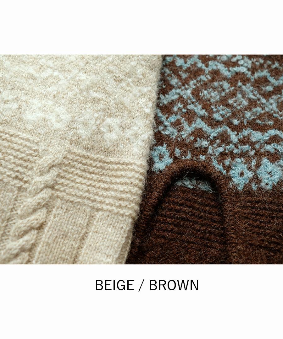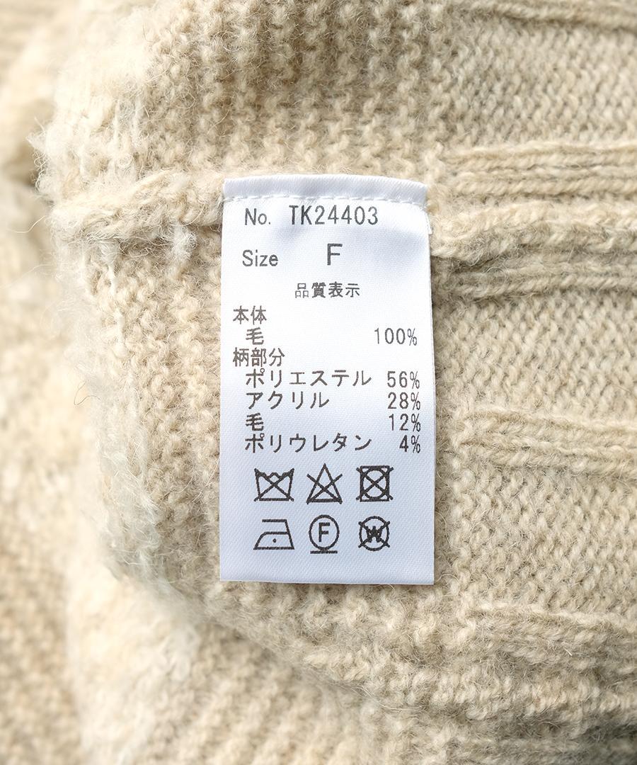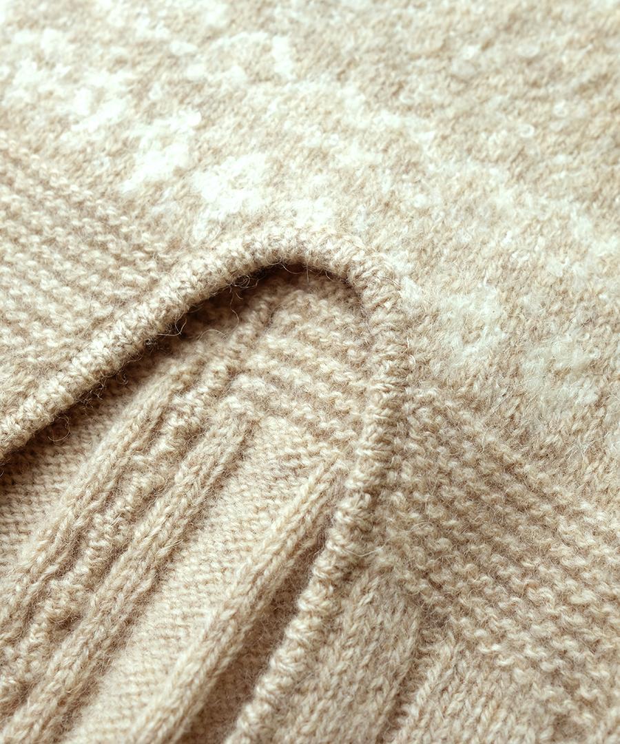 ふっくらとしたウールの糸をベースに柄部分をループ糸で表現した立体感のあるジャガード編みです。