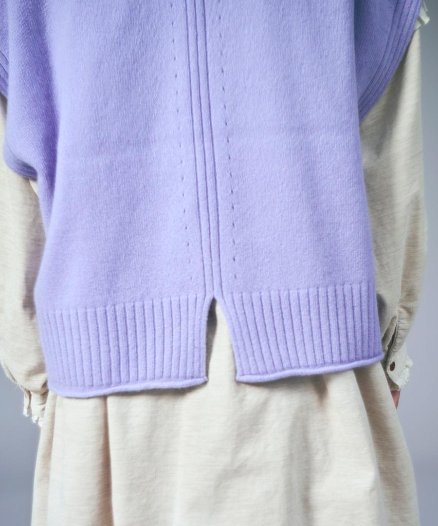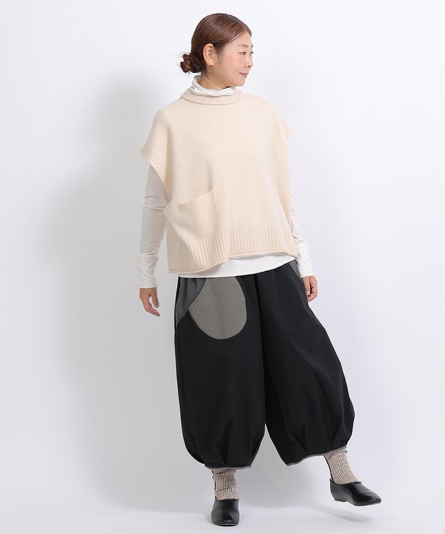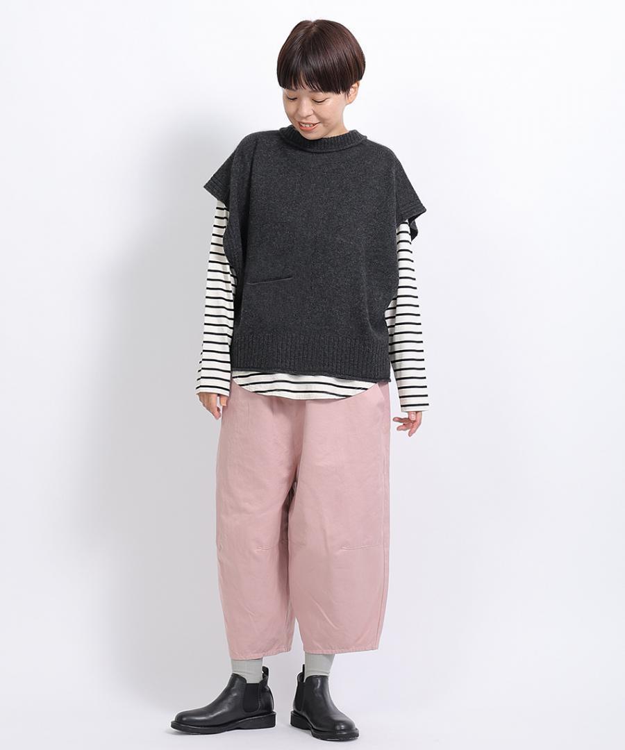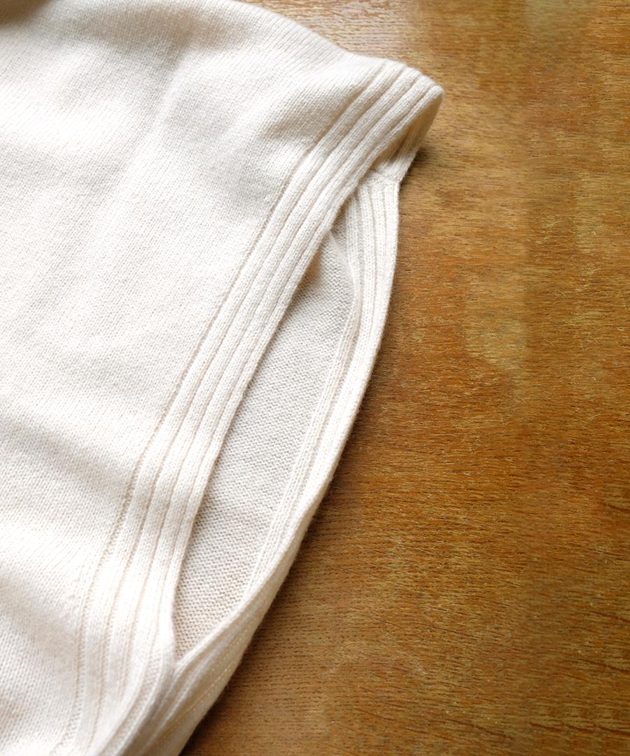 大きめのアームホールなのでボリュームのあるトップスにも合わせやすいデザインです。