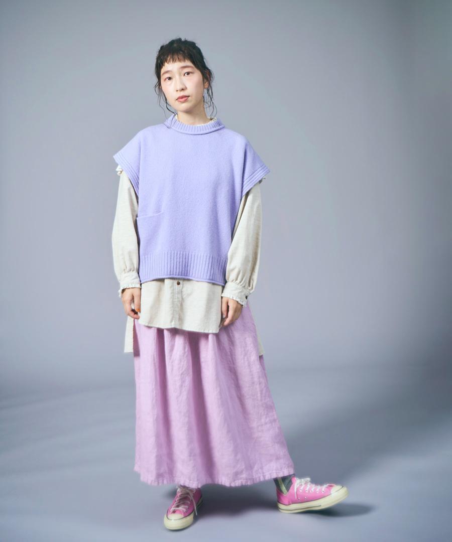 ウール100%なのでとても暖かく、優しい色合いがコーデに温かみを加えてくれますよ。