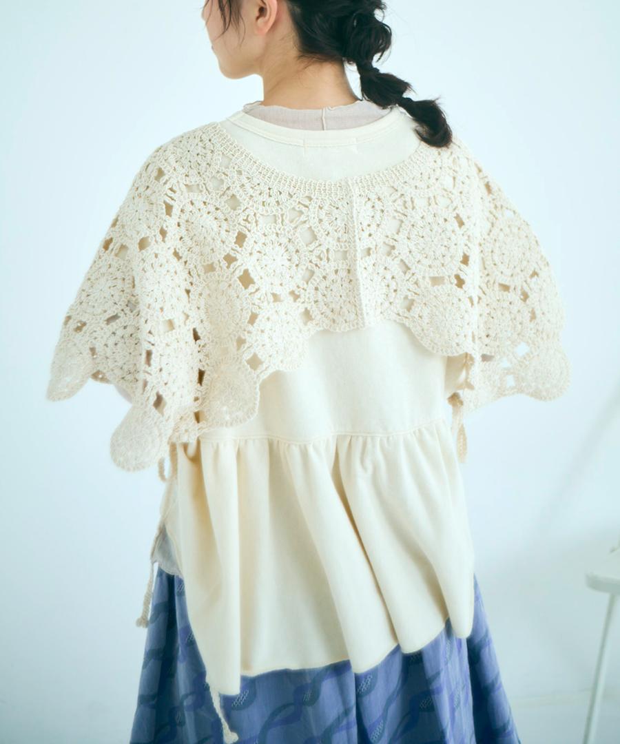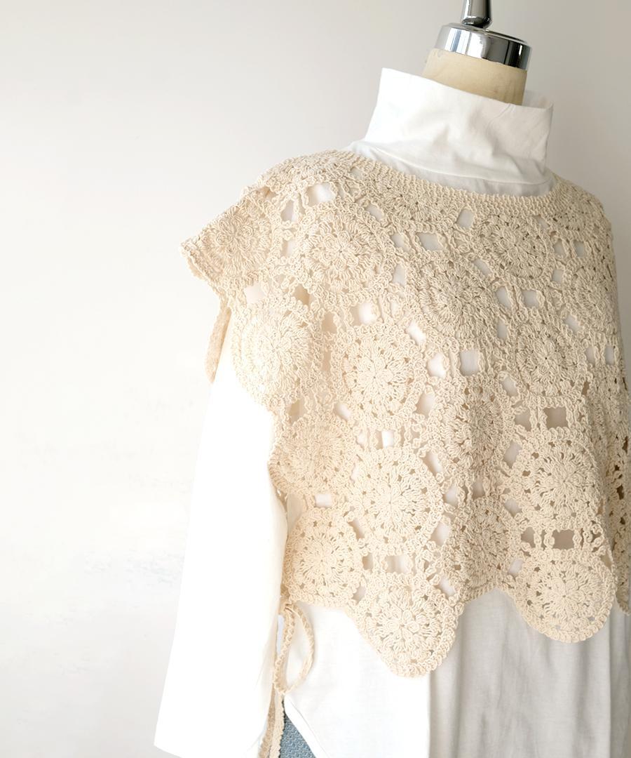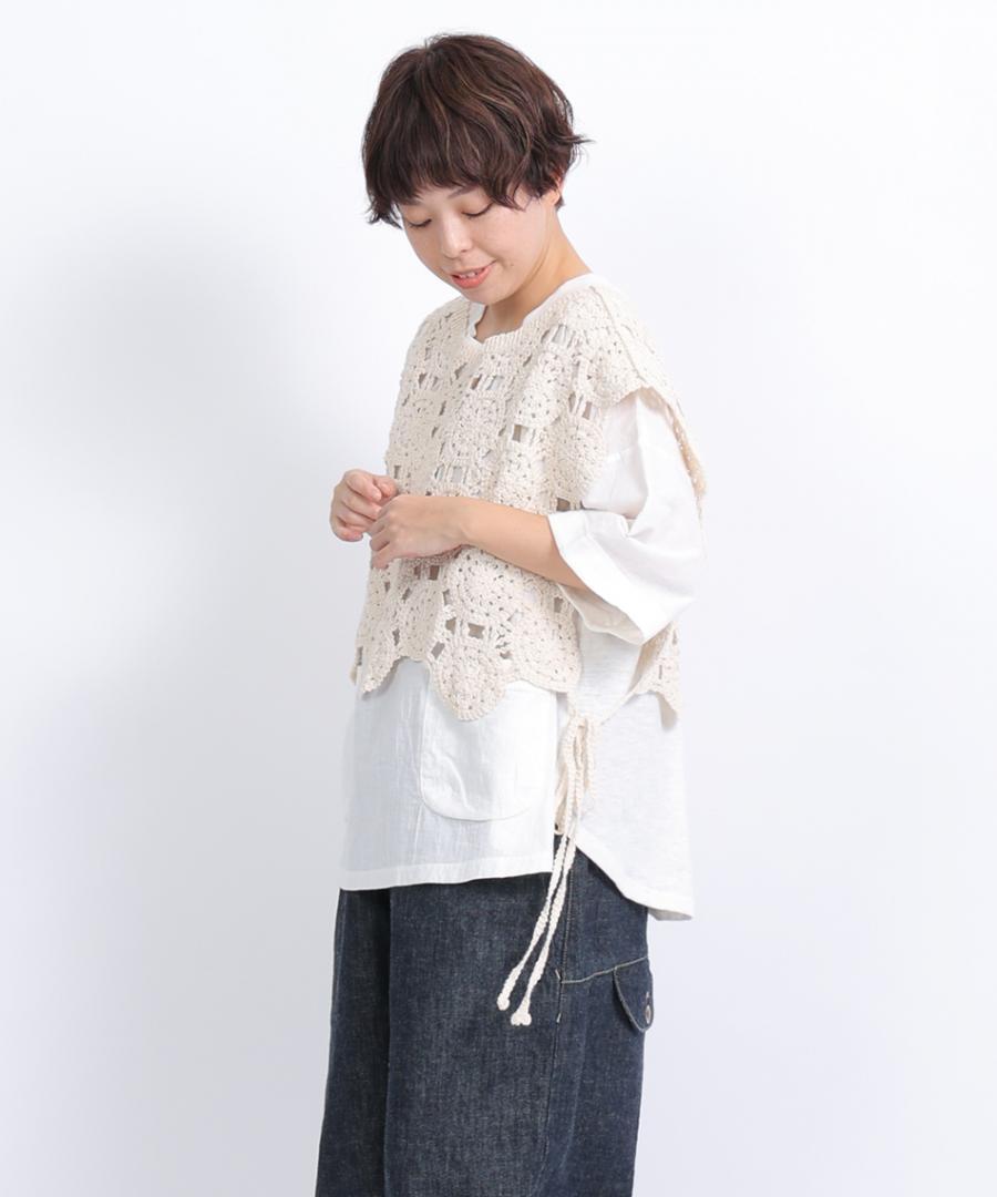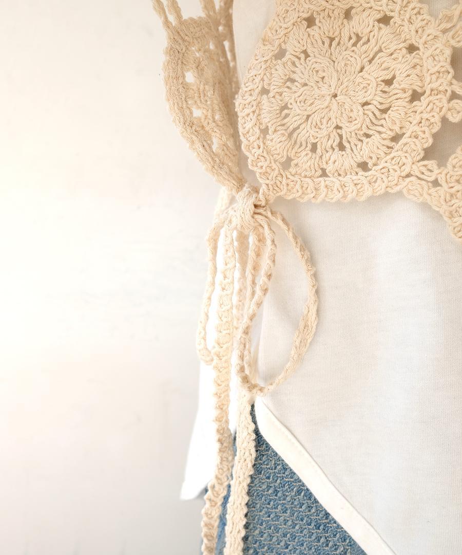 太番手の綿糸が織りなすオリジナルレース柄がアンティークな雰囲気たっぷりの2wayベスト。