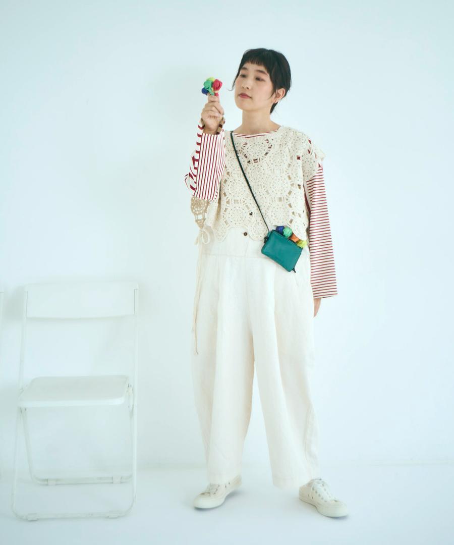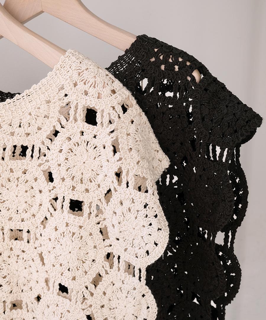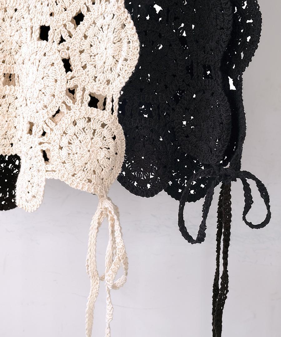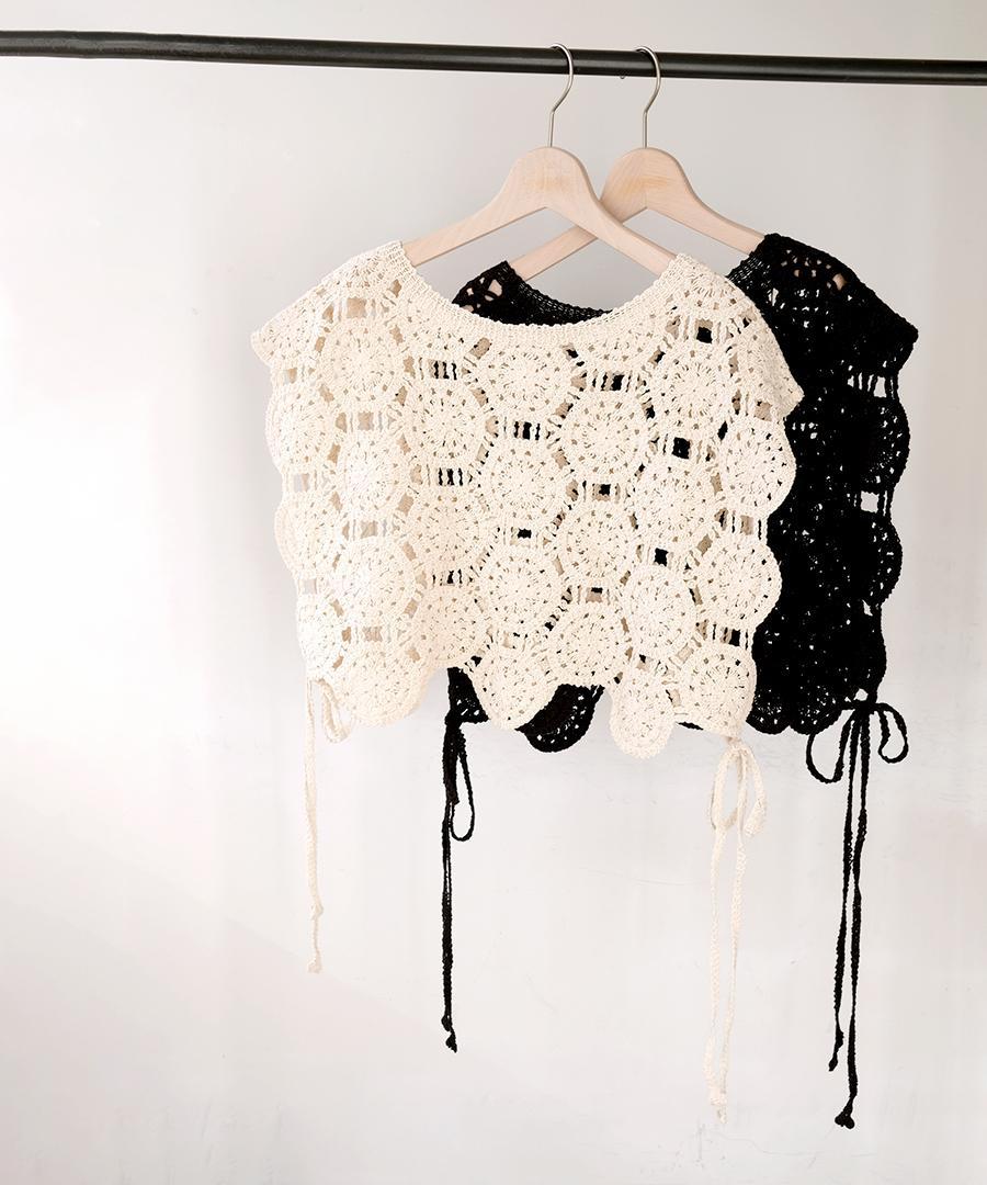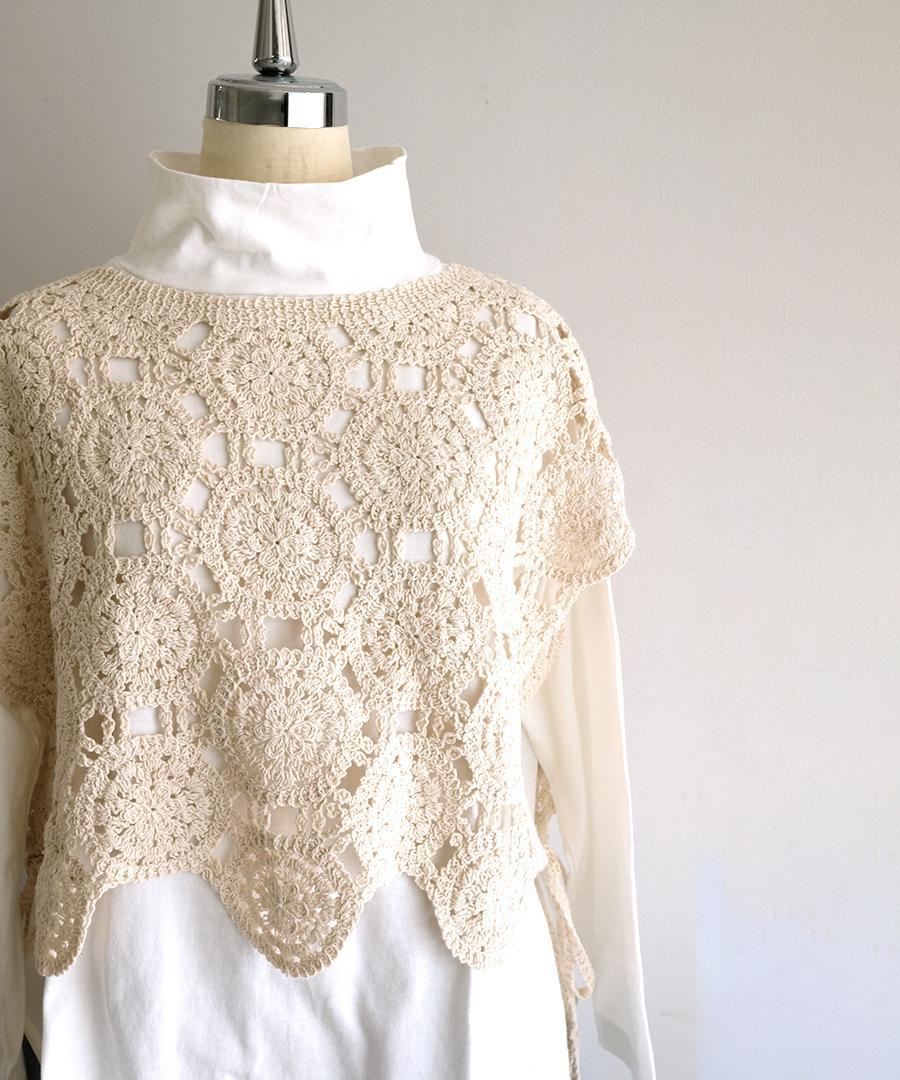 太番手の綿糸が織りなすオリジナルレース柄がアンティークな雰囲気たっぷりの2wayベスト。