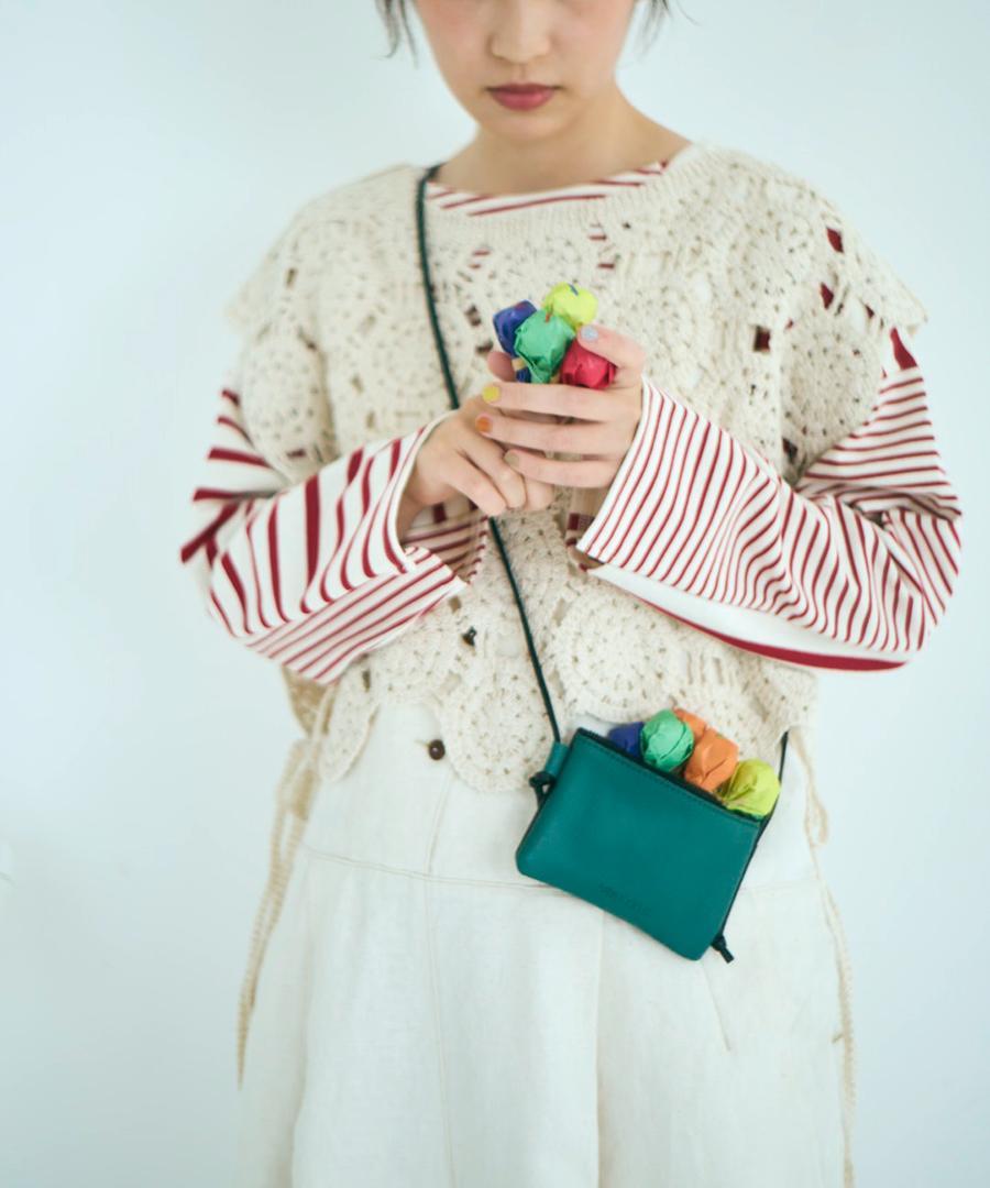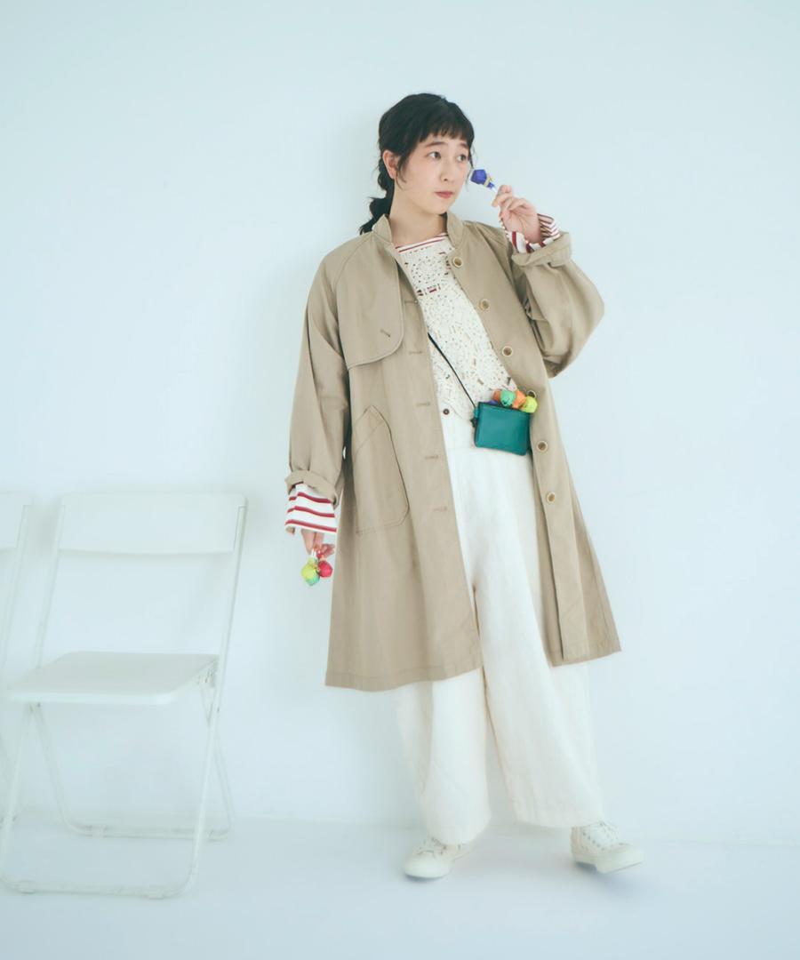 脇が大きく開いたデザインなので、ボリュームワンピースなどの上にも重ねていただけます。