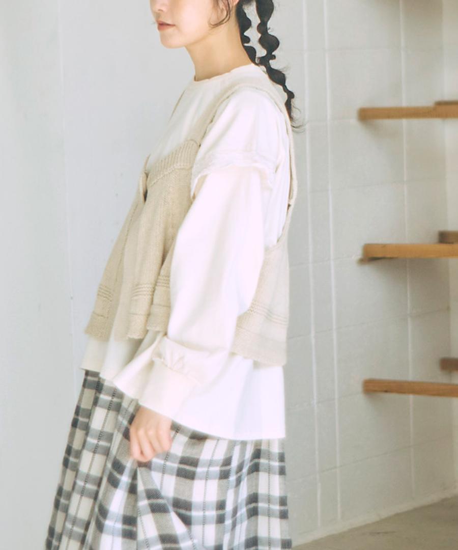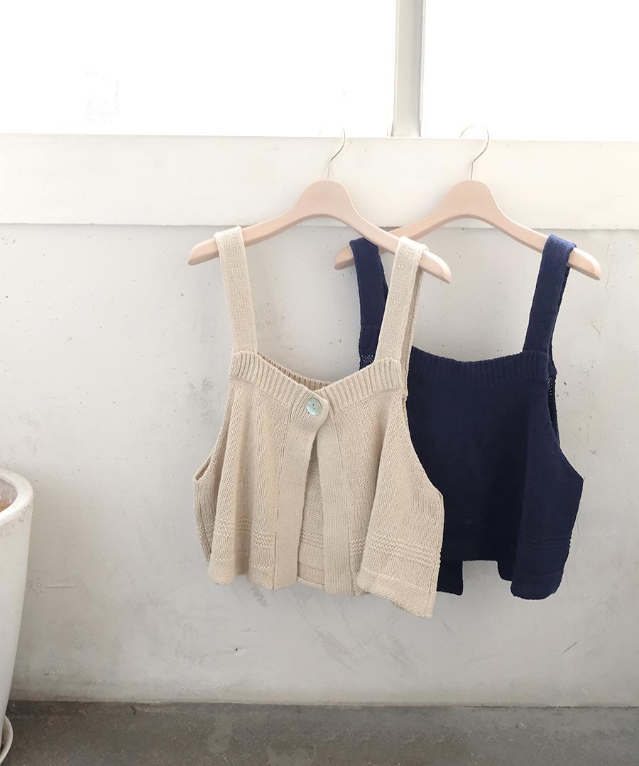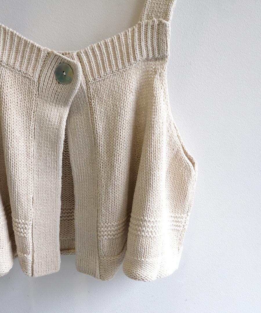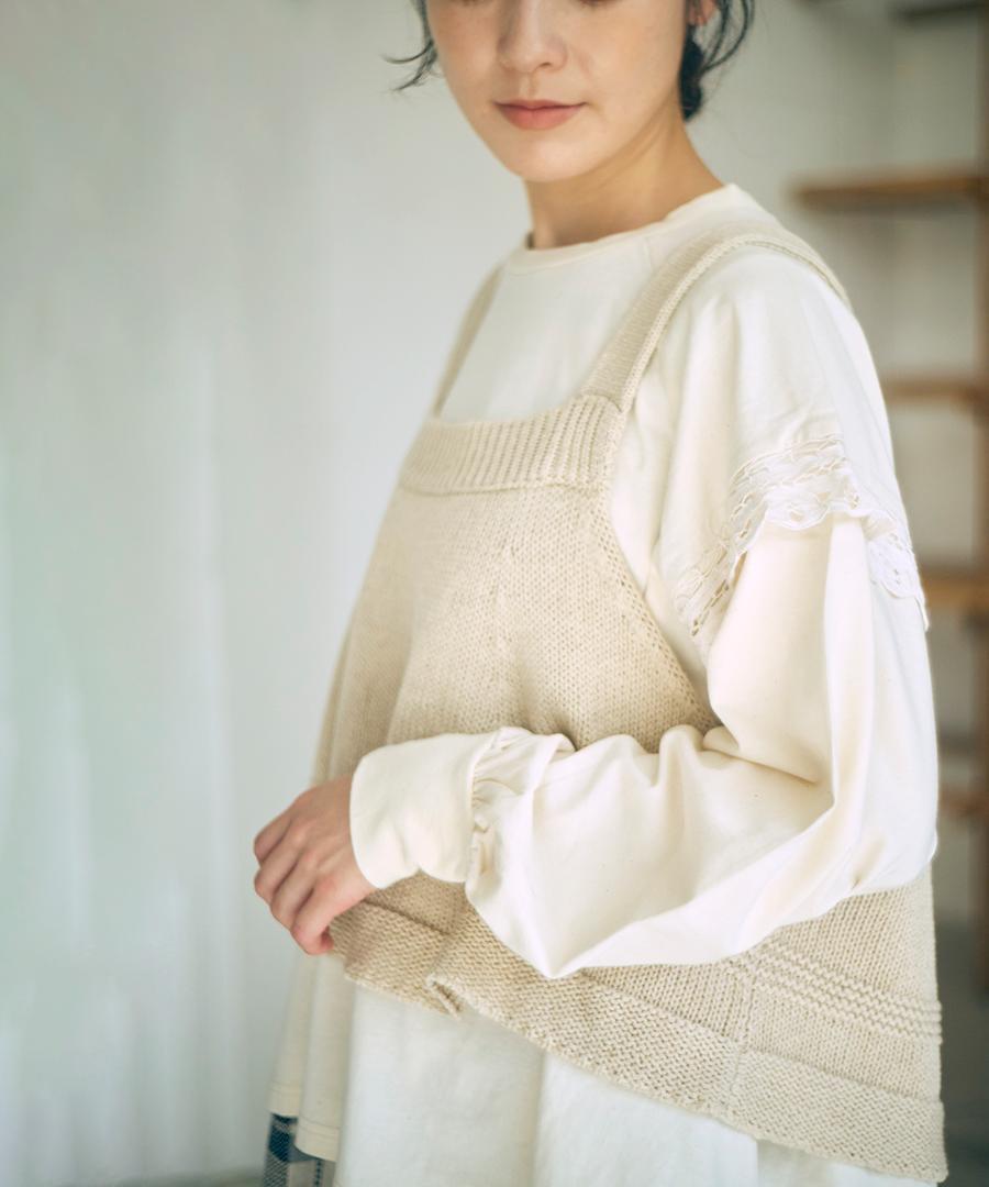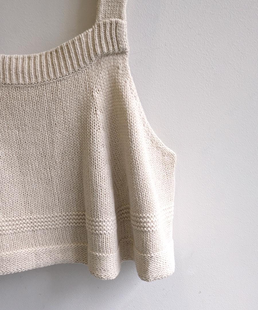 柔らかく優しい肌触りのリリヤーン糸を使用して編み上げた、軽やかで心地よいニット素材のビスチェ。