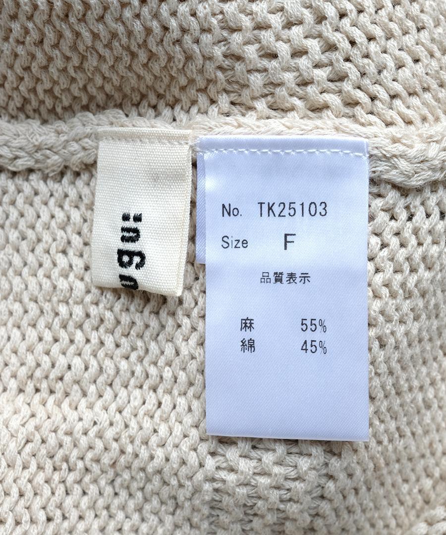 綿麻のリリヤーン糸を3ゲージでざっくり編んだ涼し気な表情が特徴です。