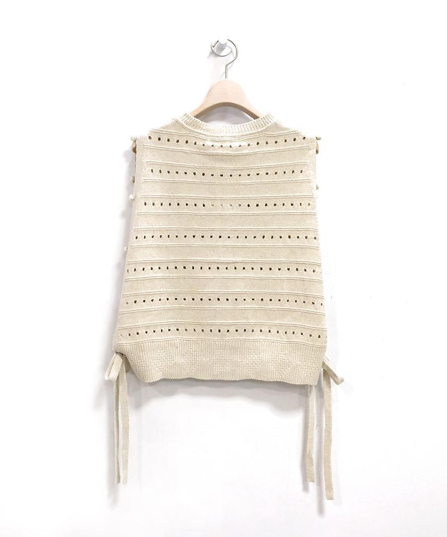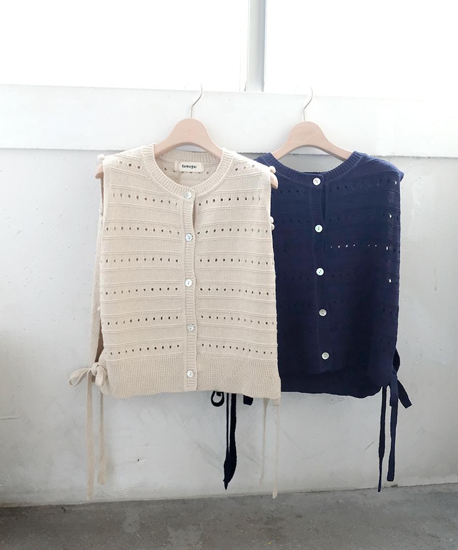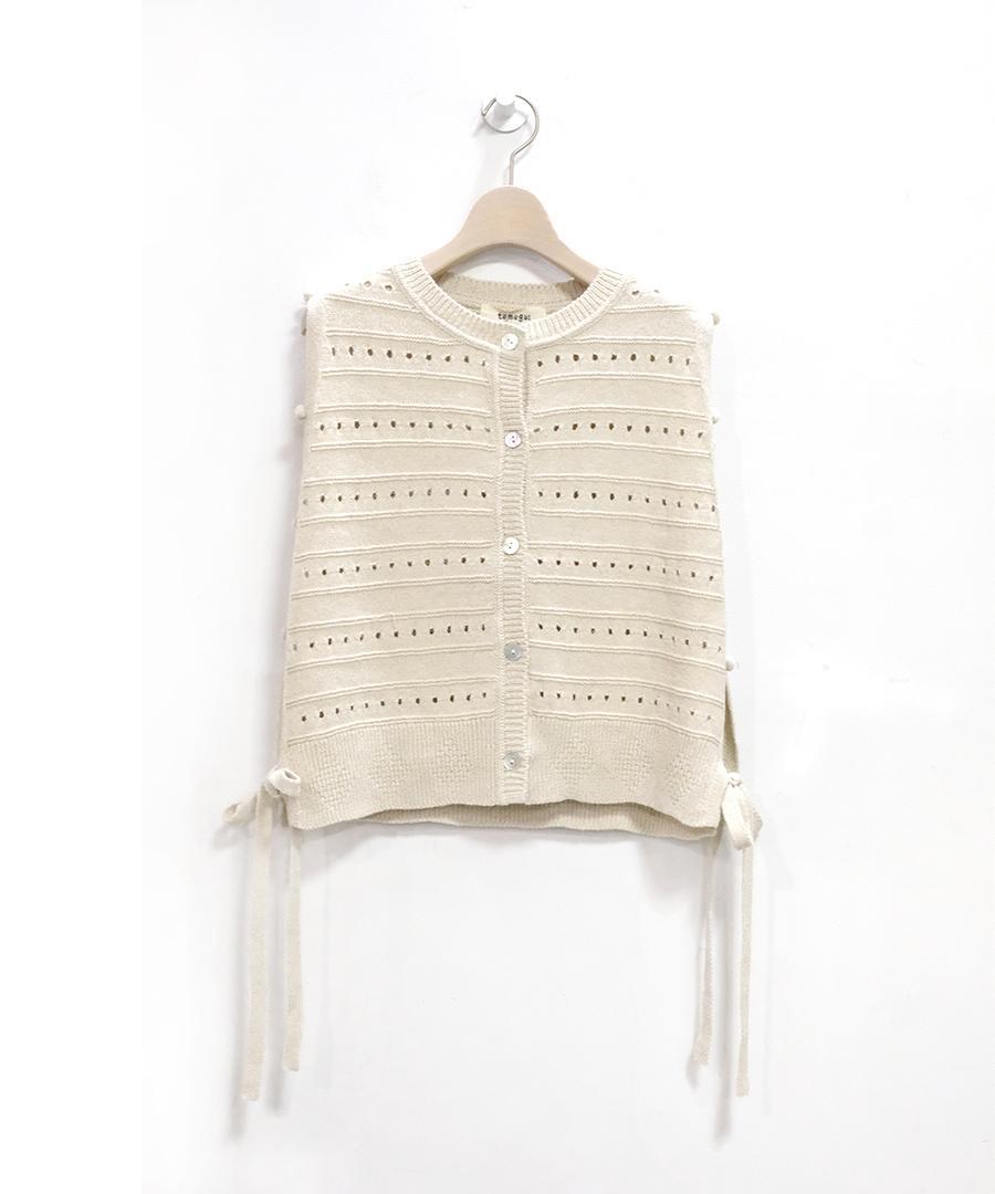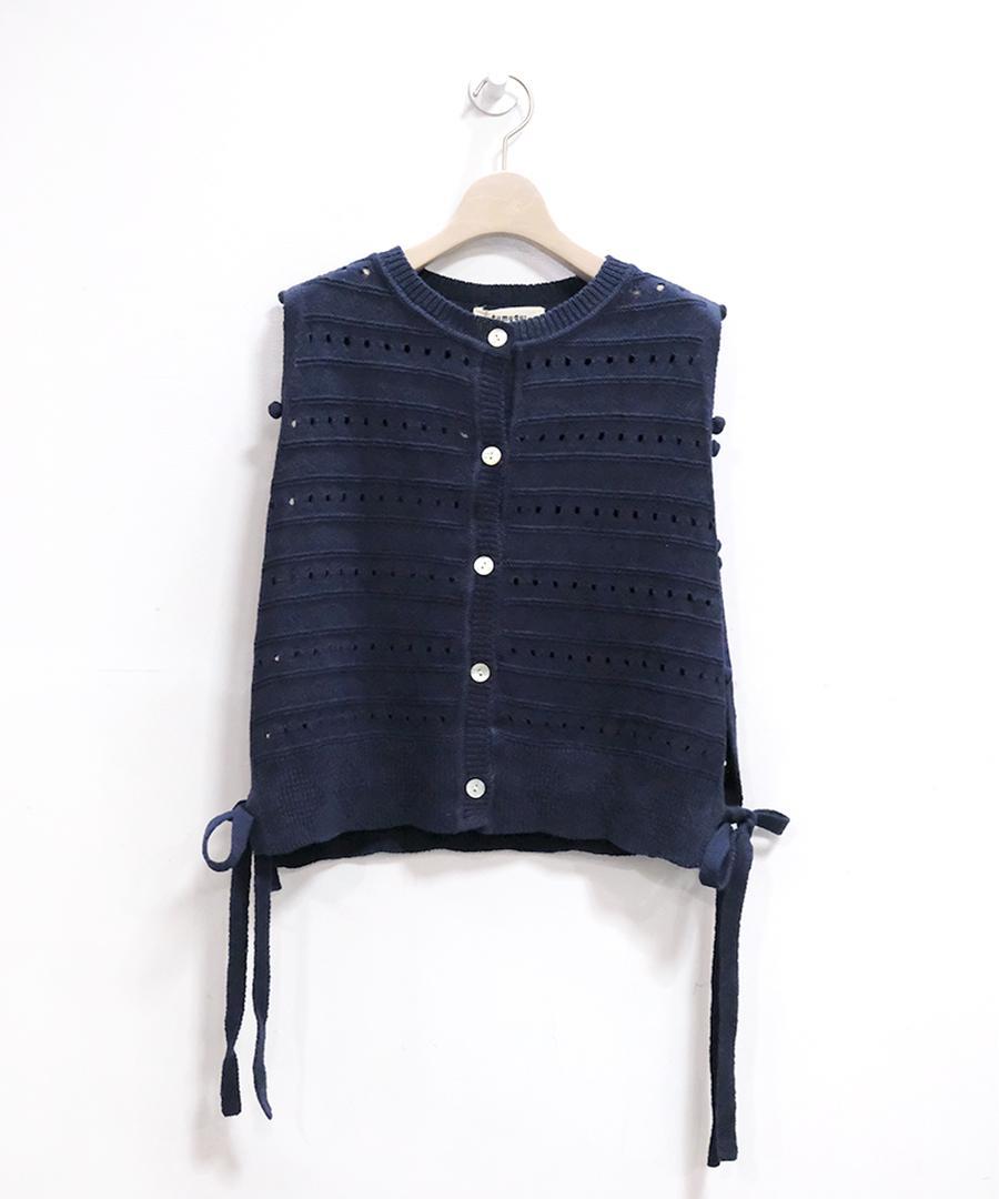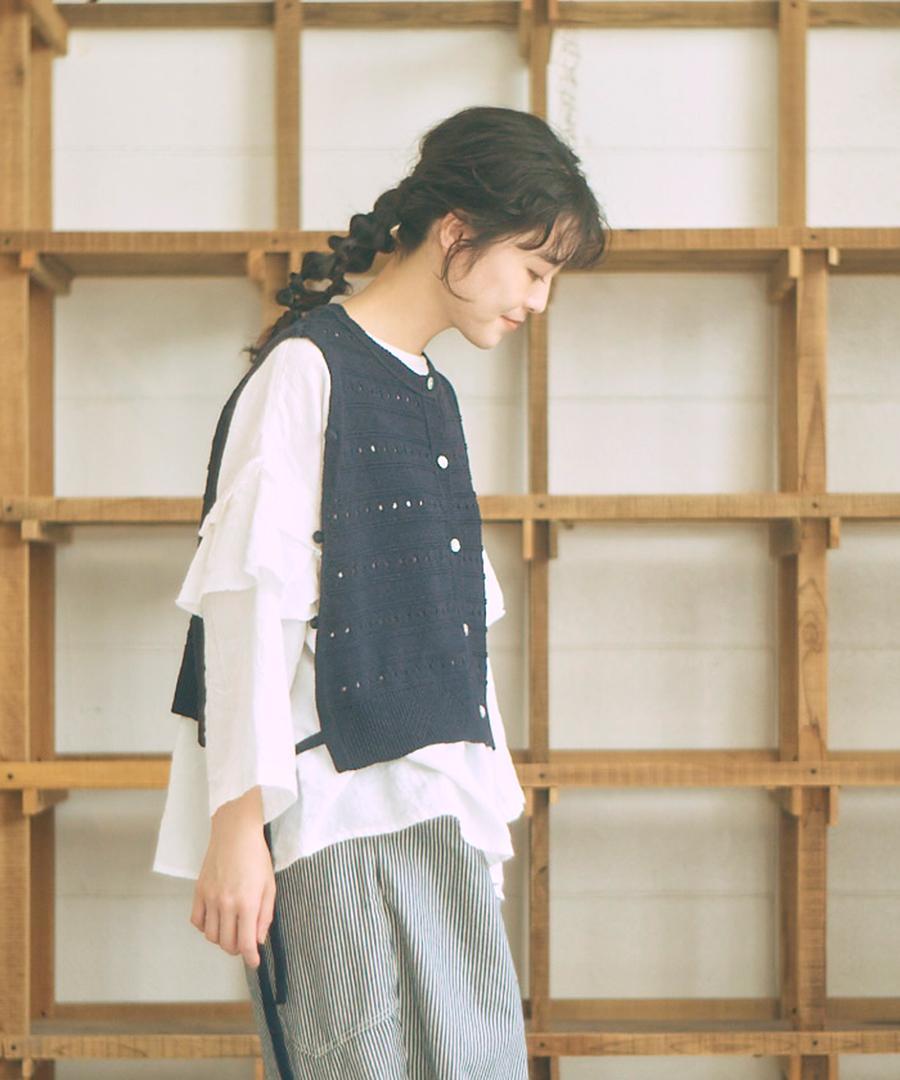 柔らかく優しい肌触りのリリヤーン糸を使用して編み上げた、軽やかで心地よいニット素材のベスト。