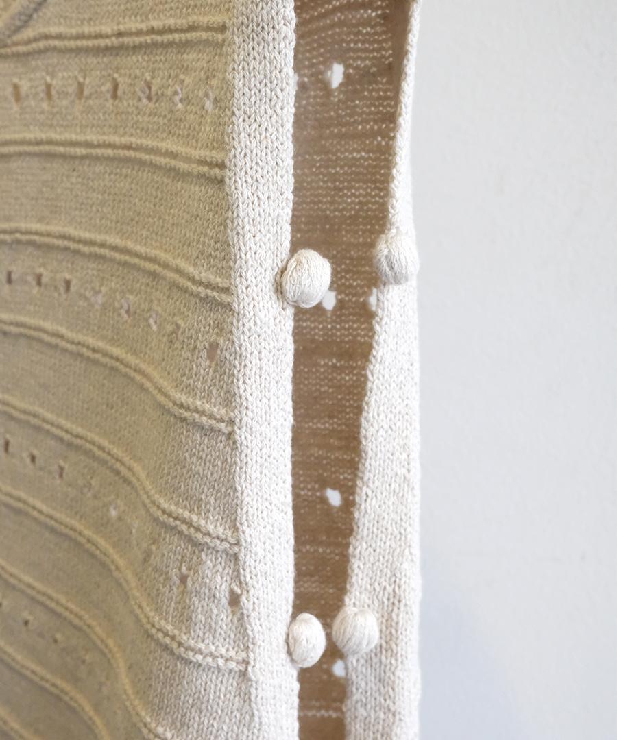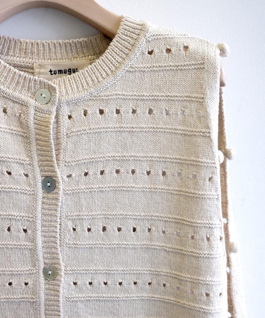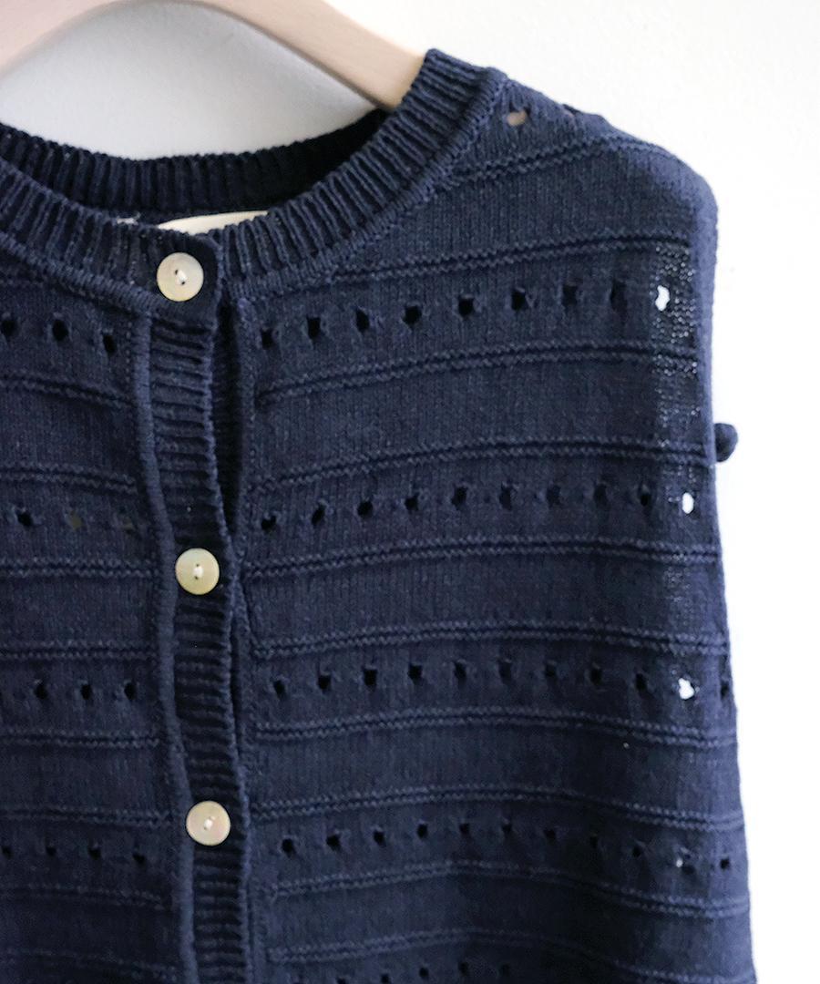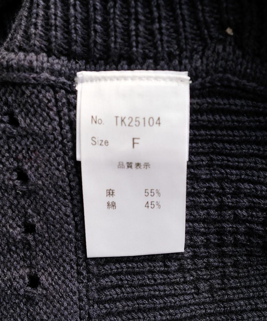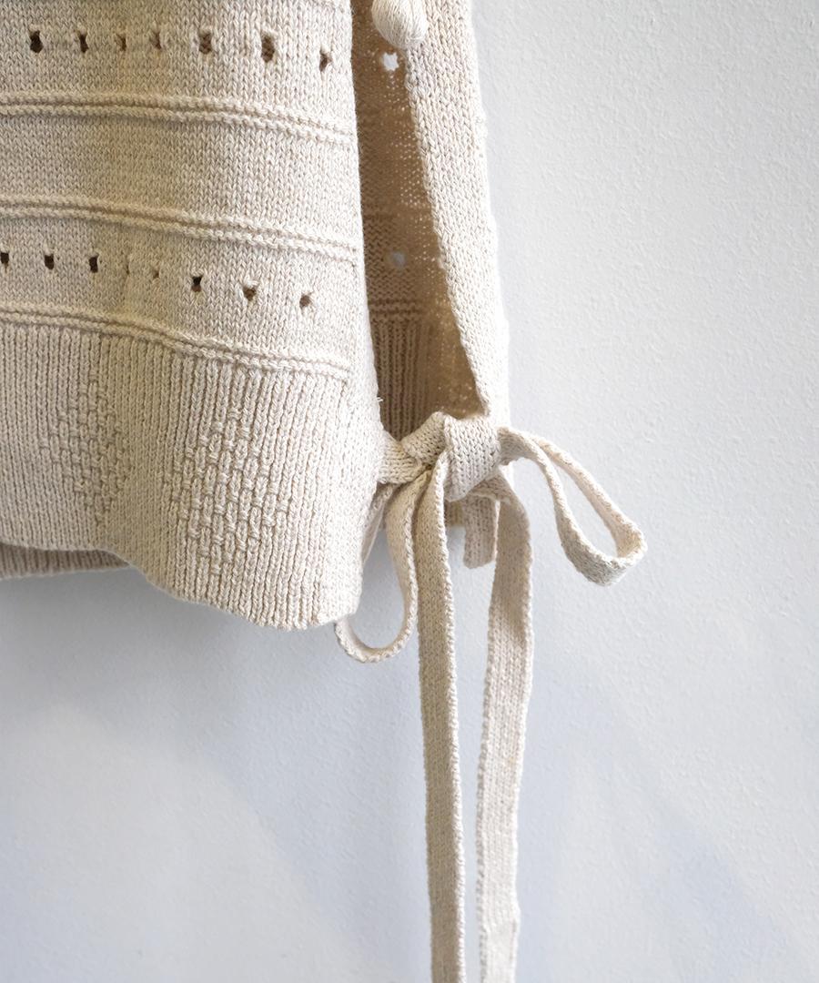 綿麻のリリヤーン糸を5ゲージでざっくり編んだ涼し気な表情が特徴です。