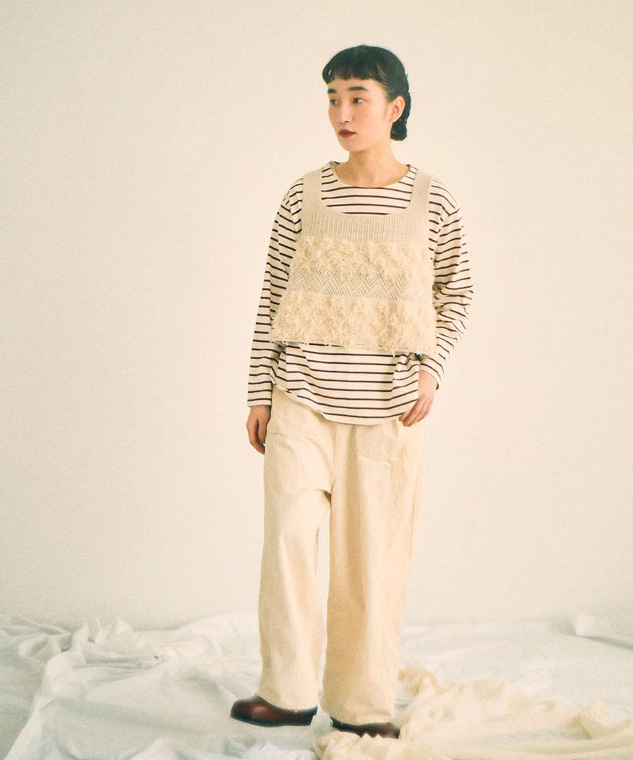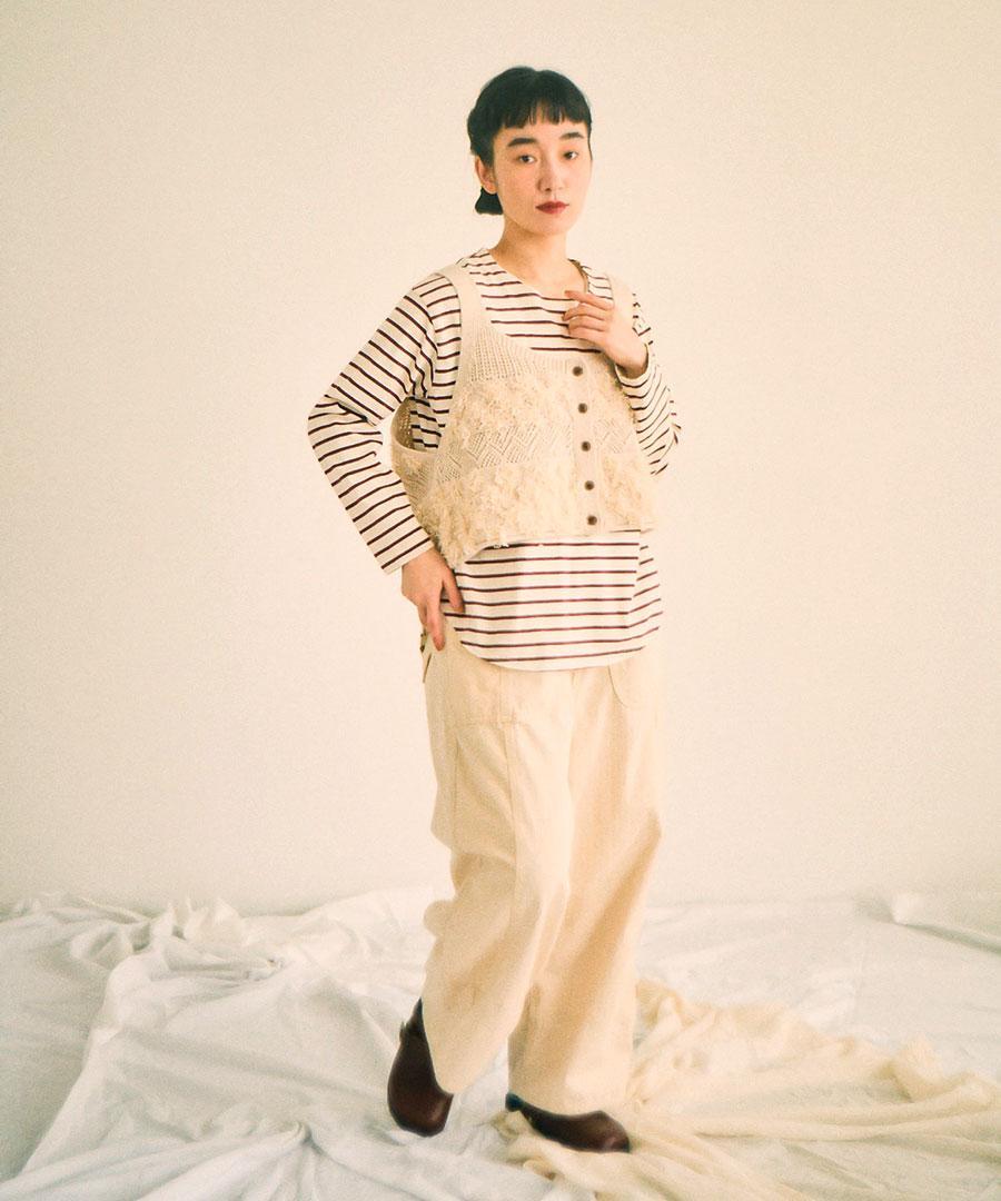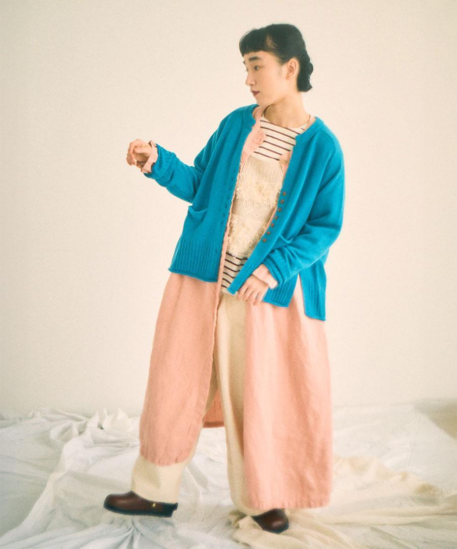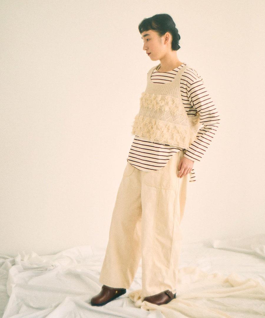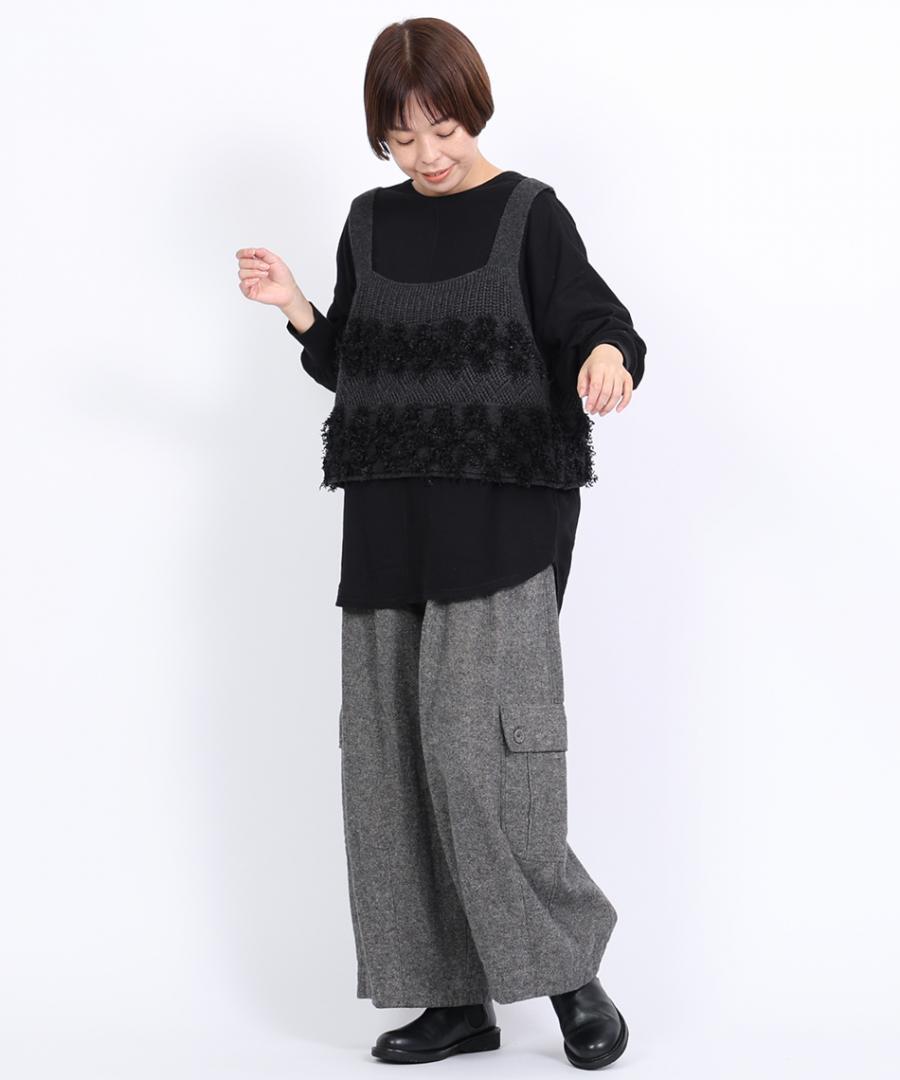 コットンリネン起毛ツイル カーゴワイドパンツ