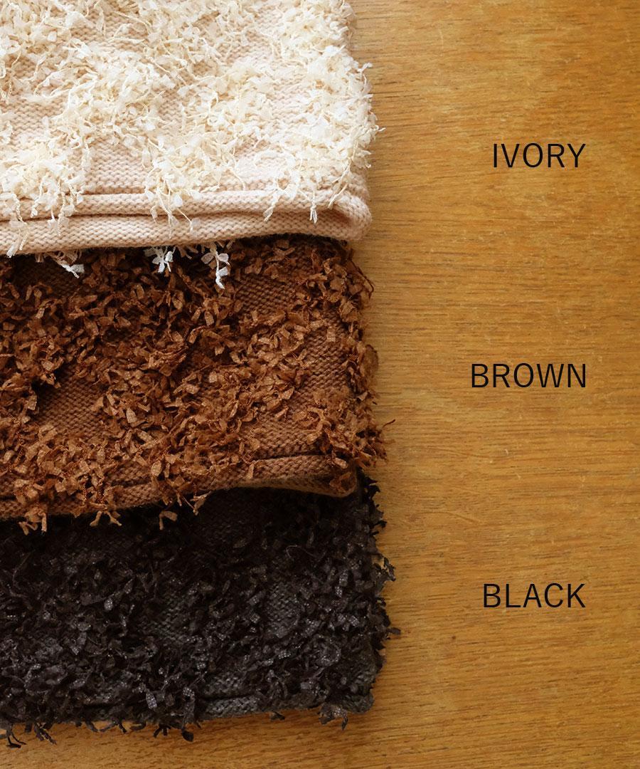 - この製品に使用している生地の特性上、ご使用中に加わる摩擦や磨耗により毛抜けが生じることがあります。抜けた糸が組み合わせた他のものに付着する事もありますのでご注意下さい。