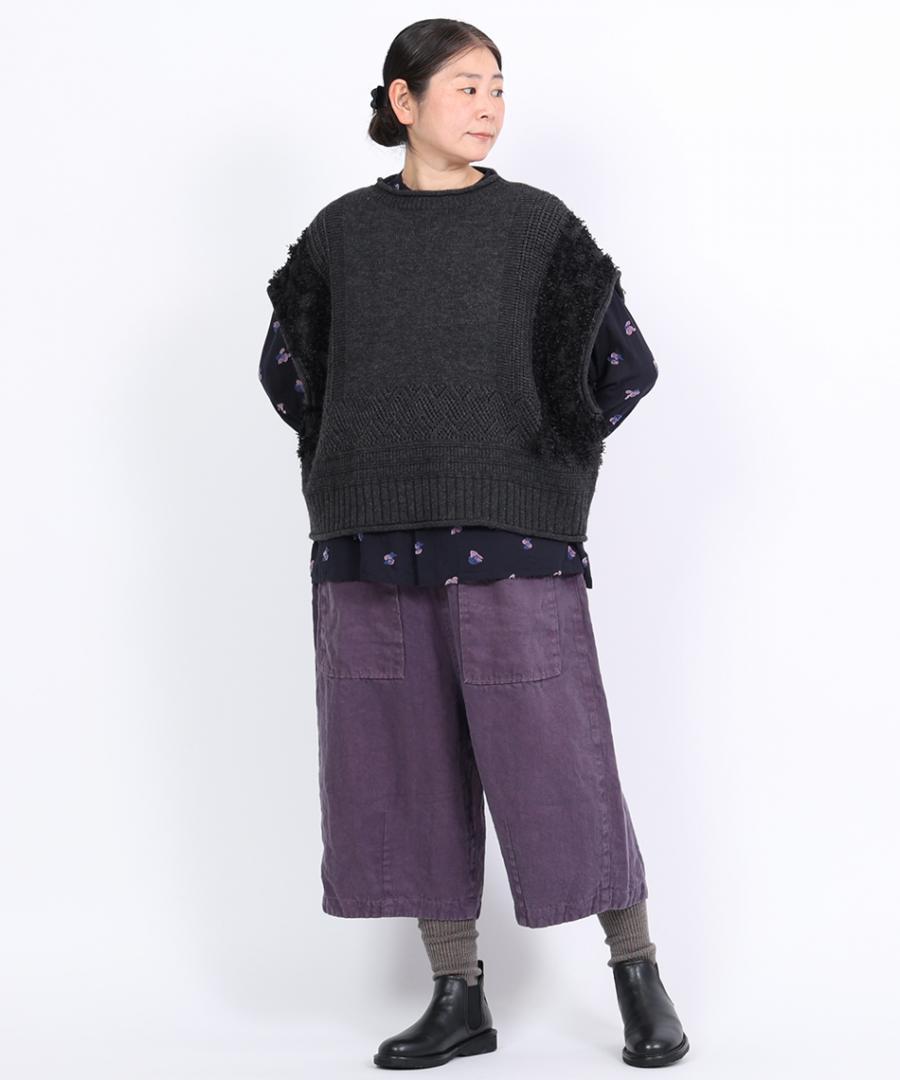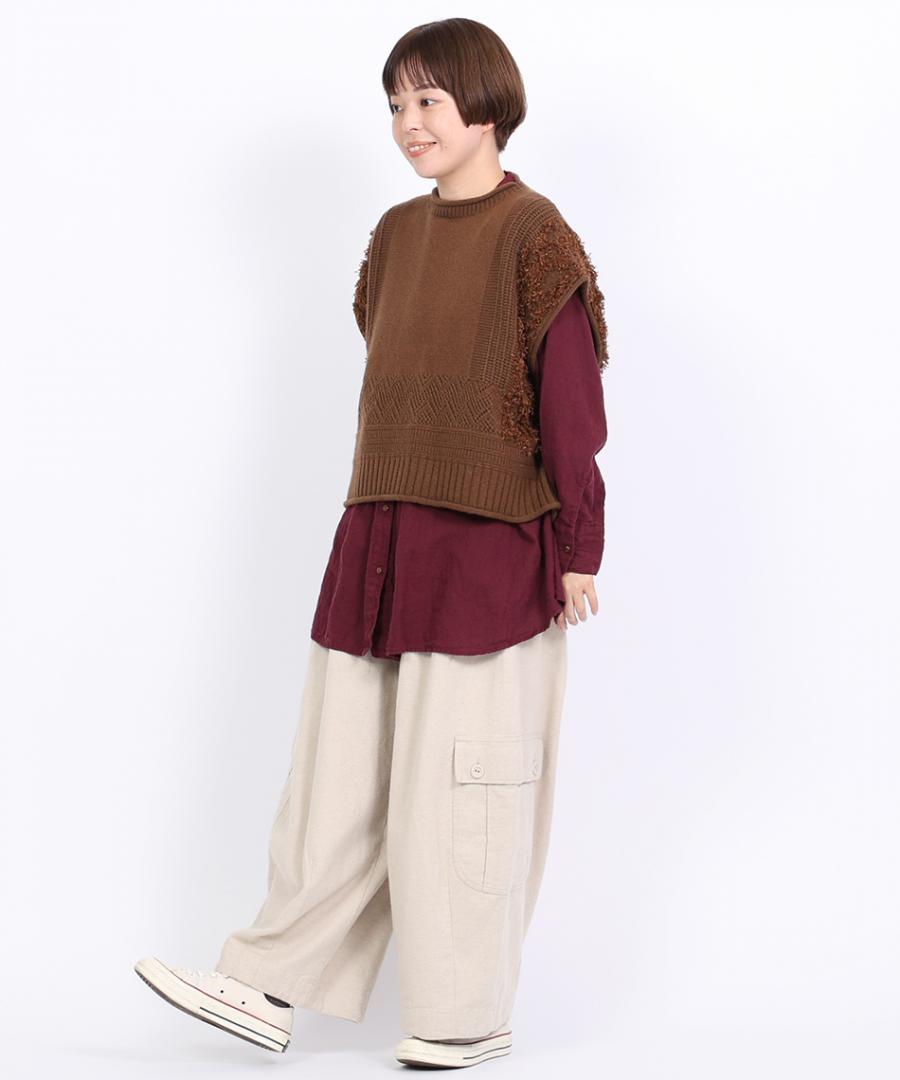 コットンリネン起毛ツイル カーゴワイドパンツ